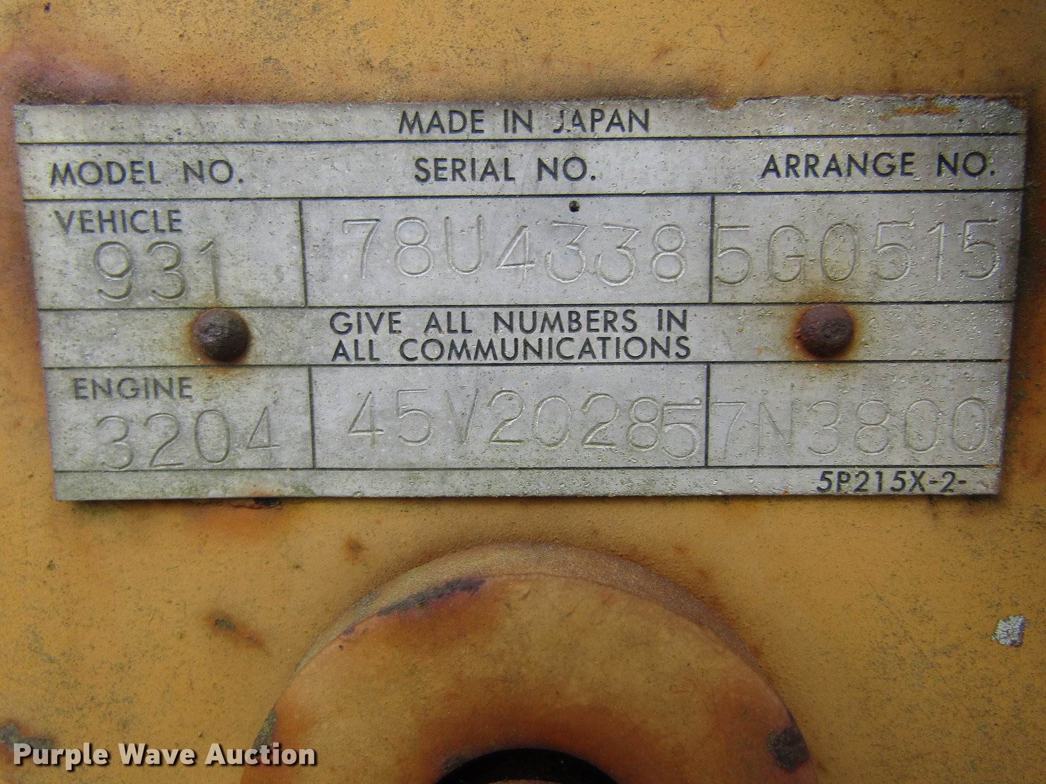 Purple Wave is selling a used Crawler Loader in Texas. This item is a 1978 Caterpillar 931 track loader with the following: Diesel engine, Powershift transmission, 3F-1R gears, ROPS, Two-lever bucket controls, 82"W multi-purpose bucket, Weld-on cutting edge, (7) teeth, Backhoe, 30"W bucket, 14"W triple grouser track pads, Non-operational unit, Serial 78U4338