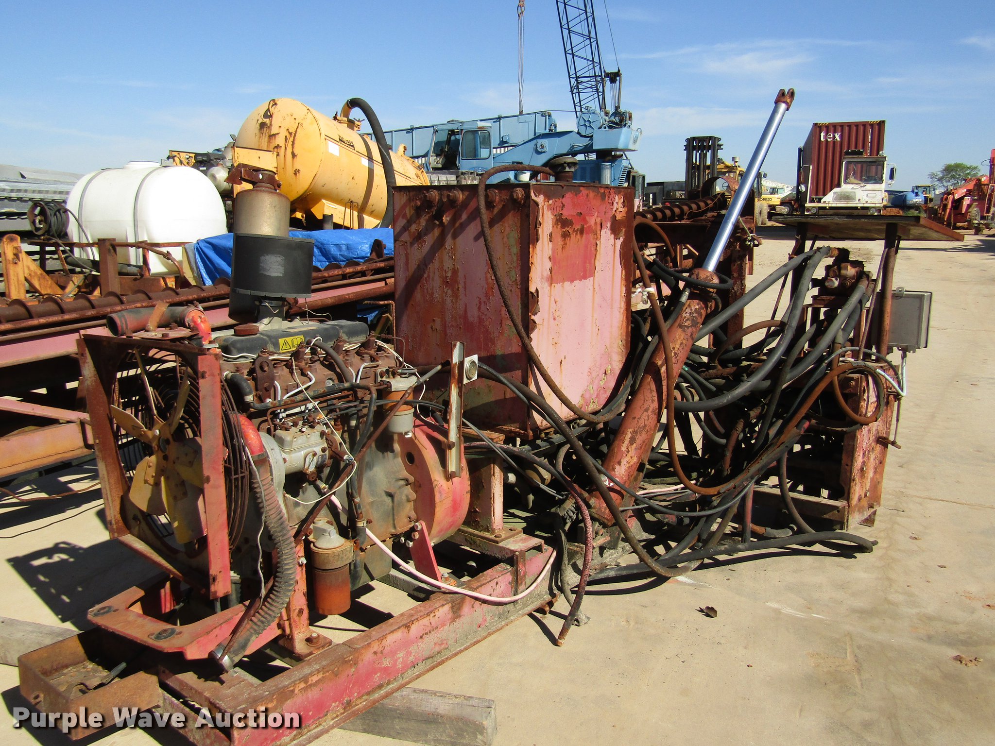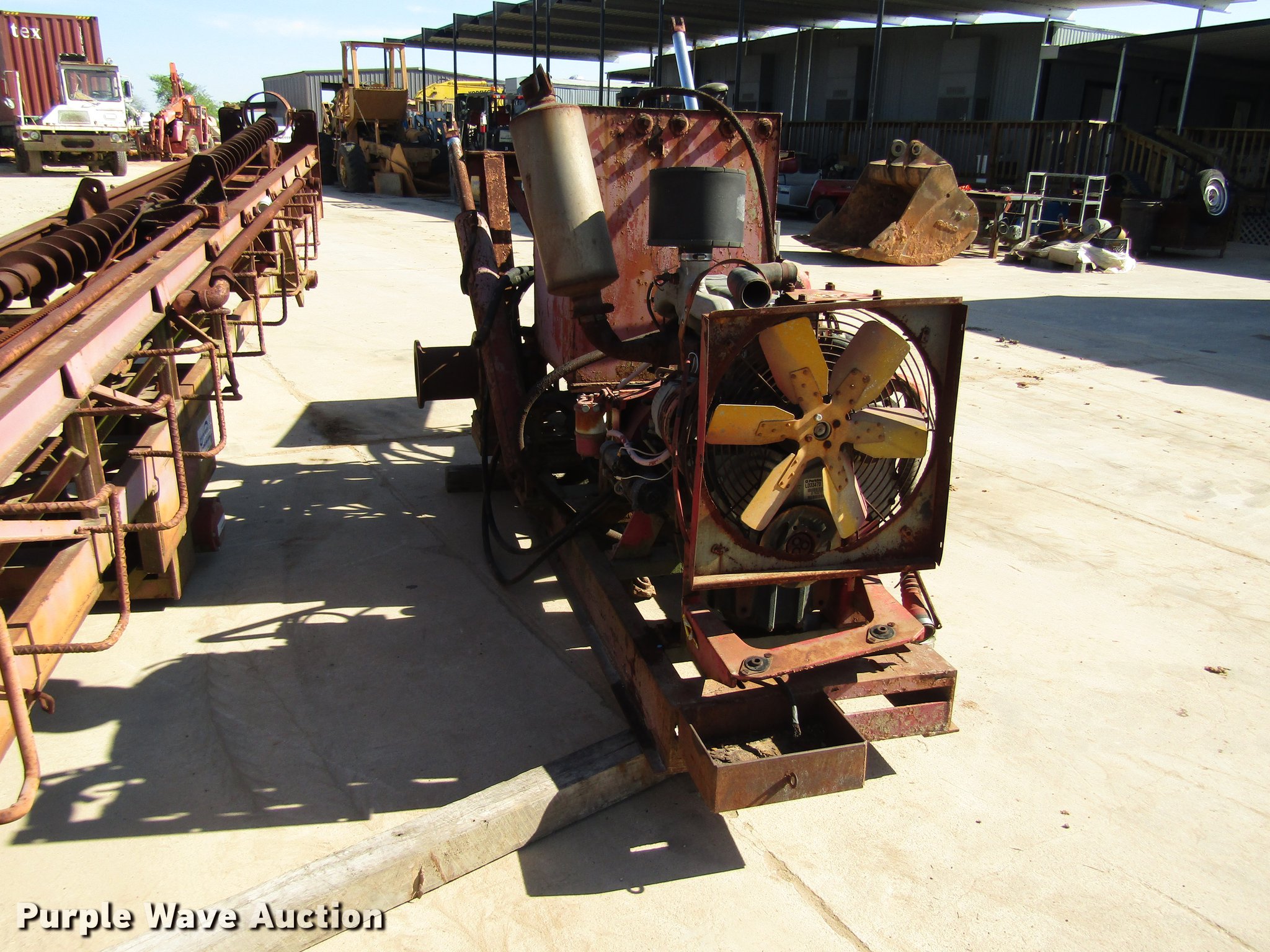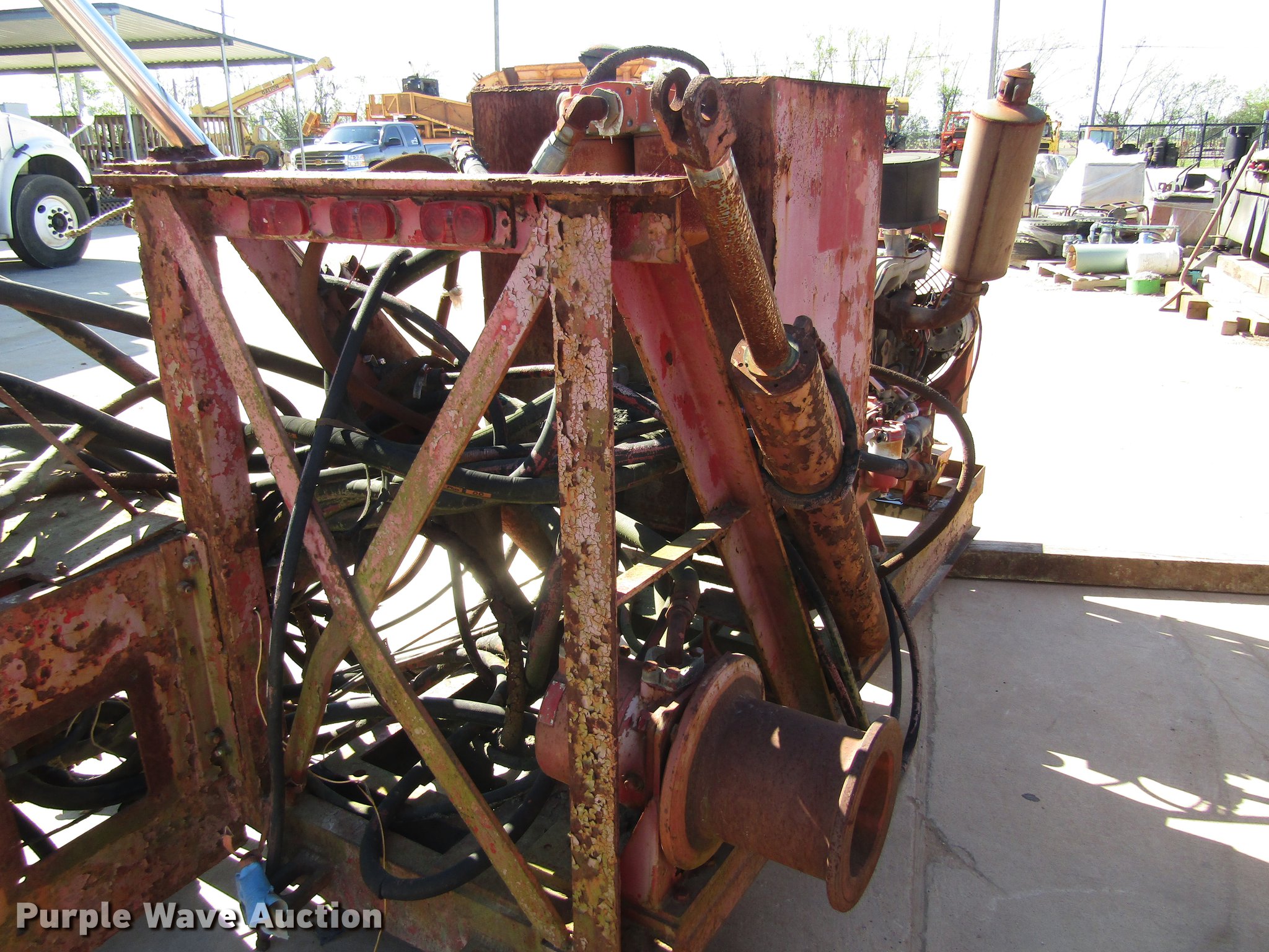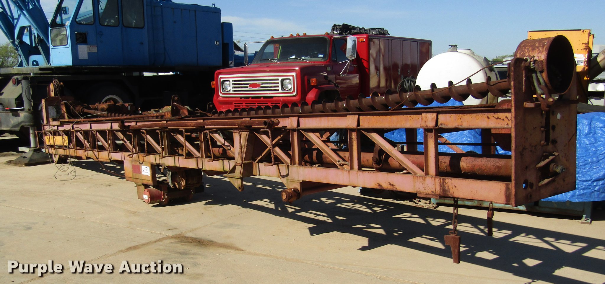 Mobile Drill 2100 hydraulic drill. 1,737 hours on meter, Perkins LB33470 four cylinder diesel engine Serial U783278C, Hydraulic drive, Dayton 3VJ75 winch, 24'L x 6" diameter bit, 5' x 12' main unit shipping dimensions, 30' x 5' carriage shipping dimensions, Serial 623442. 5050 FM 1960. Dayton, TX 77535