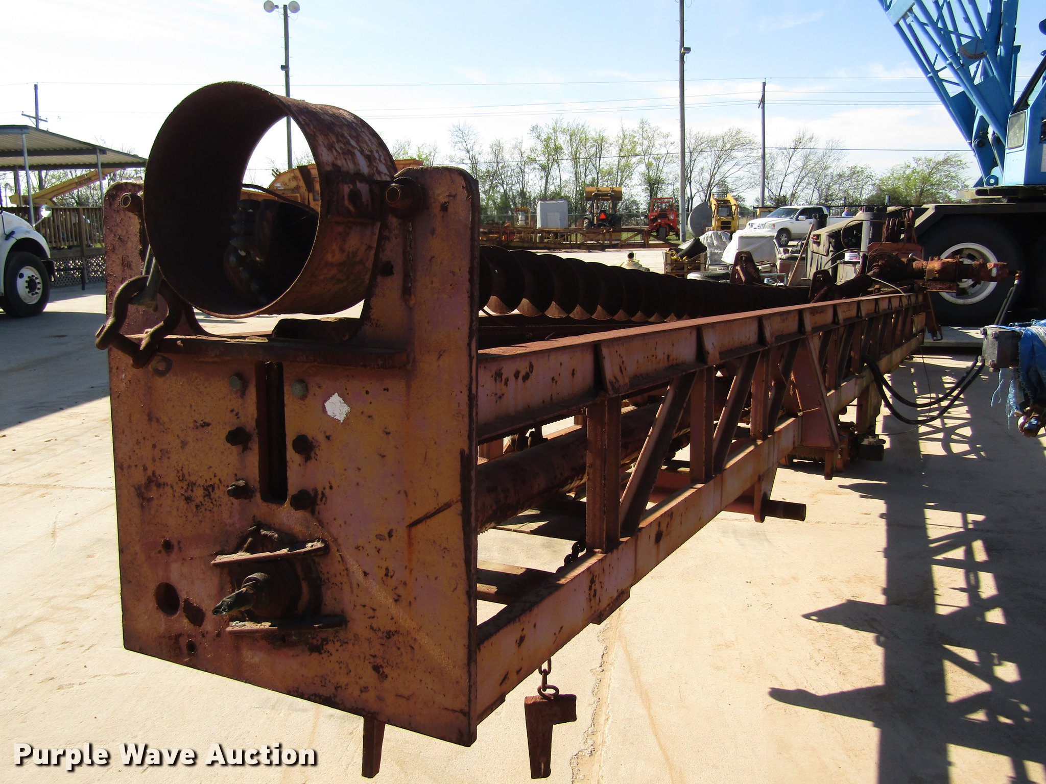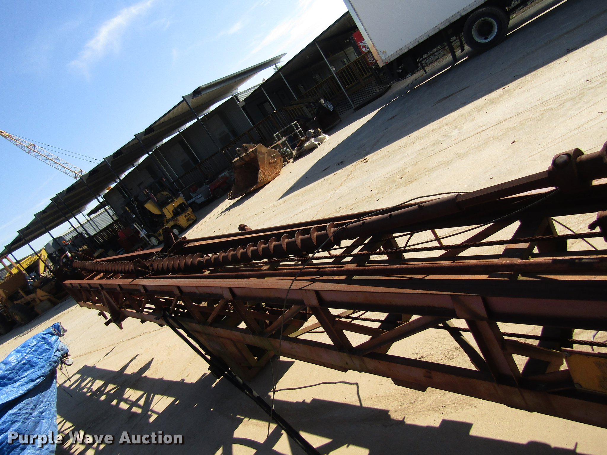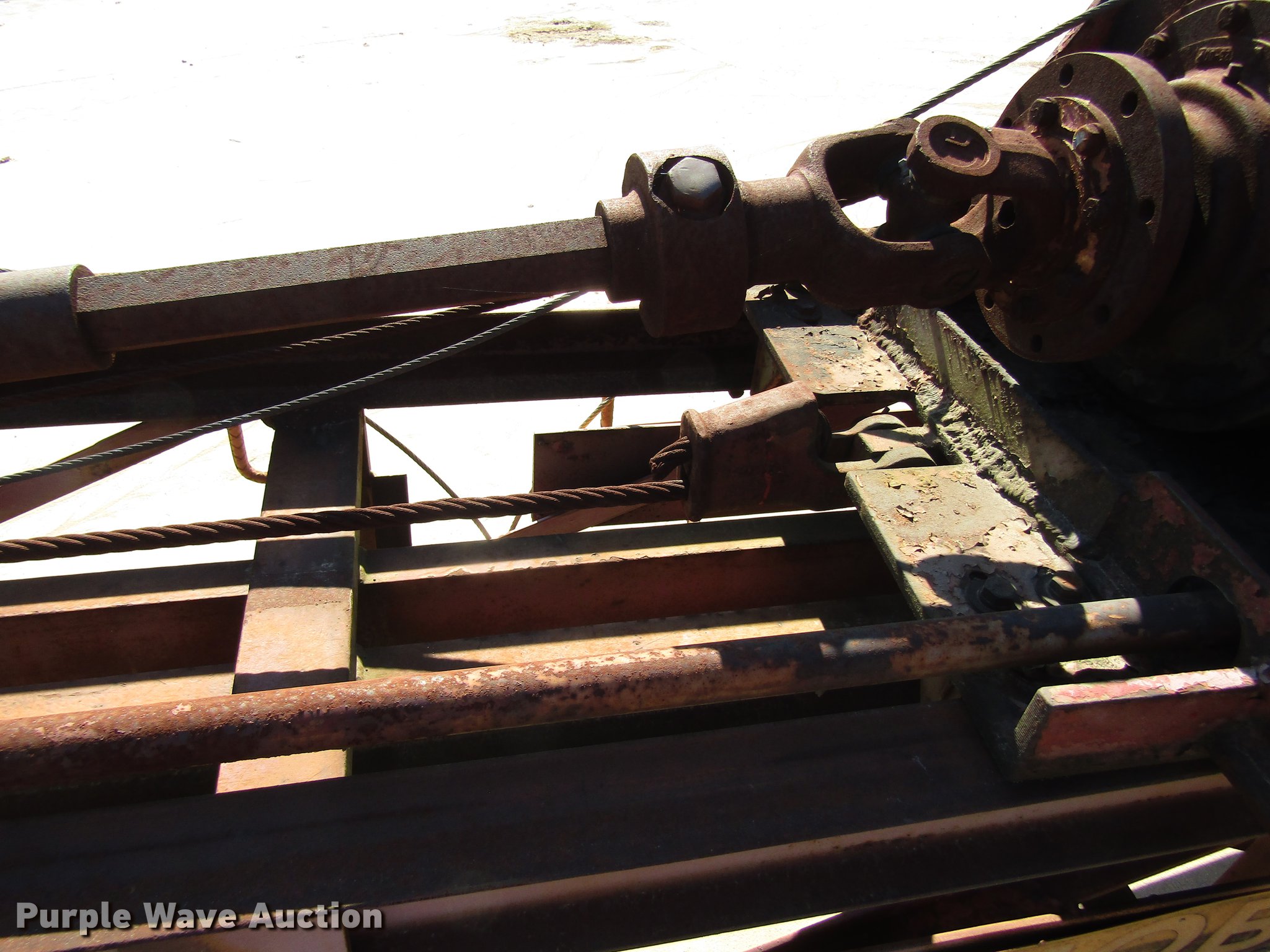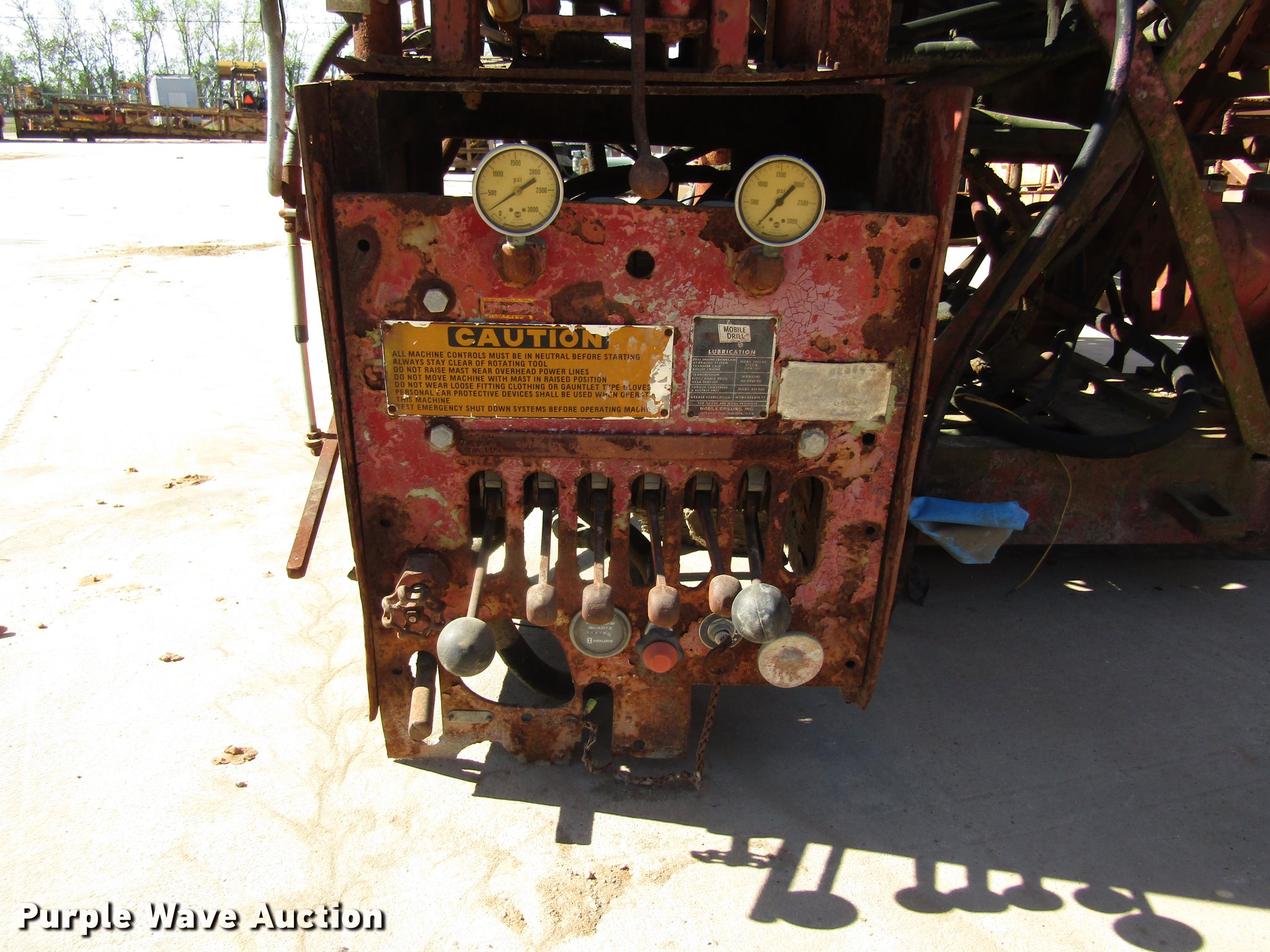 Mobile Drill 2100 hydraulic drill. 1,737 hours on meter, Perkins LB33470 four cylinder diesel engine Serial U783278C, Hydraulic drive, Dayton 3VJ75 winch, 24'L x 6" diameter bit, 5' x 12' main unit shipping dimensions, 30' x 5' carriage shipping dimensions, Serial 623442. 5050 FM 1960. Dayton, TX 77535