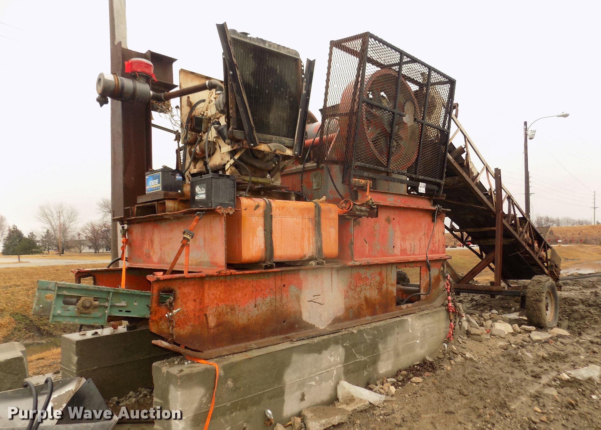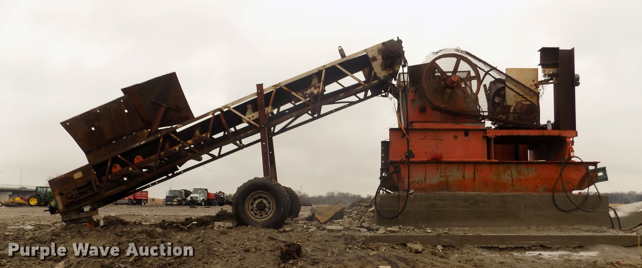 Universal 1024RB roller bearing jaw crusher. 1,334 hours on meter, John Deere four cylinder diesel engine, 10'8"L x 6'W x 8'H, Rockford PTO, Serial 119X58, Norberg 240S conveyor 16'L , 30"W belt, Hydraulic powered, Serial 363073, 10'L lateral conveyor 18"W belt, 110V, Pintle hitch, ST235/85R16 tires. CR Menn Concrete. 325 West County Rd T. Fremont, NE 68025