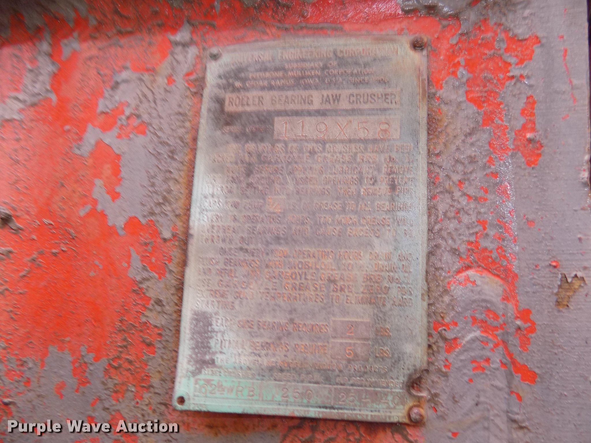 Universal 1024RB roller bearing jaw crusher has sold in Fremont, Nebraska for $12100. Item DD2834 sold on April 19th, 2018.