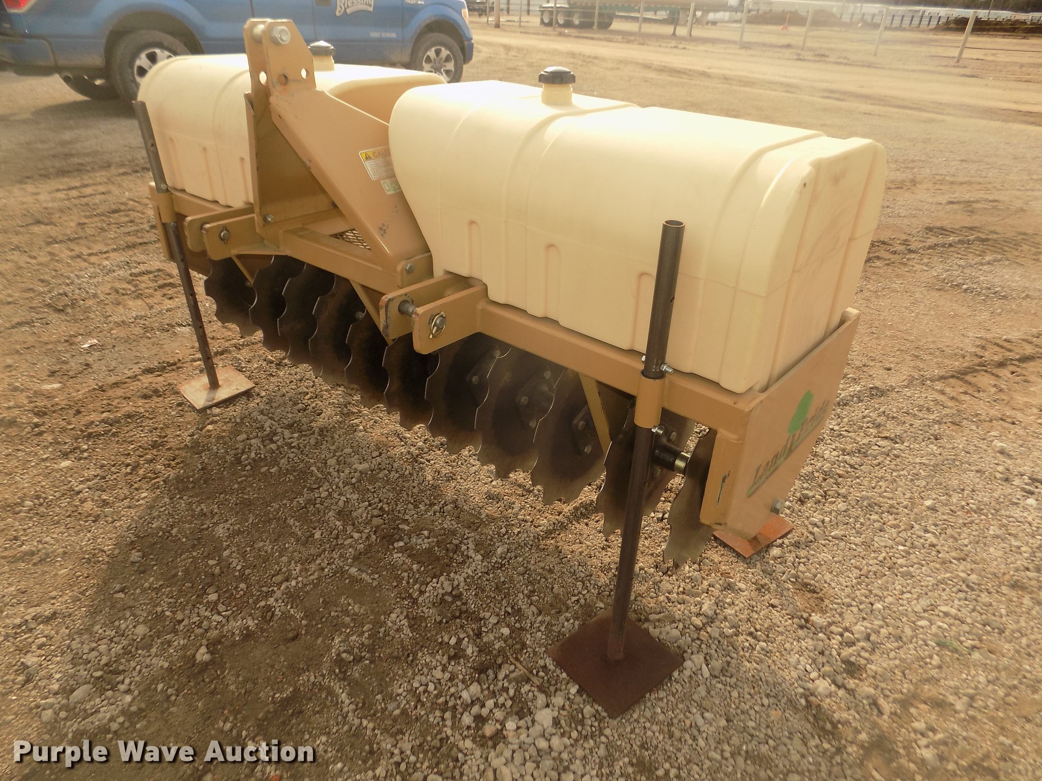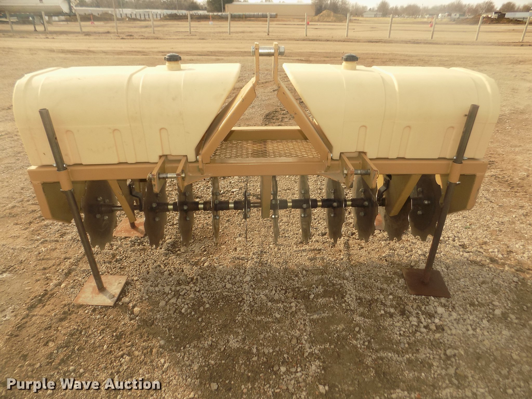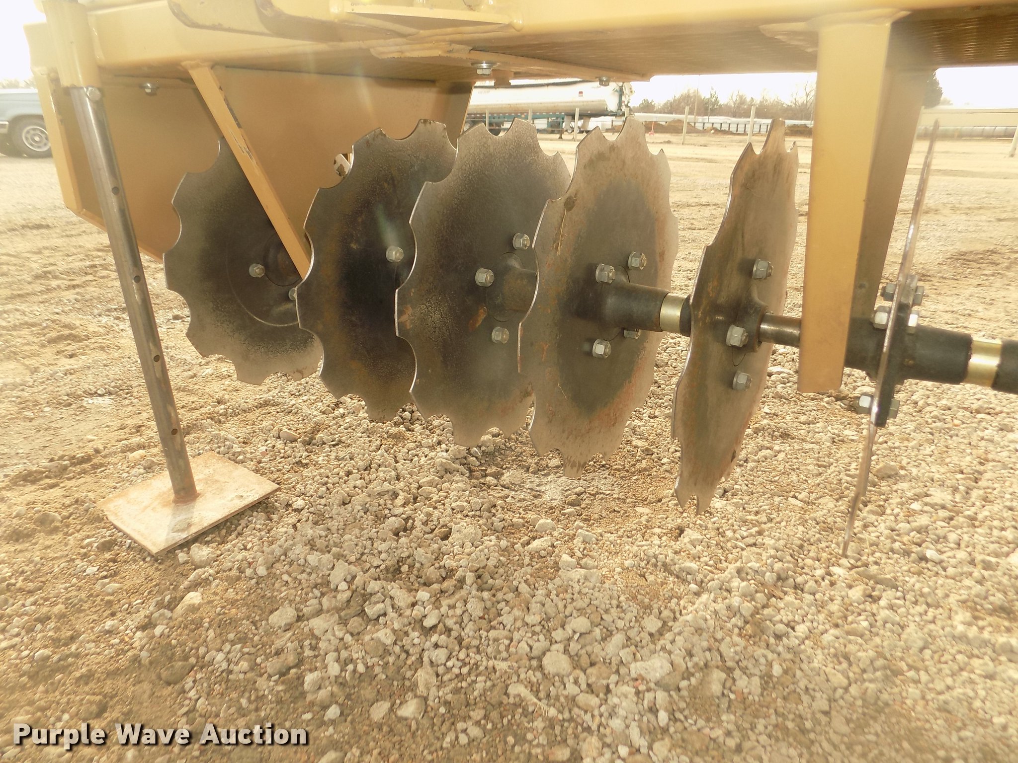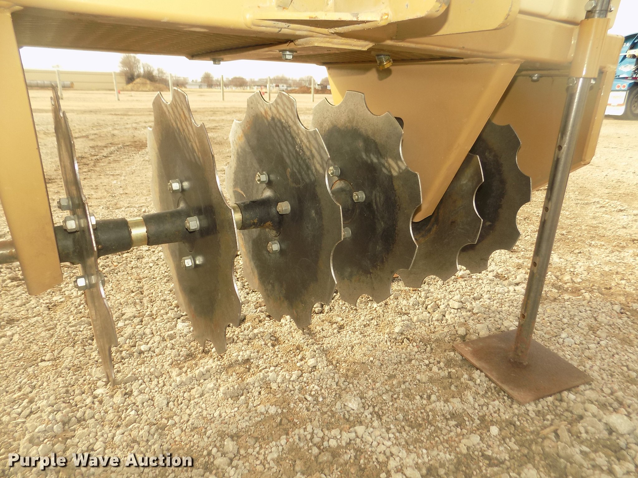 Land Pride CR2572 straw crimper. 78"W, 17" diameter notched disk blades, 6.5" spacing, (2) poly ballast tanks, (4) jack stands, Three point, Serial 602120. Blessing Construction. 1015 W 19th St. Kearney, NE 68848