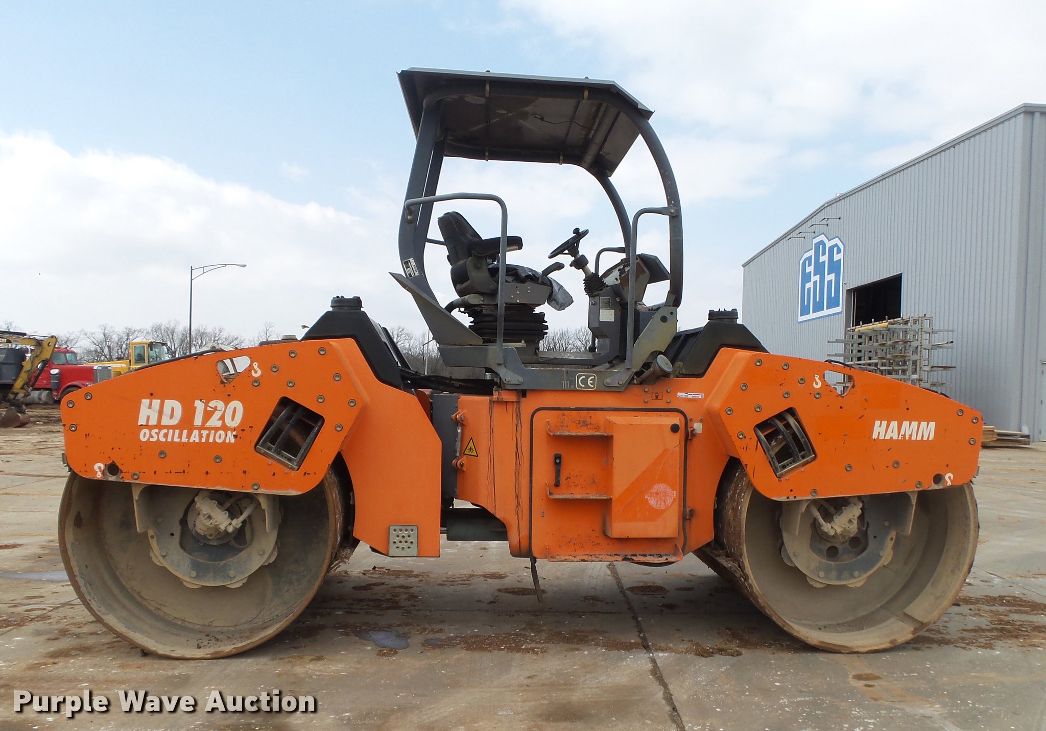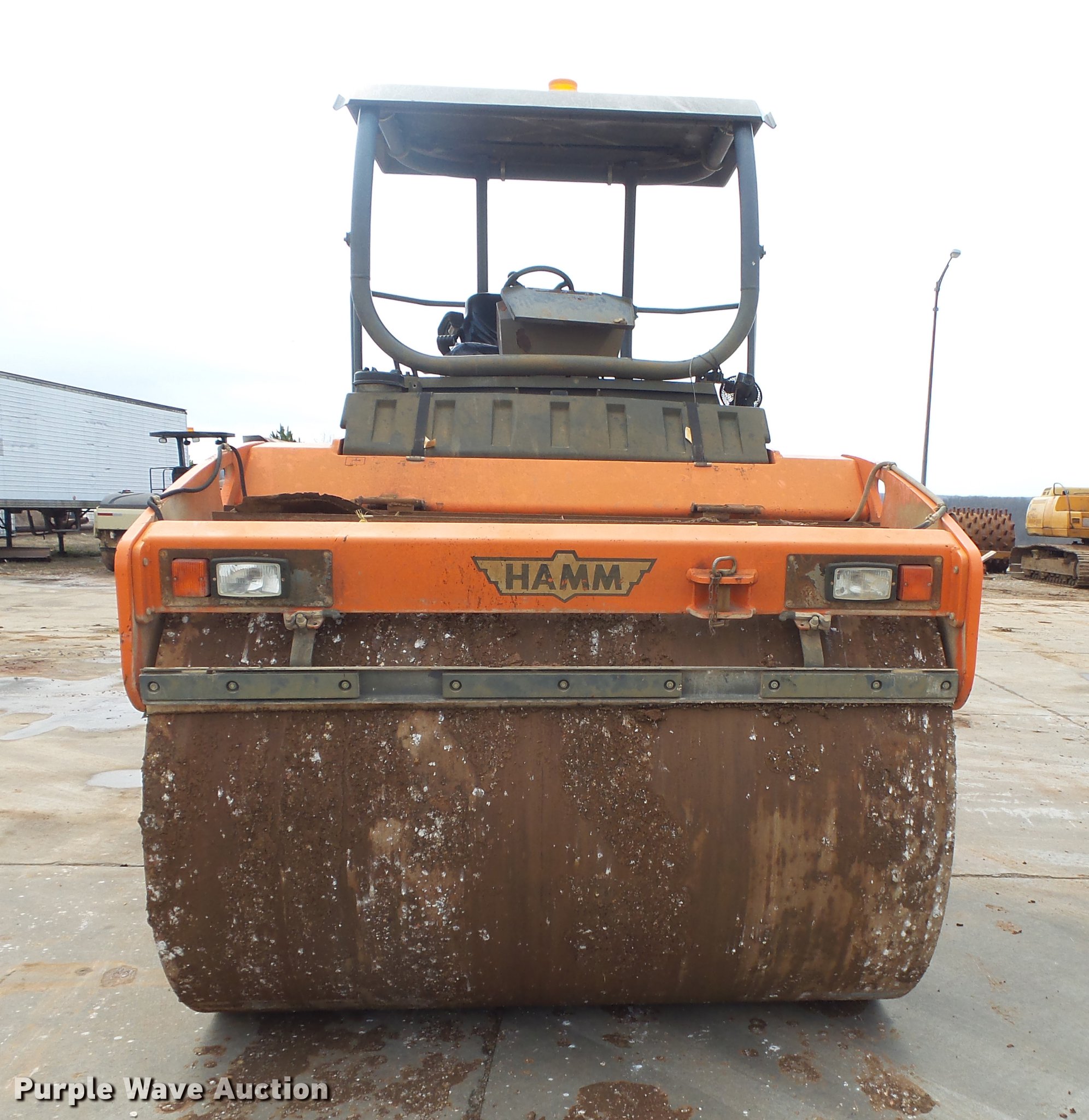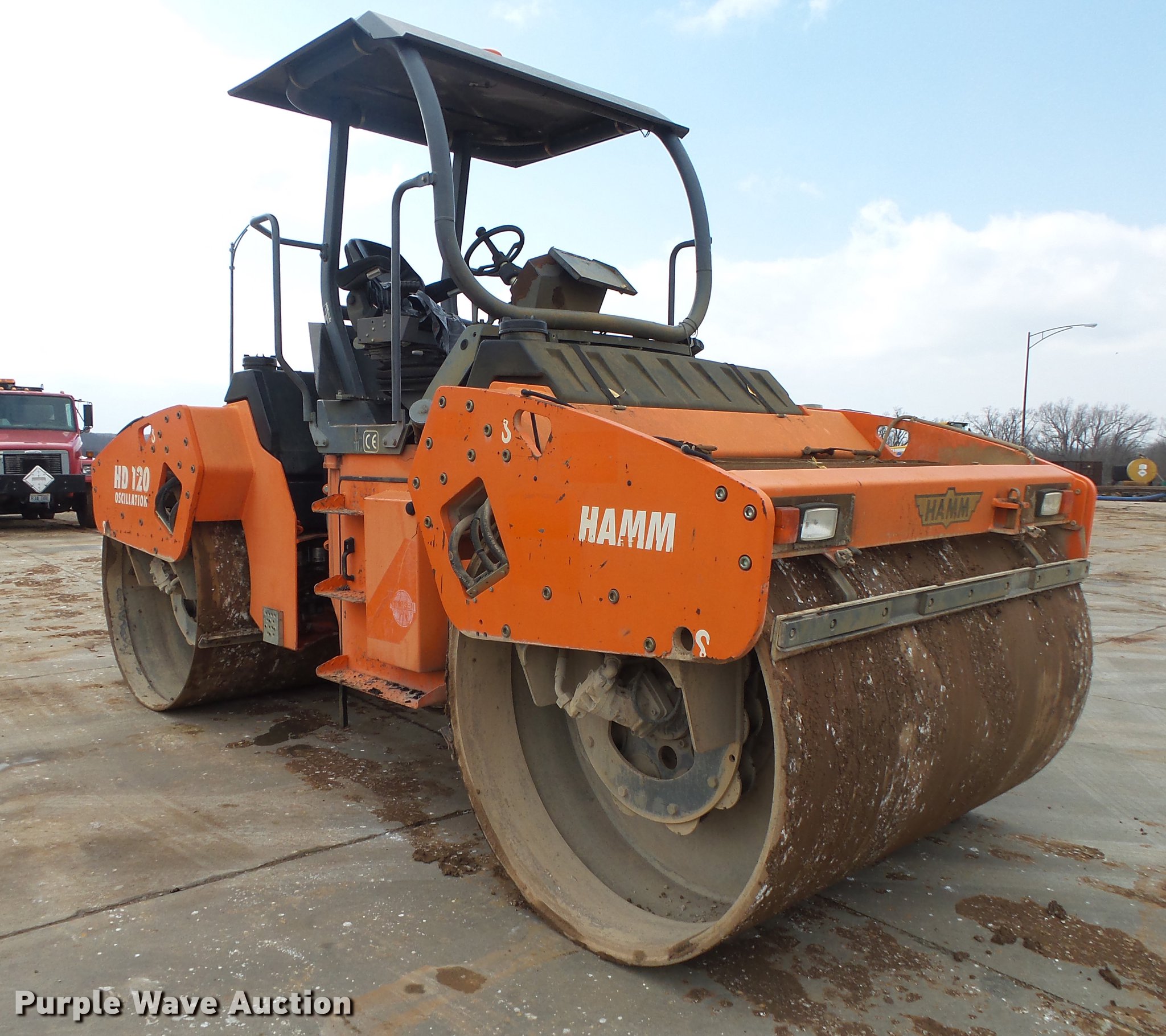 Purple Wave is selling a used Double Drum Roller Compactor in Missouri. This item is a 2003 Hamm HD120 double drum vibratory roller with the following: 4,584 hours on meter, Deutz 502XL06.1028 three cylinder diesel engine, Hydrostatic transmission, OROPS, Canopy, Suspension seat, Vandal cover, 78"W x 54" diameter smooth drums, Single vibratory system, Independent drum controls, Front and rear drum scrapers, Front and rear water application, Serial H1750033