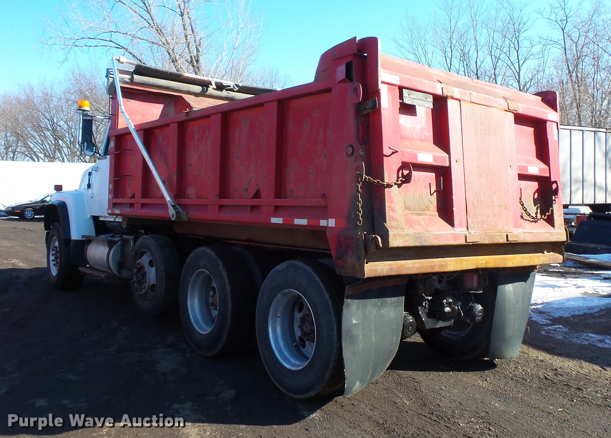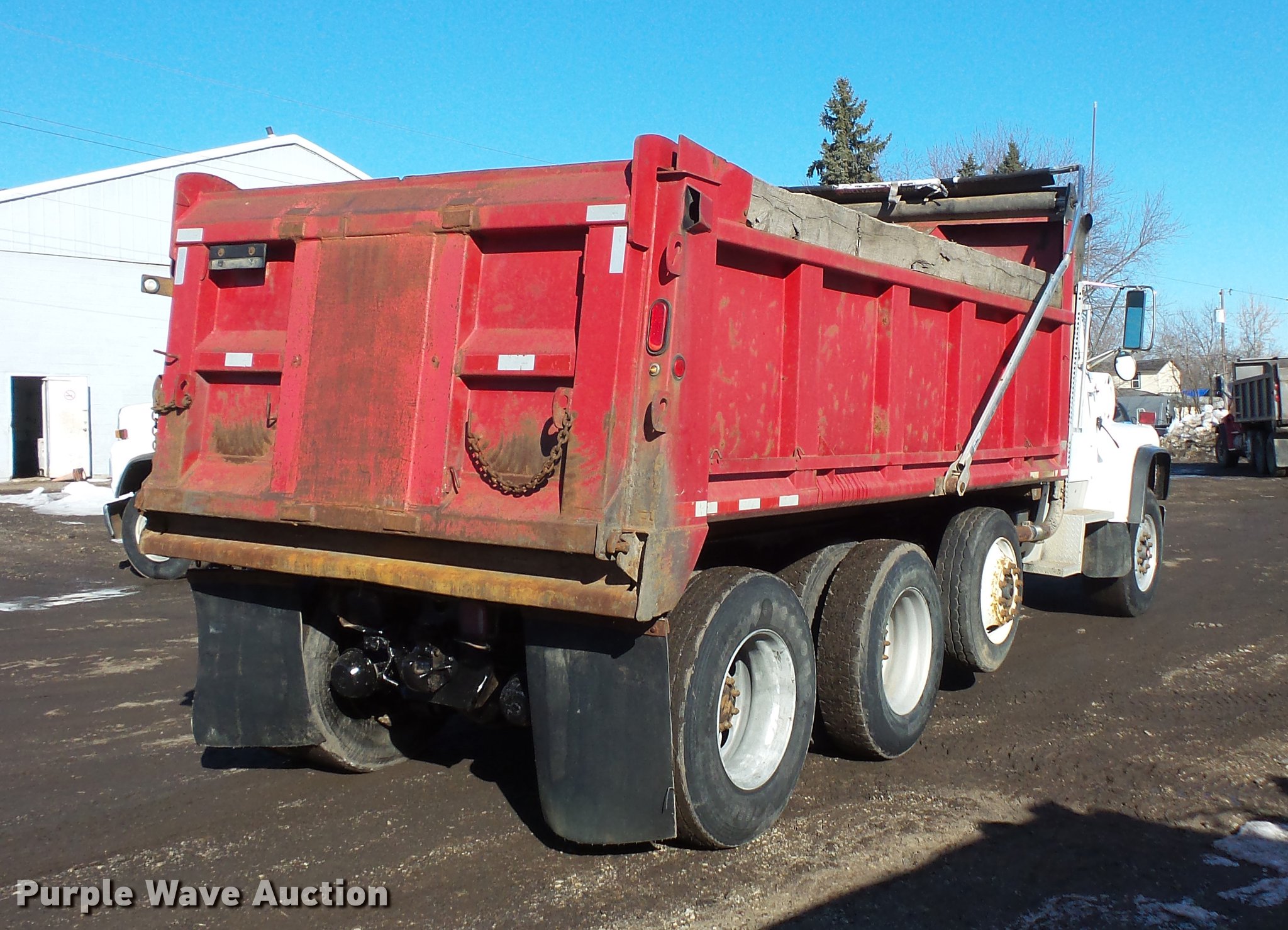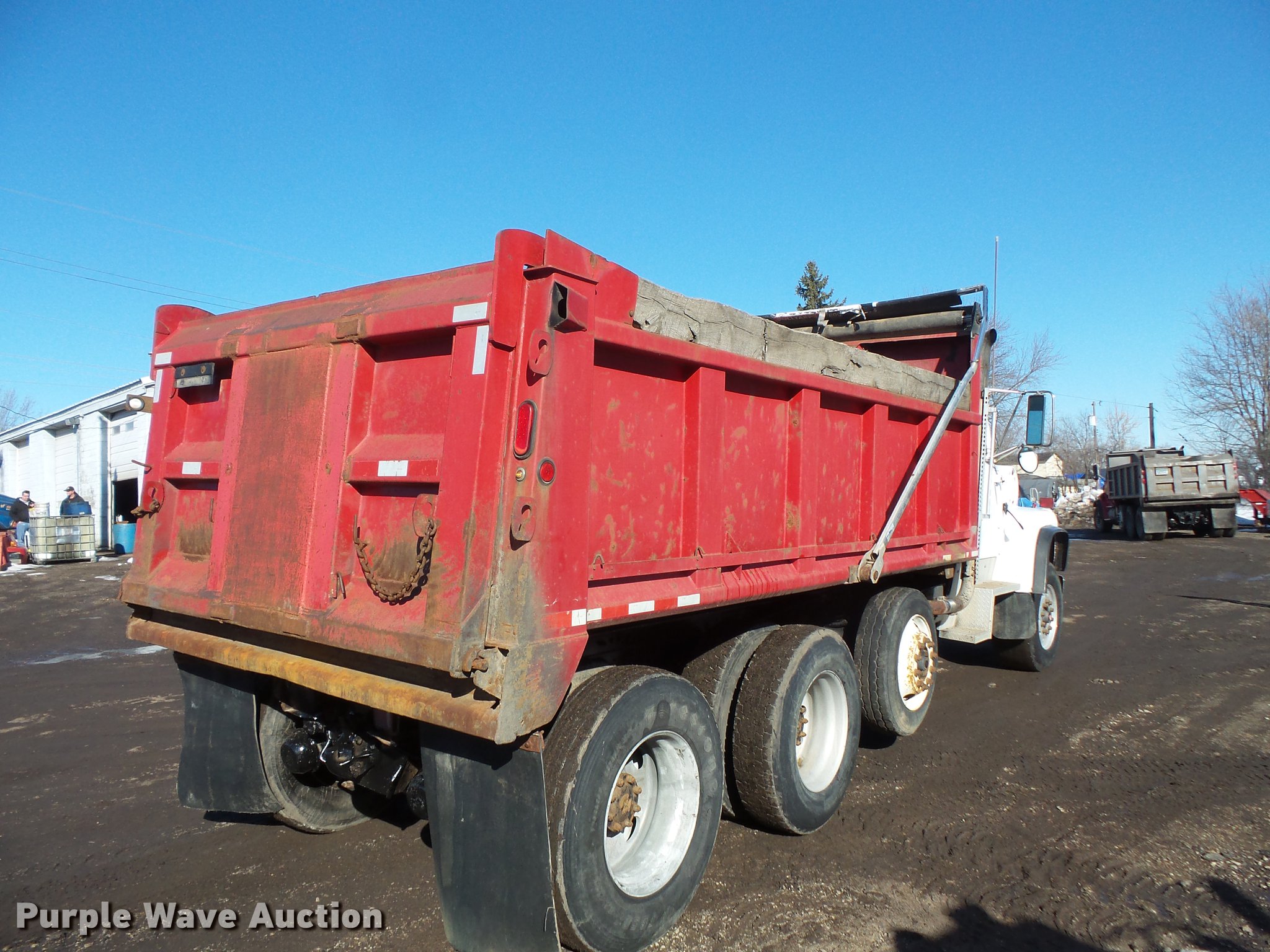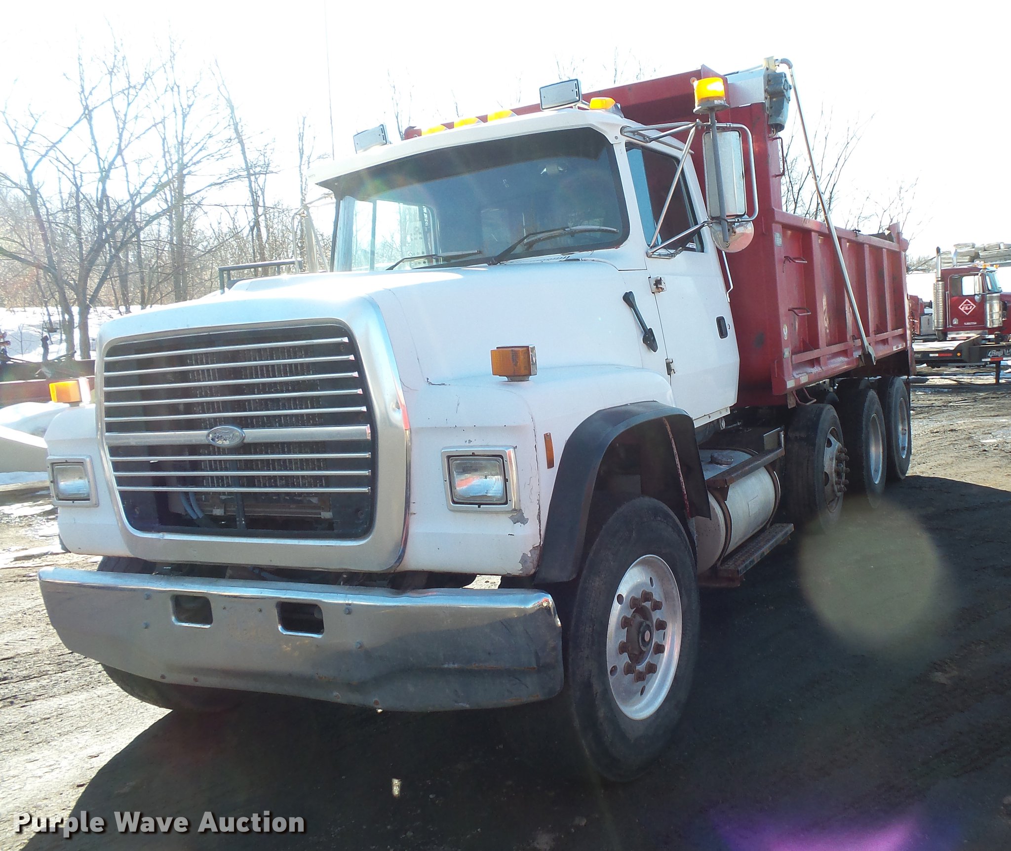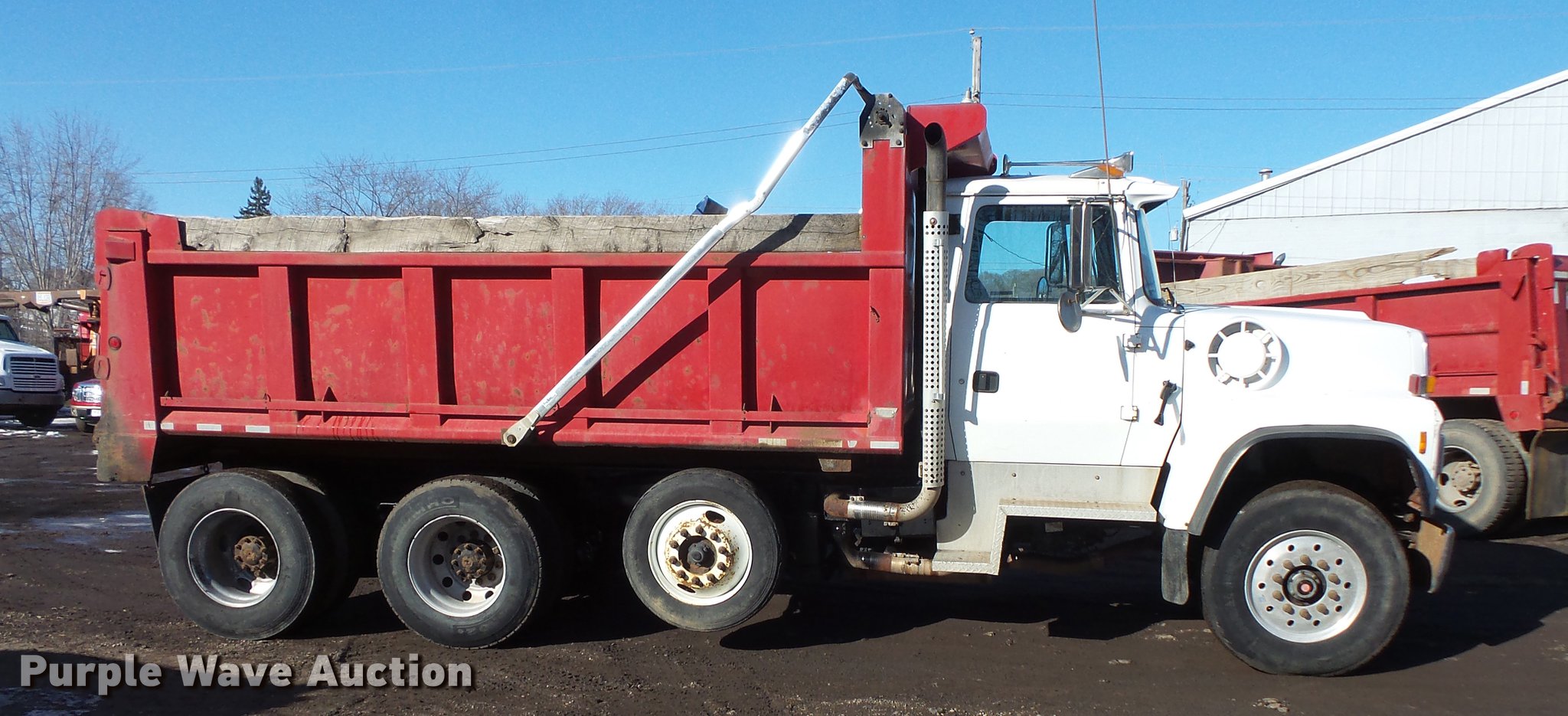 Purple Wave is selling a used Construction Dump Truck in Minnesota. This item is a 1997 Ford LT8000 dump truck with the following: 401,895 miles on odometer, Cummins ISC 8.3L L6 turbo diesel engine, Automatic transmission, Inter-axle differential lock, Triple axle, Heat, AM/FM, Tilt, Air suspension seat, PTO, Beau-Roc LTT-15.5-42-48 steel dump bed, 15'4"L x 98"W, 42" side height, Single ram hoist, Air operated end gate, Heated body, Roll tarp, Single fuel tank, Pintle hitch, 210" wheelbase, Steerable pusher axle, Walking beam suspension, Air brakes, 385/65R22.5 front tires, 295/75R22.5 pusher axle tires, 275*80R22.5 rear tires, GVWR 58,000 lbs, FAWR 18,000 lbs, IAWR 20,000 lbs, RAWR 20,000 lbs