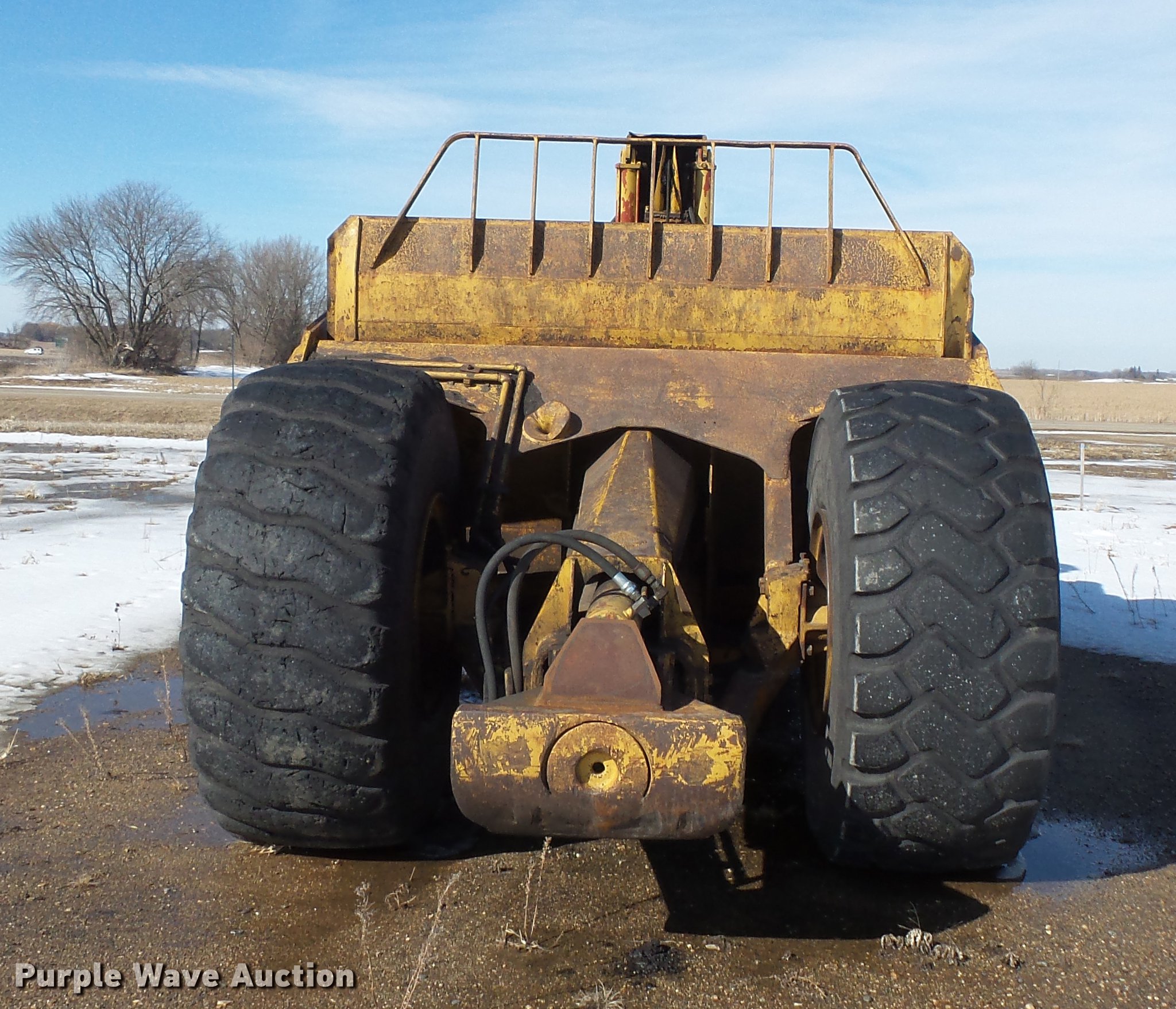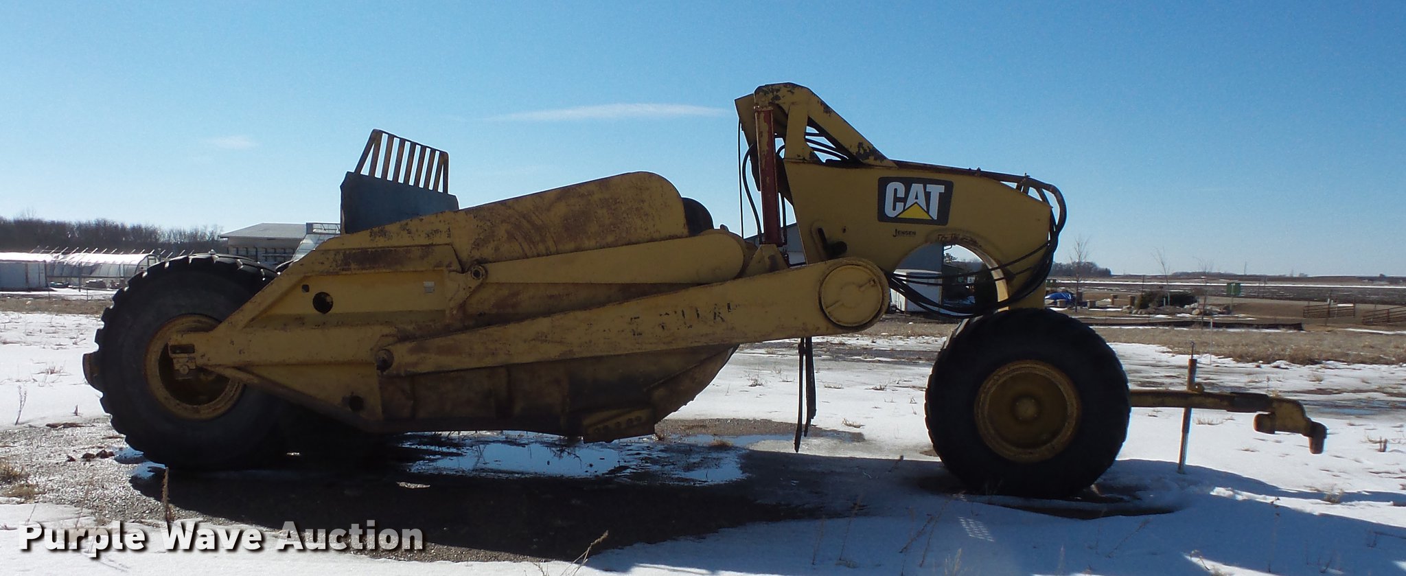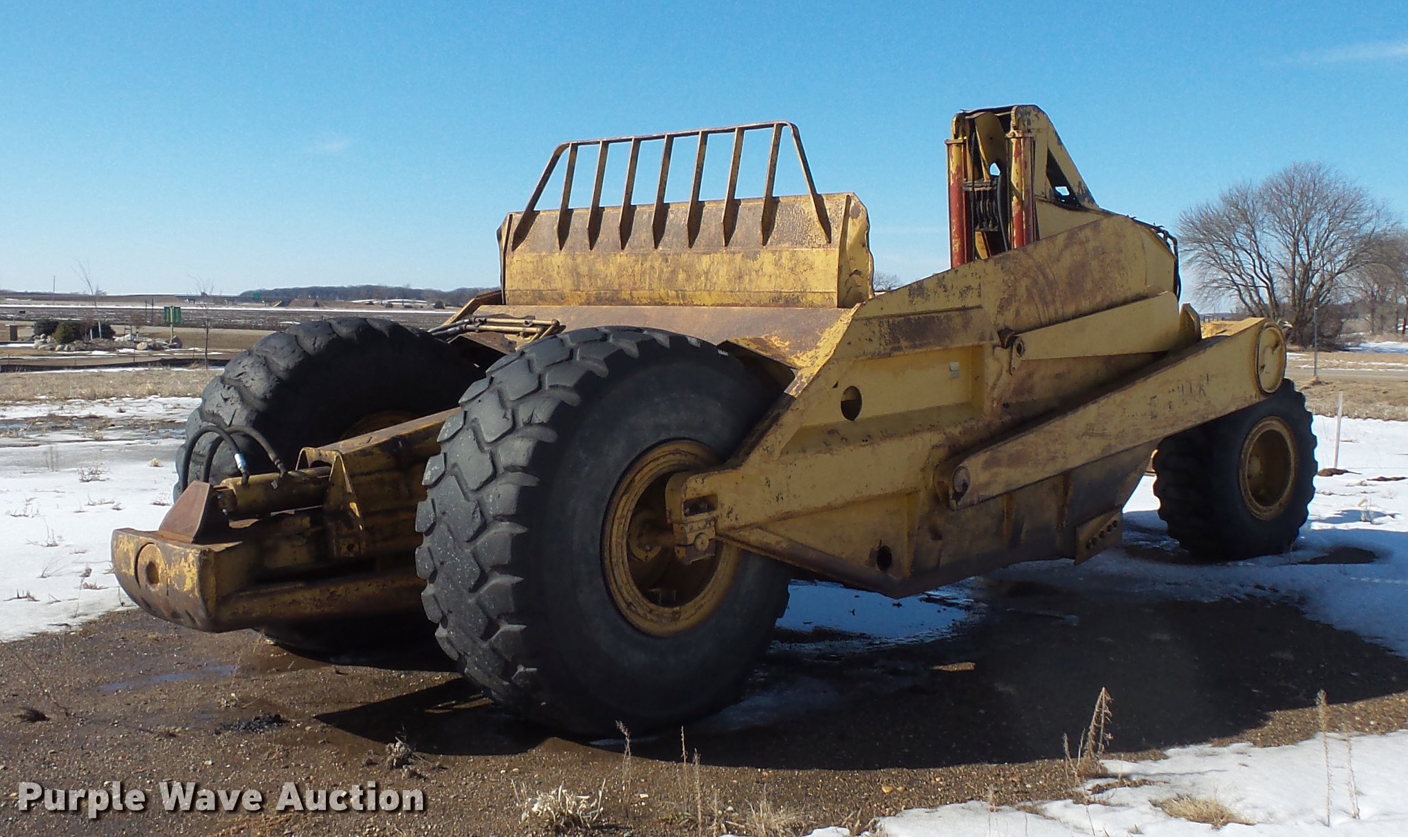 Purple Wave is selling a used Pull Type Scraper in Minnesota. This item is a Caterpillar 435 scraper with the following: 9'4" cutting width, 15-18 cu. yd. capacity, Rear push block, Hydraulic lift, Pin hitch, 20.5-25 front tires, 26.5R25 rear tires, Serial 45D916