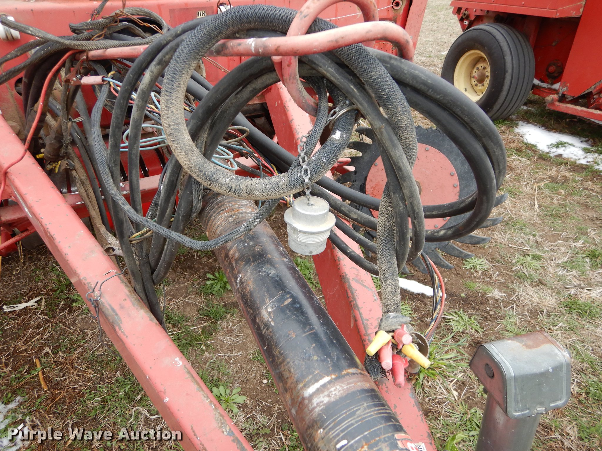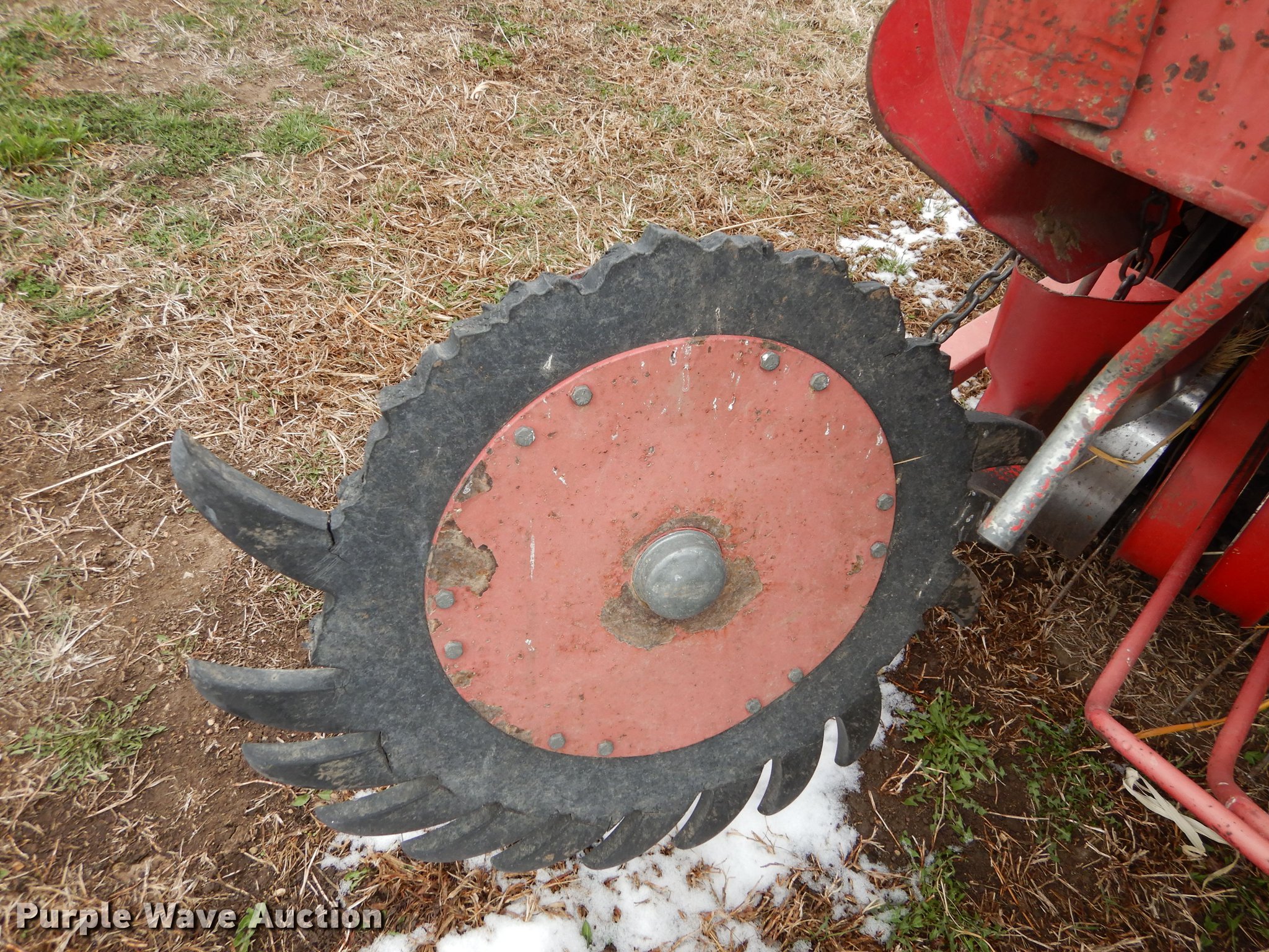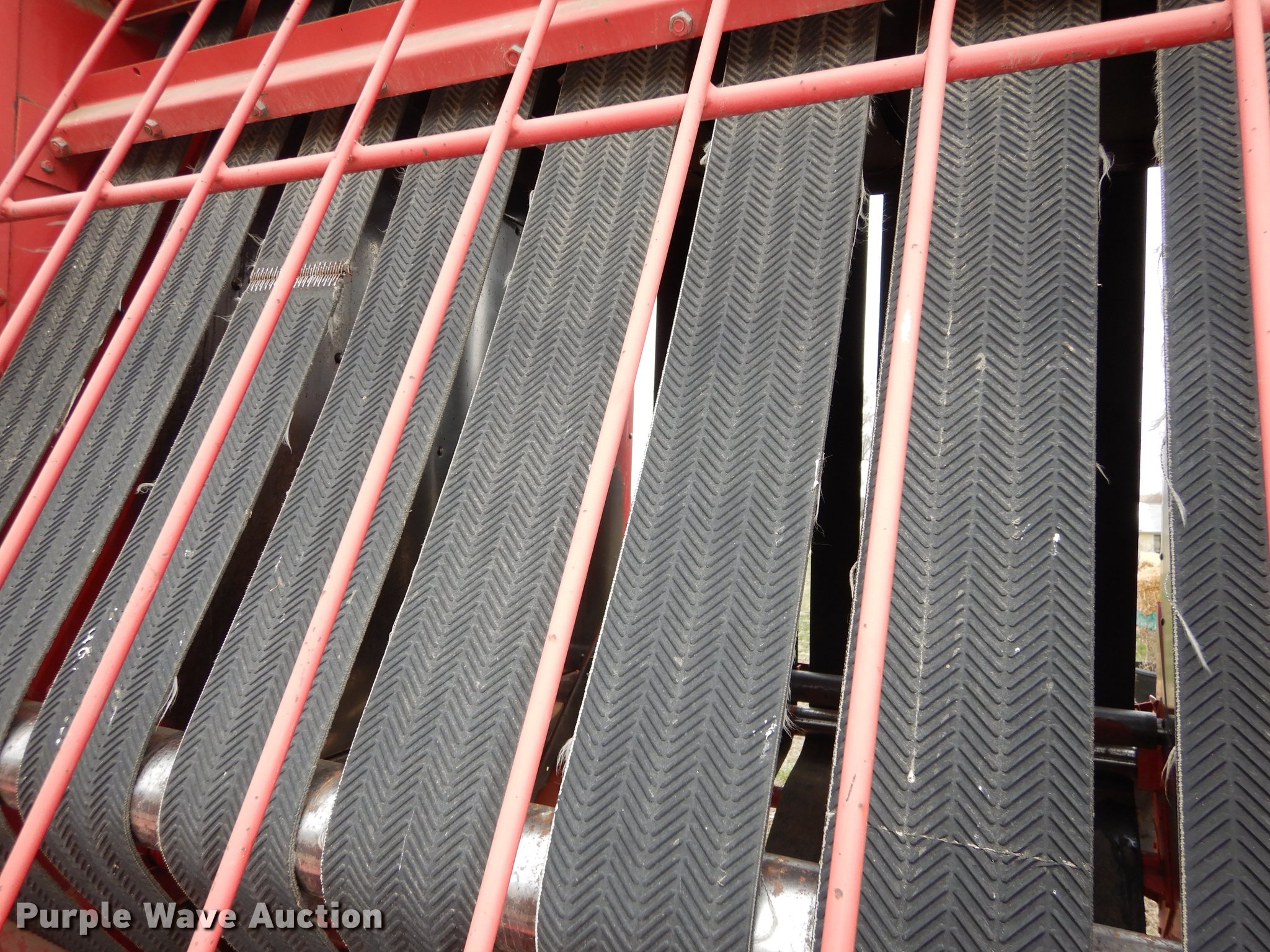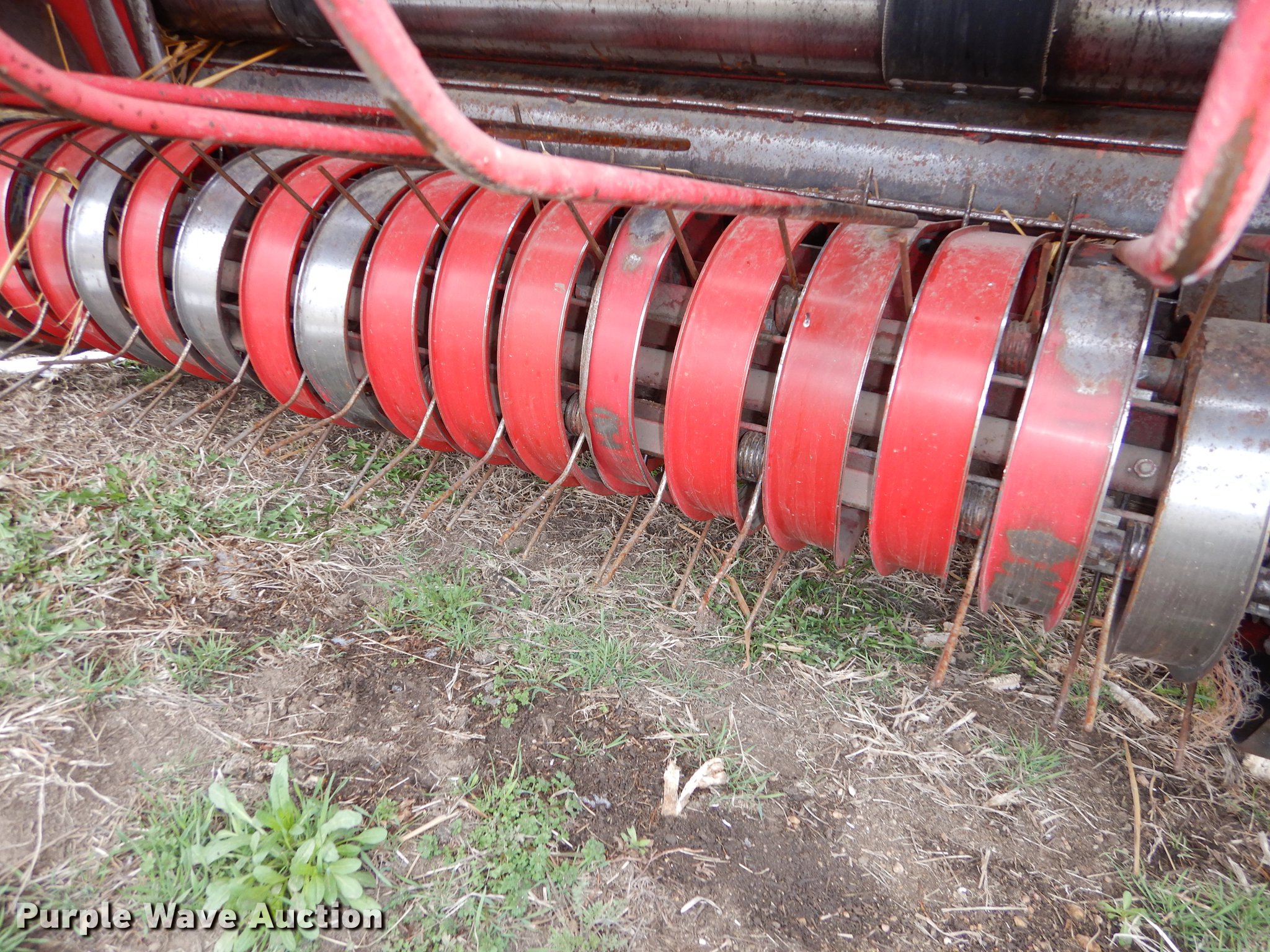 Purple Wave is selling a used Round Baler in Kansas. This item is a Gehl 1875 TDC round baler with the following: 5' x 6' bale capacity, 5'W pickup, Hydraulic pickup lift, Gathering wheels, Worn, Gehl monitor, Twin twine tie, Bale ramp, 540 PTO, Pin hitch, Carlisle 31x13.50-15 tires, Operators manual, Serial 17630