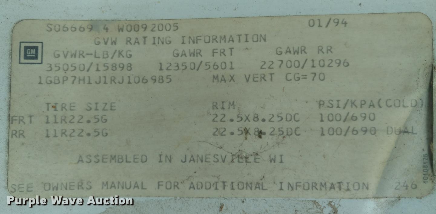 Purple Wave is selling a used Applicator Truck in Kansas. This item is a 1994 Chevrolet Kodiak applicator truck with the following: 81,113 miles on odometer, Caterpillar diesel engine, Automatic transmission, Manual windows and locks, 1,600 gallon stainless steel tank, 90'W booms, Single nozzle bodies, 48x25.00-20 front flotation tires, 66x43.00-25 rear flotation tires