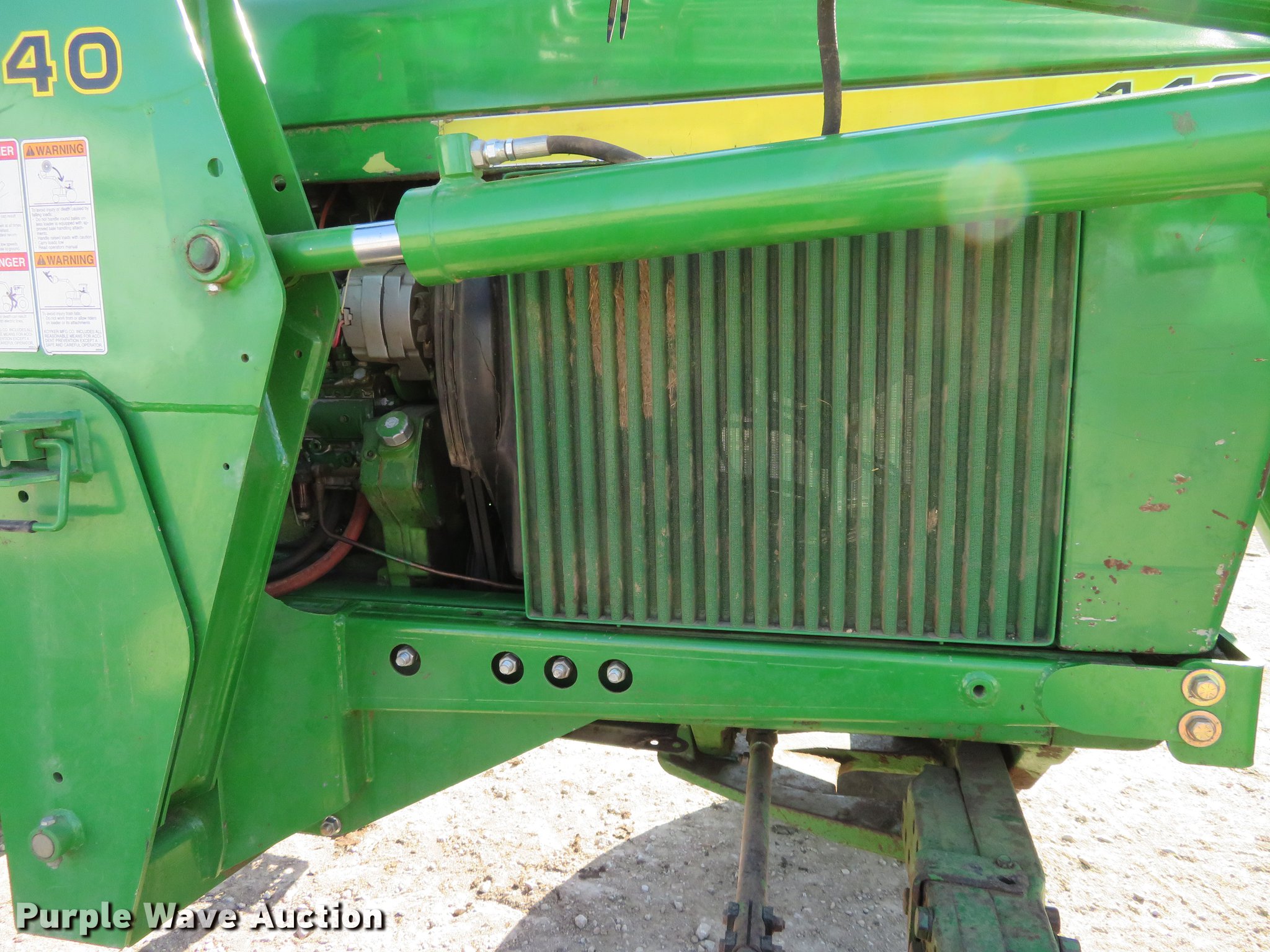 Purple Wave is selling a used Tractor in Kansas. This item is a 1974 John Deere 4430 tractor with the following: 7,508 hours on meter, John Deere six cylinder diesel engine, Synchro transmission, 8F-4R gears, Differential lock, AC and heat, AM/FM, Suspension seat, John Deere 740 loader, 8'W bucket, Quick attach, Self-leveling, Joystick controls, Three point, 540/1000 PTO, Draw bar, Front hydraulic remote, (2) rear hydraulic remotes, Rear wheel weights, 11.00-16 front tires, 18.4R38 rear tires, Serial 4430R031008R