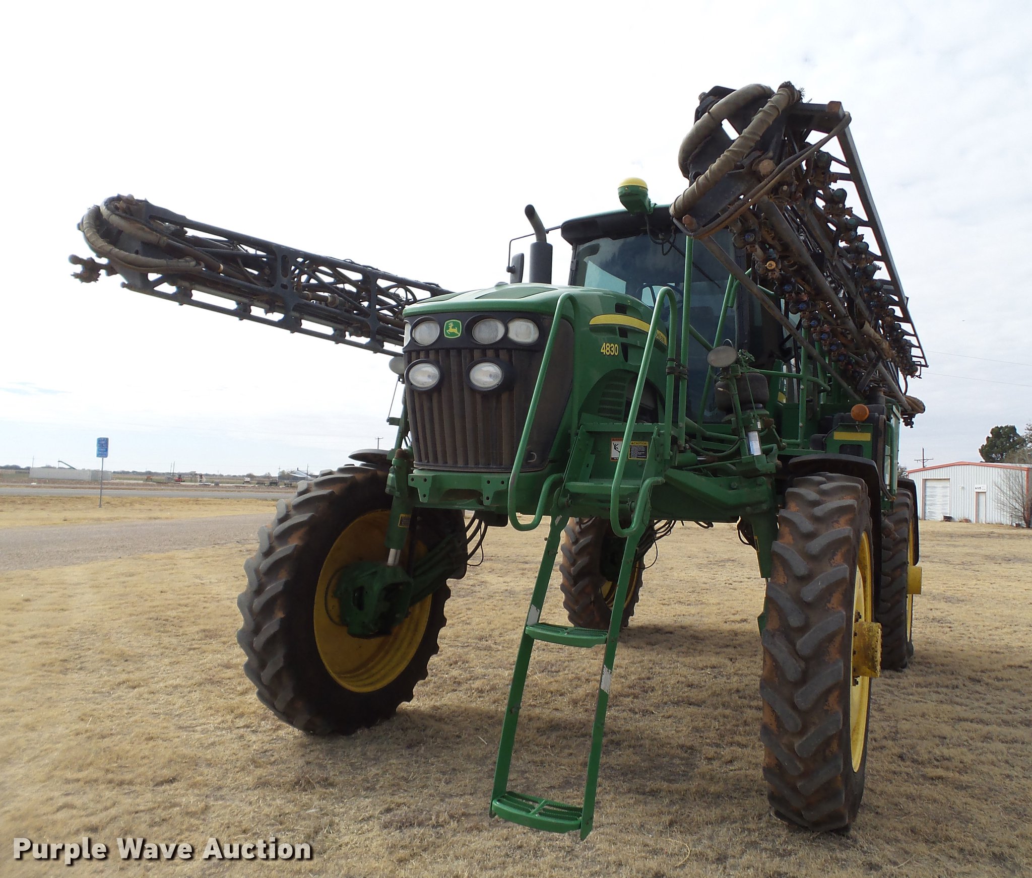 Purple Wave is selling a used Applicator Self Propelled in Texas. This item is a 2013 John Deere 4830 sprayer with the following: 2,280 hours on meter, John Deere 6.8L six cylinder turbo diesel engine, 275 HP, Hydrostatic transmission, Four wheel drive, 1,000 gallon solution tank, Chemical eductor, Rinse tank, 100'W boom, Seven boom sections, Break-away boom, Hydraulic boom fold, Automatic hydraulic height control, 15" nozzle spacing, Five way nozzle bodies, AC and heat, AM/FM, Air suspension seat, Work lights, GPS monitor, Star Fire 3000 GPS receiver, Hydraulic ladder, Fenders, Belly shield, Hydraulic axle width adjustment, 380/90R46 row crop tires, Serial 1N04830XAC0023611