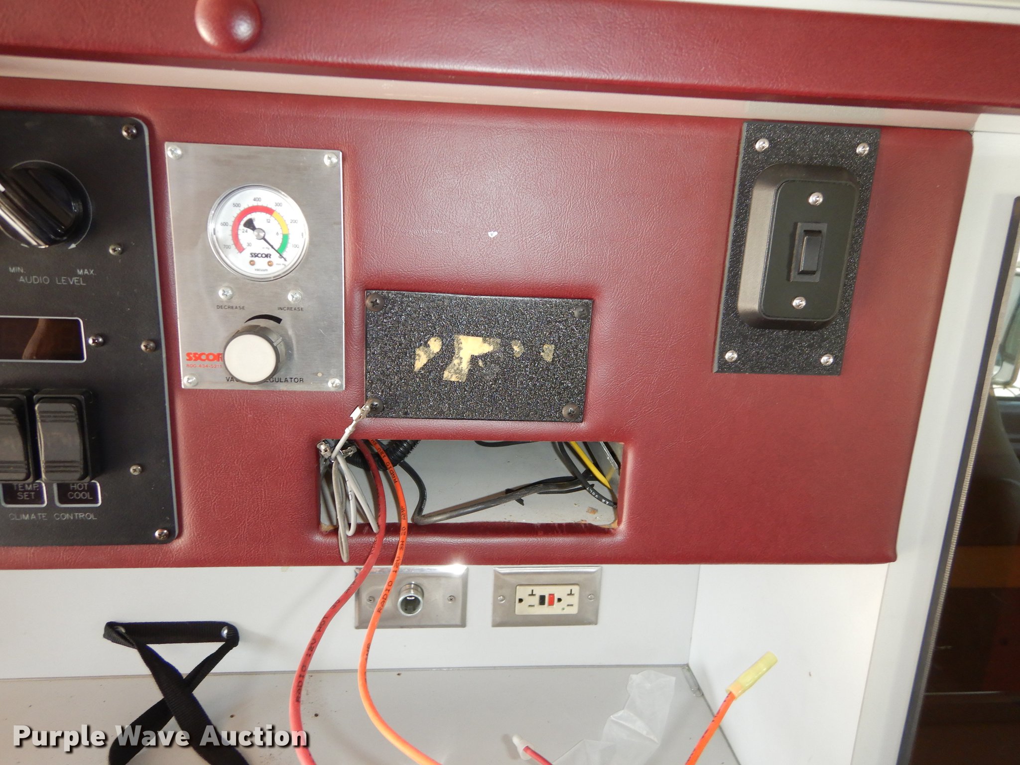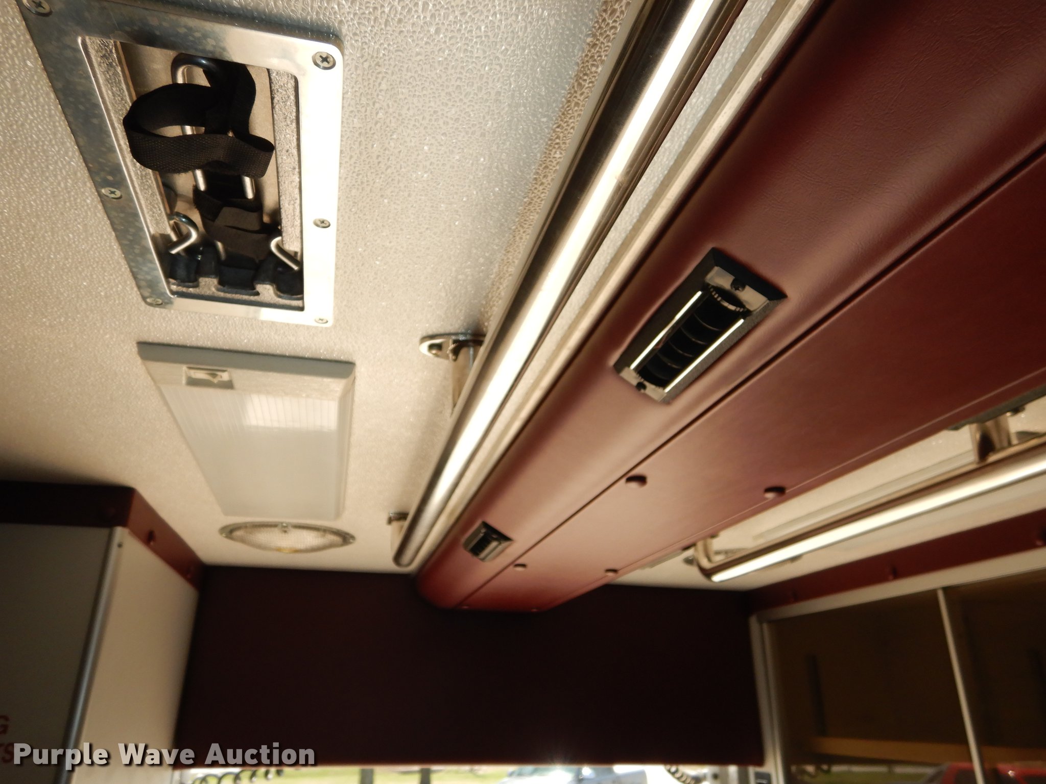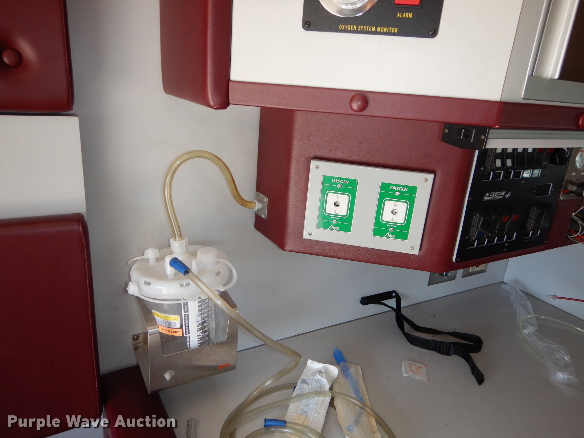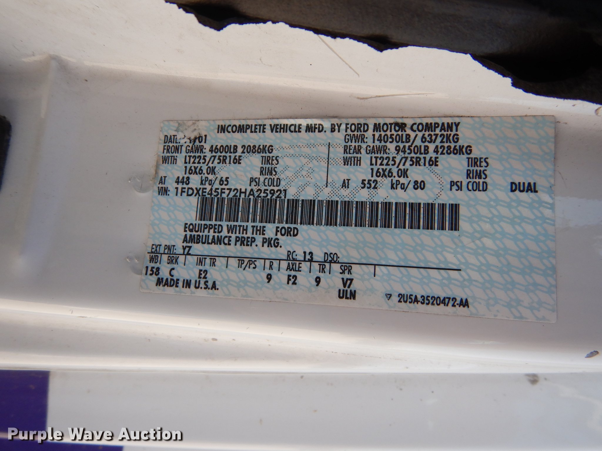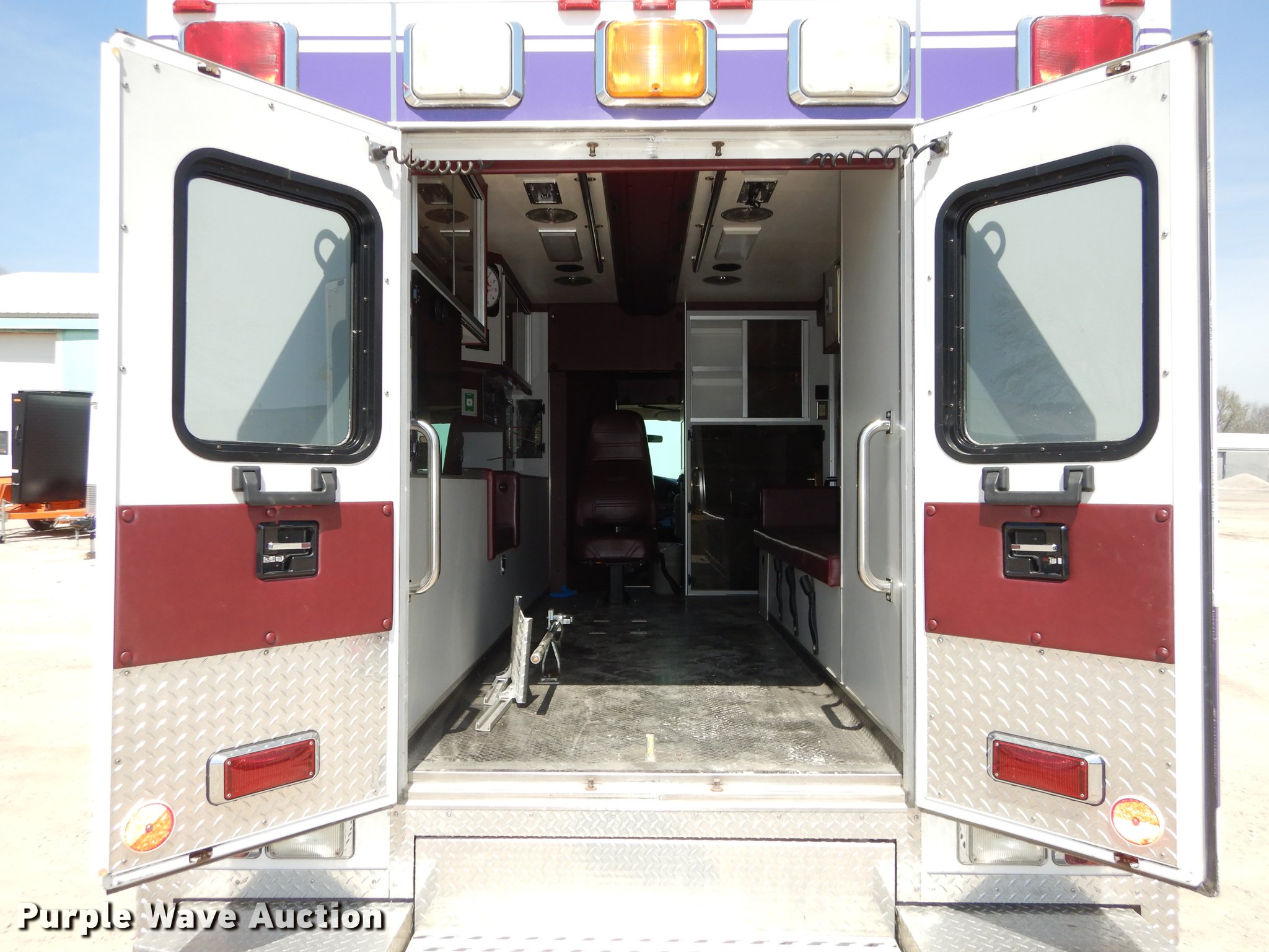 Purple Wave is selling a used Fire Truck or Emergency Vehicle in Kansas. This item is a 2002 Ford Econoline E450 Super Duty ambulance with the following: 175,843 miles on odometer, 7.3L V8 OHV 16V turbo diesel engine, Automatic transmission, Single axle, AC and heat, Tilt, Cruise, AM/FM/cassette, Power windows and locks, Cloth interior, Electric entry step, Backup alarm, Whelen PA/ siren controls, (3) oxygen hookups, Michelin 225/75R16 tires, GVWR 14,050 lbs, Battery weak