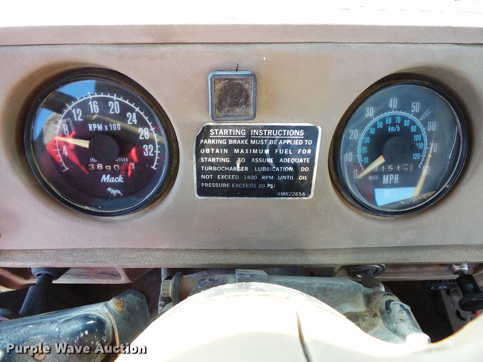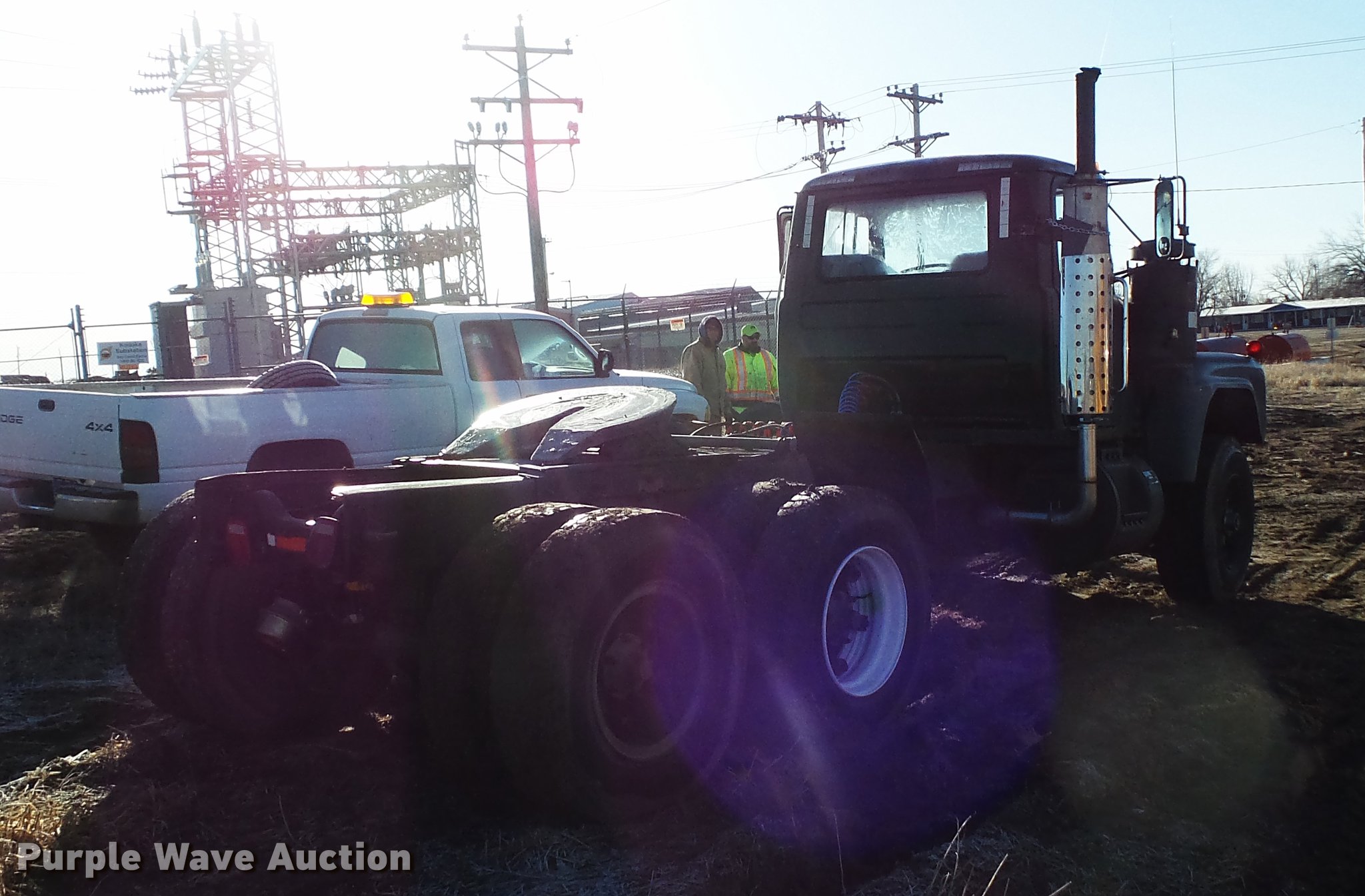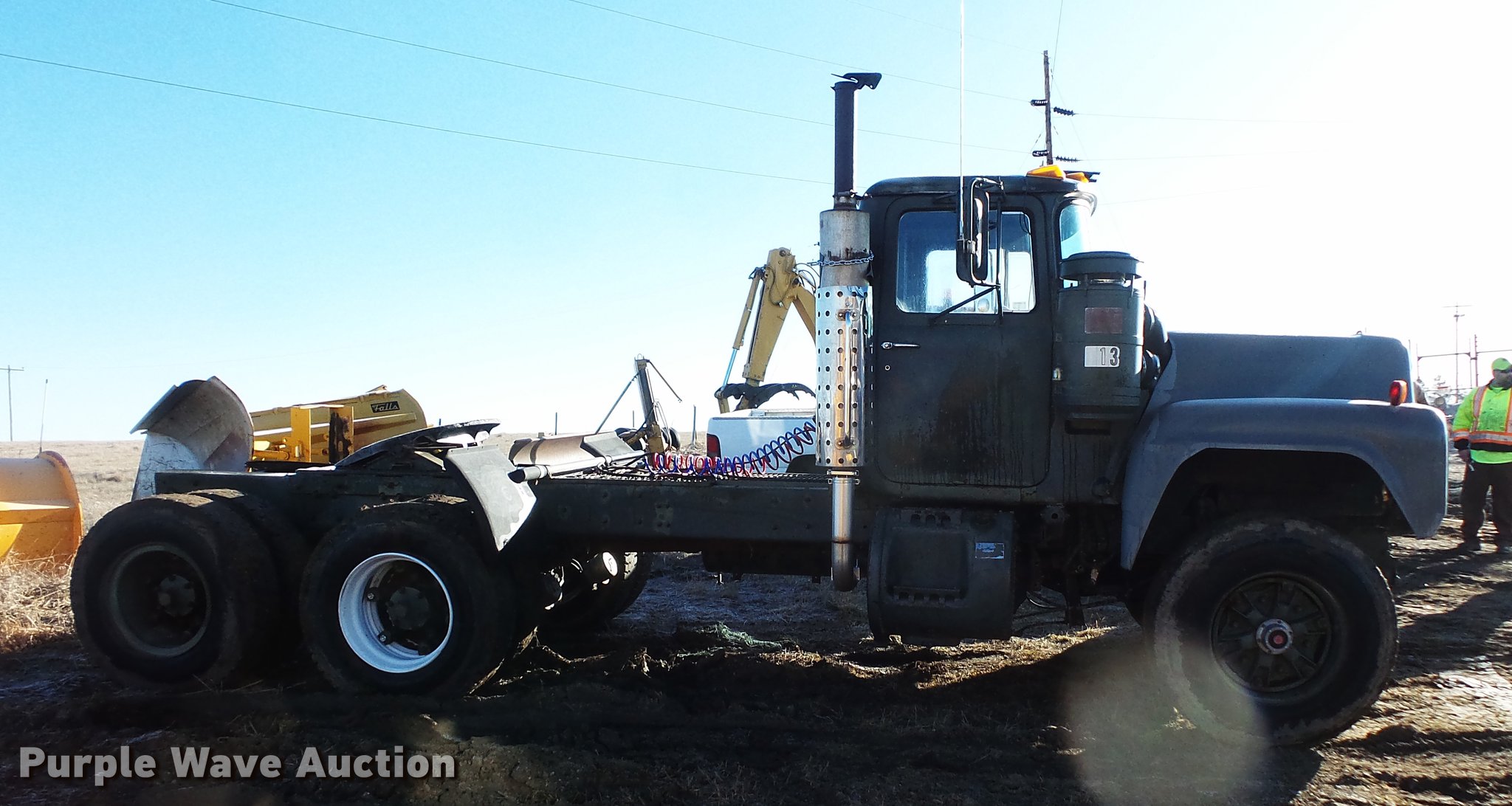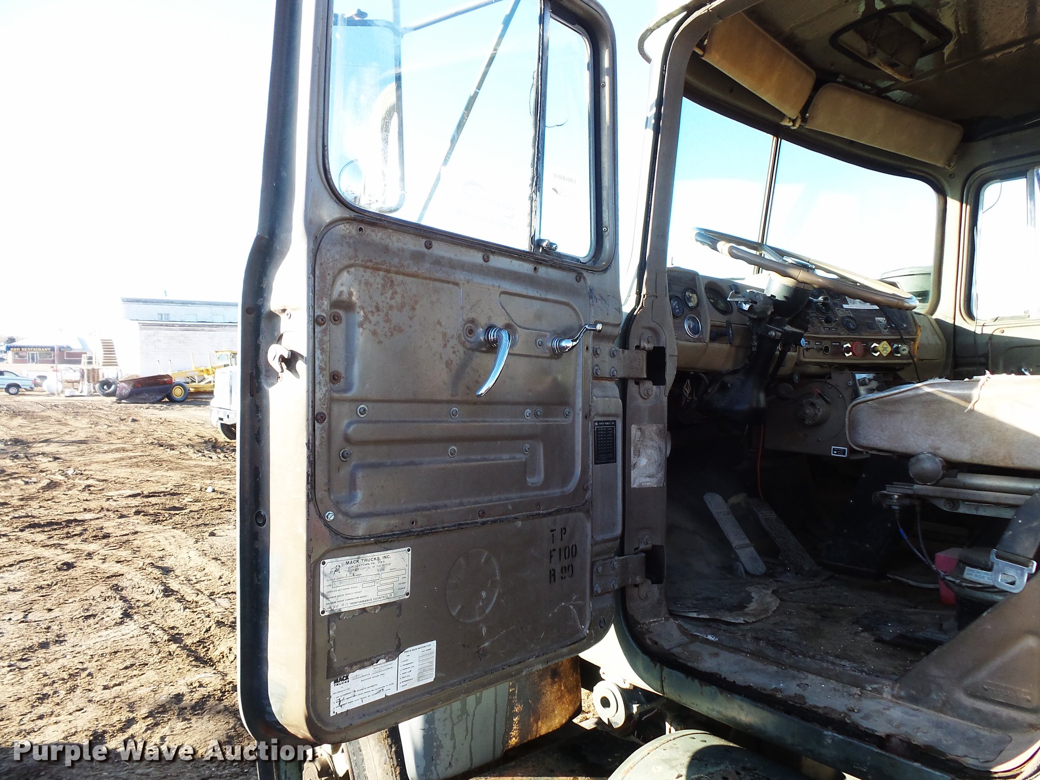 Purple Wave is selling a used Truck Tractor in South Dakota. This item is a 1980 Mack RD688 semi truck with the following: 13,151 miles on odometer, 3,890 hours on meter, Mack E6 six cylinder turbo diesel engine, 350 HP, Automatic transmission, Tandem axle, Air suspension seat, Backup alarm, Beacon light, Single exhaust stack, Steel deck plate, Sliding fifth wheel plate, Dual fuel tanks, Mack rear ends, Camelback suspension, Air brakes, 188" wheelbase, 385/65R22.5 front tires, 11R22.5 rear tires, (4) additional 10.00R20 tires, Additional 385/65R22.5 tire