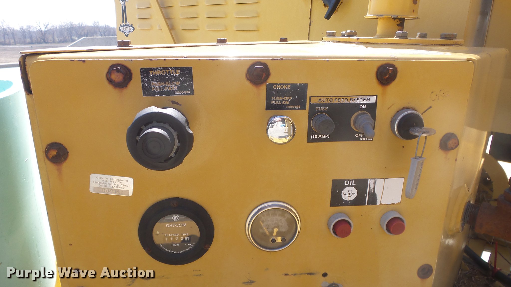 Purple Wave is selling a used Wood Chipper or Stump Grinder in Kansas. This item is a 1993 Vermeer BC1250 wood chipper with the following: 1,122 hours on meter, Ford six cylinder gas engine, Auto feed system, Ball hitch, 235/85R16 tires