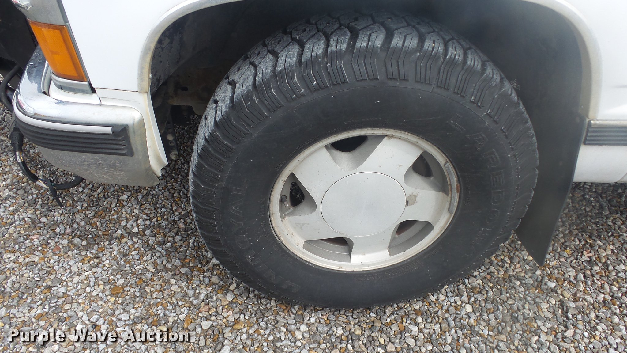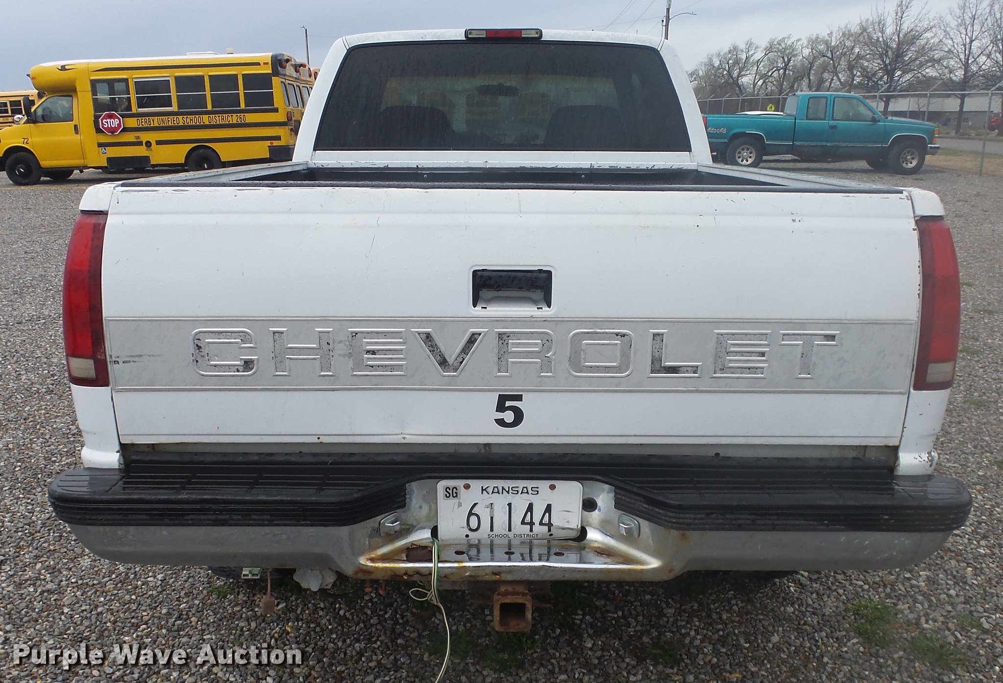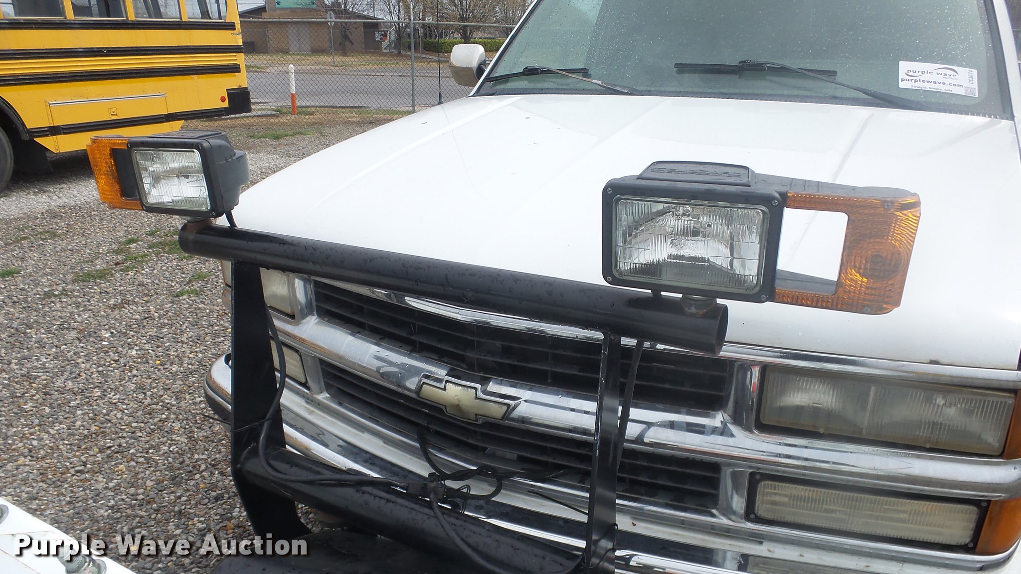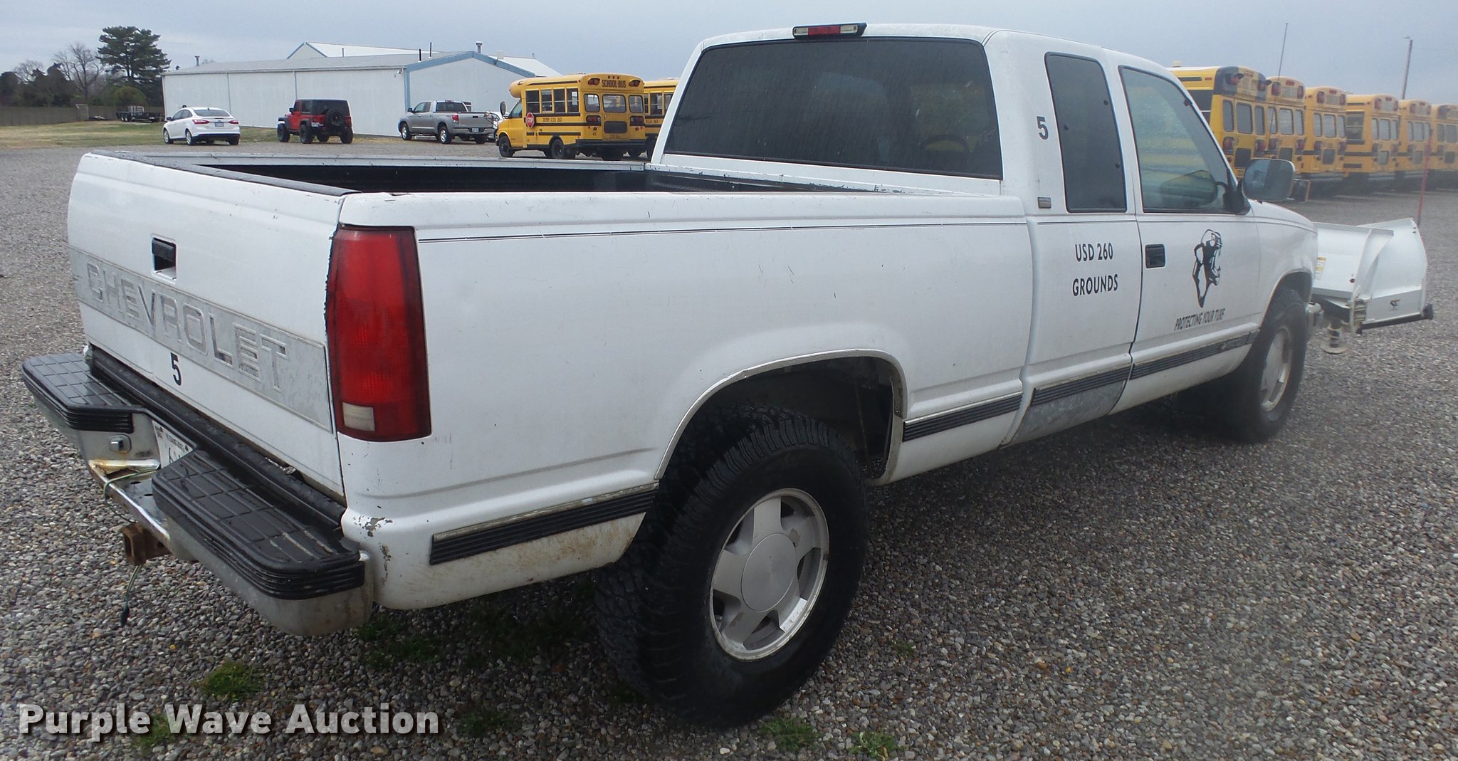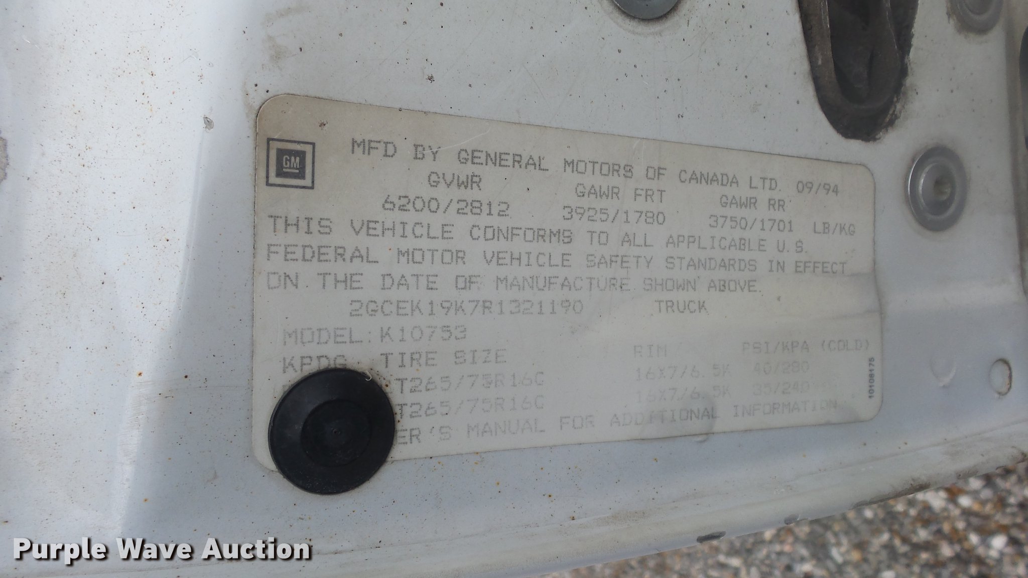 Purple Wave is selling a used 1/2 Ton Pickup or Van in Kansas. This item is a 1994 Chevrolet 1500 Ext. Cab pickup truck with the following: 145,706 miles on odometer, 5.7L V8 OHV 16V gas engine, Automatic transmission, Four wheel drive, AC and heat, AM/FM/cassette, Power windows and locks, Cloth interior, In-cab controls, Front tow hooks, Blizzar snow plow, 7'W, Lights, Receiver hitch, Trailer wiring, 265/75R16 tires, Transmission slips, No exhaust, Non-operational AC and heat, Intermittent snow plow issues, Passenger window inoperable, Blown cylinder head gasket