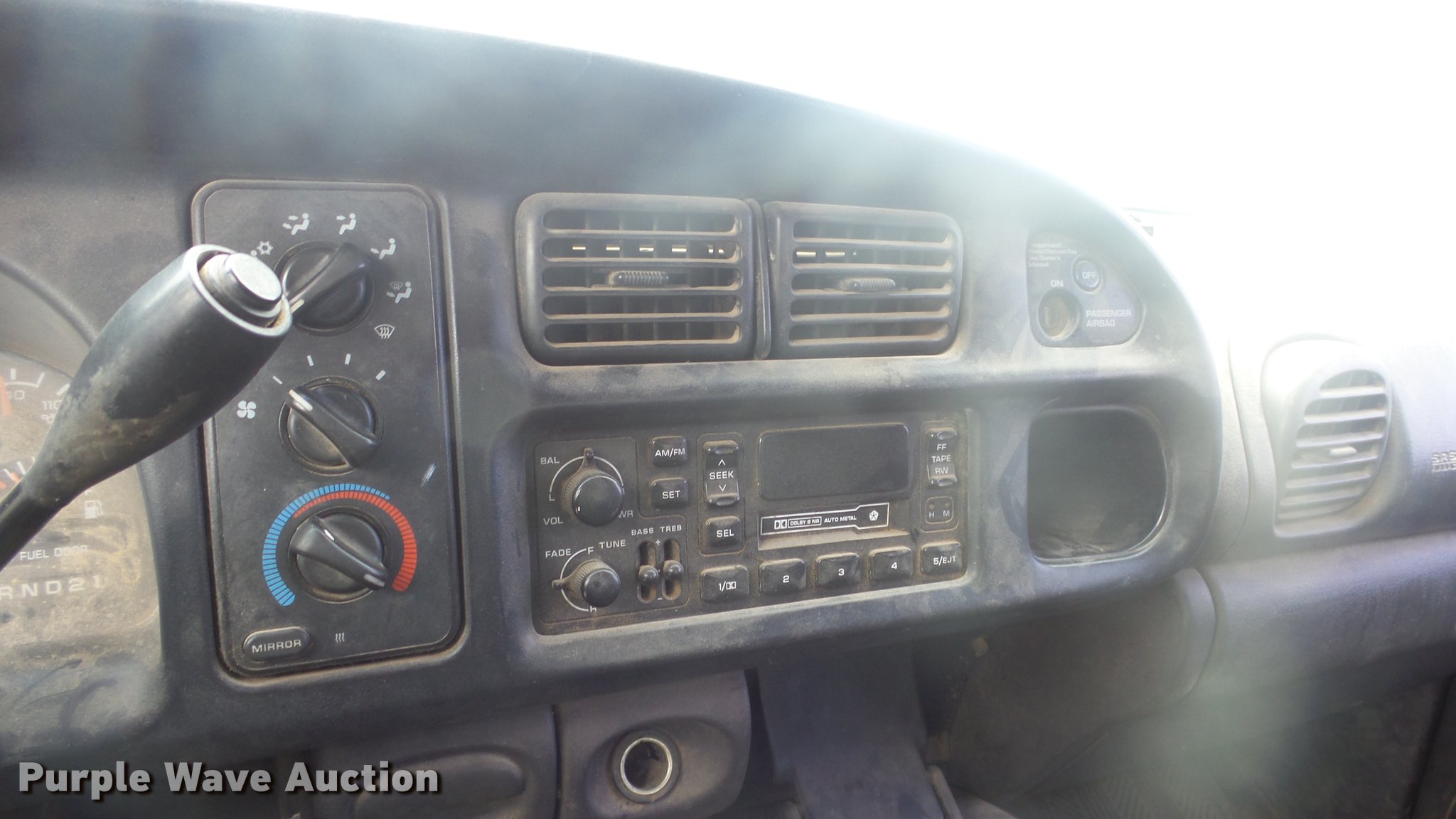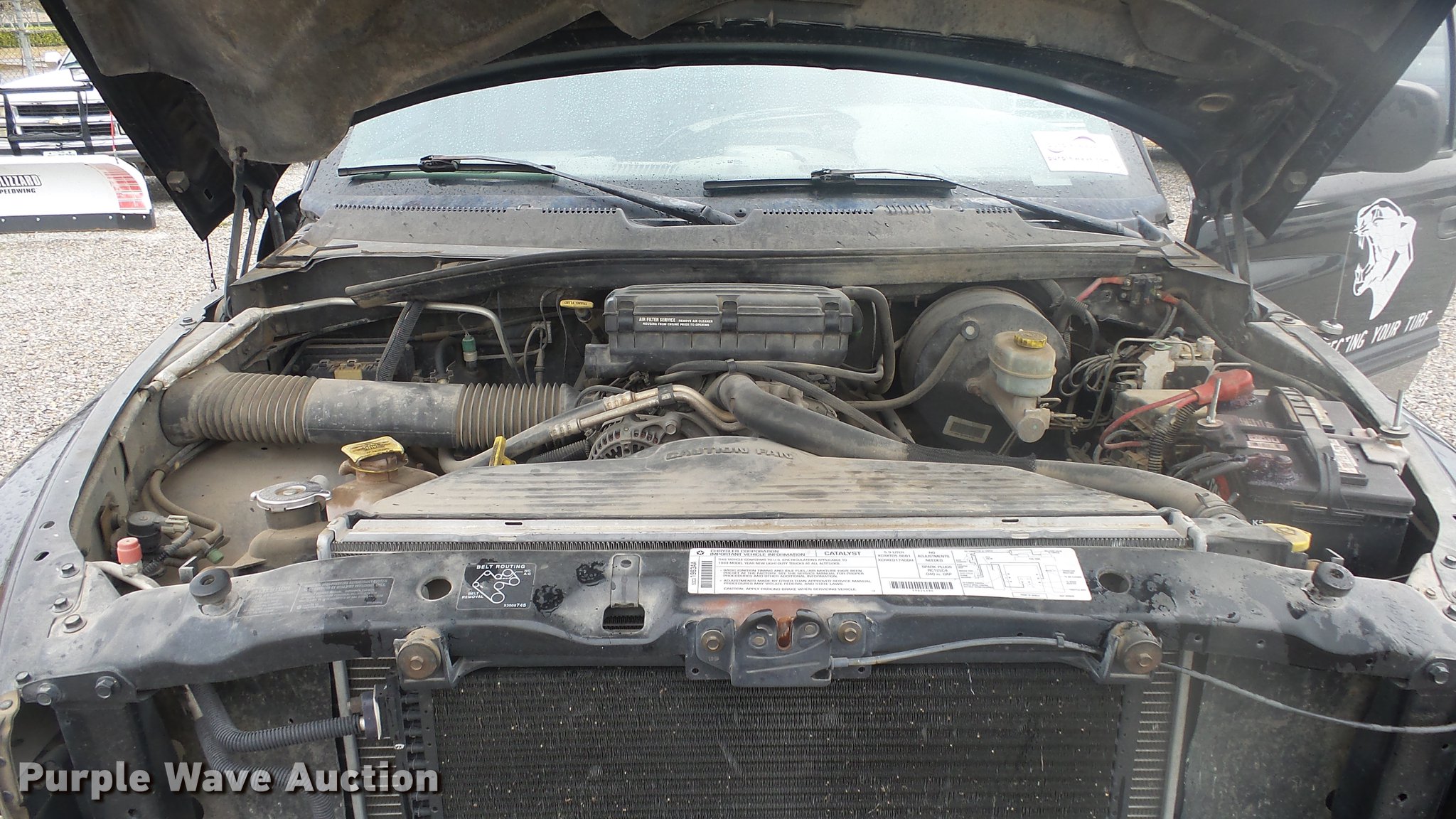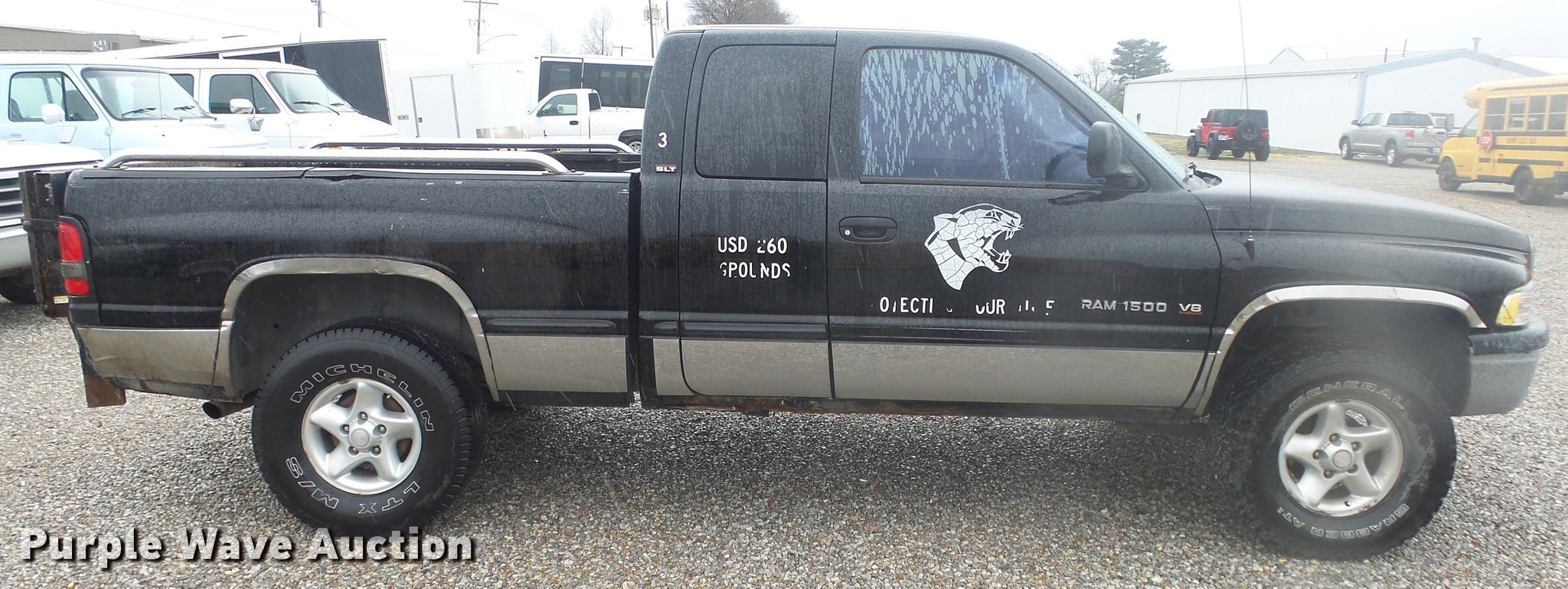 Purple Wave is selling a used 1/2 Ton Pickup or Van in Kansas. This item is a 1999 Dodge Ram 1500 Quad Cab pickup truck with the following: 157,577 miles on odometer, 5.9L V8 OHV 16V gas engine, Automatic transmission, Four wheel drive, AC and heat, Tilt, Cruise, AM/FM/cassette, Power windows and locks, Cloth interior, Tommy Gate end gate lift, Model 60-1040, Receiver hitch, 285/75R16 tires, Non-operational four wheel drive
