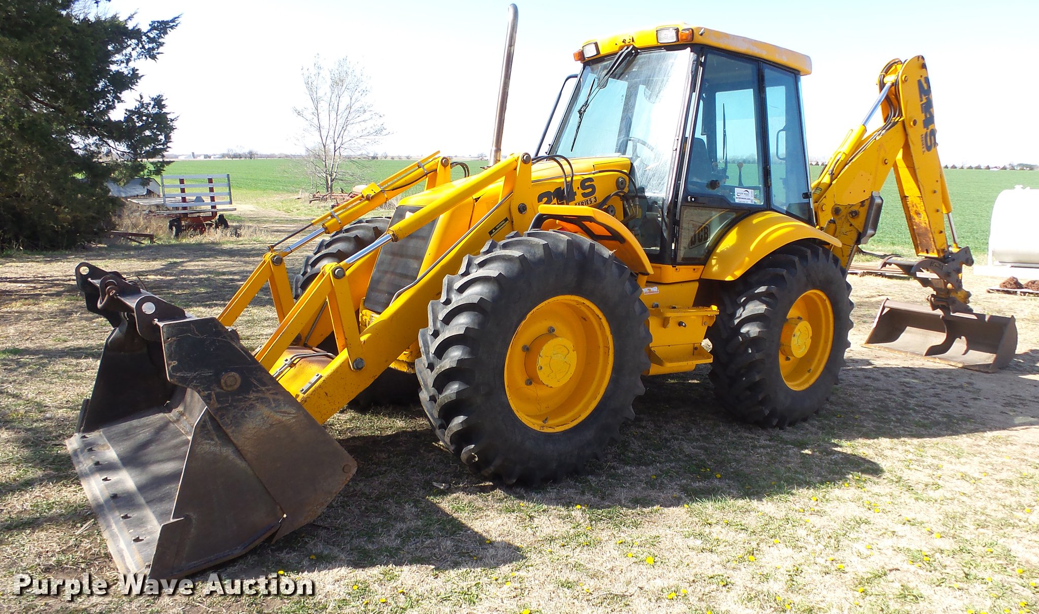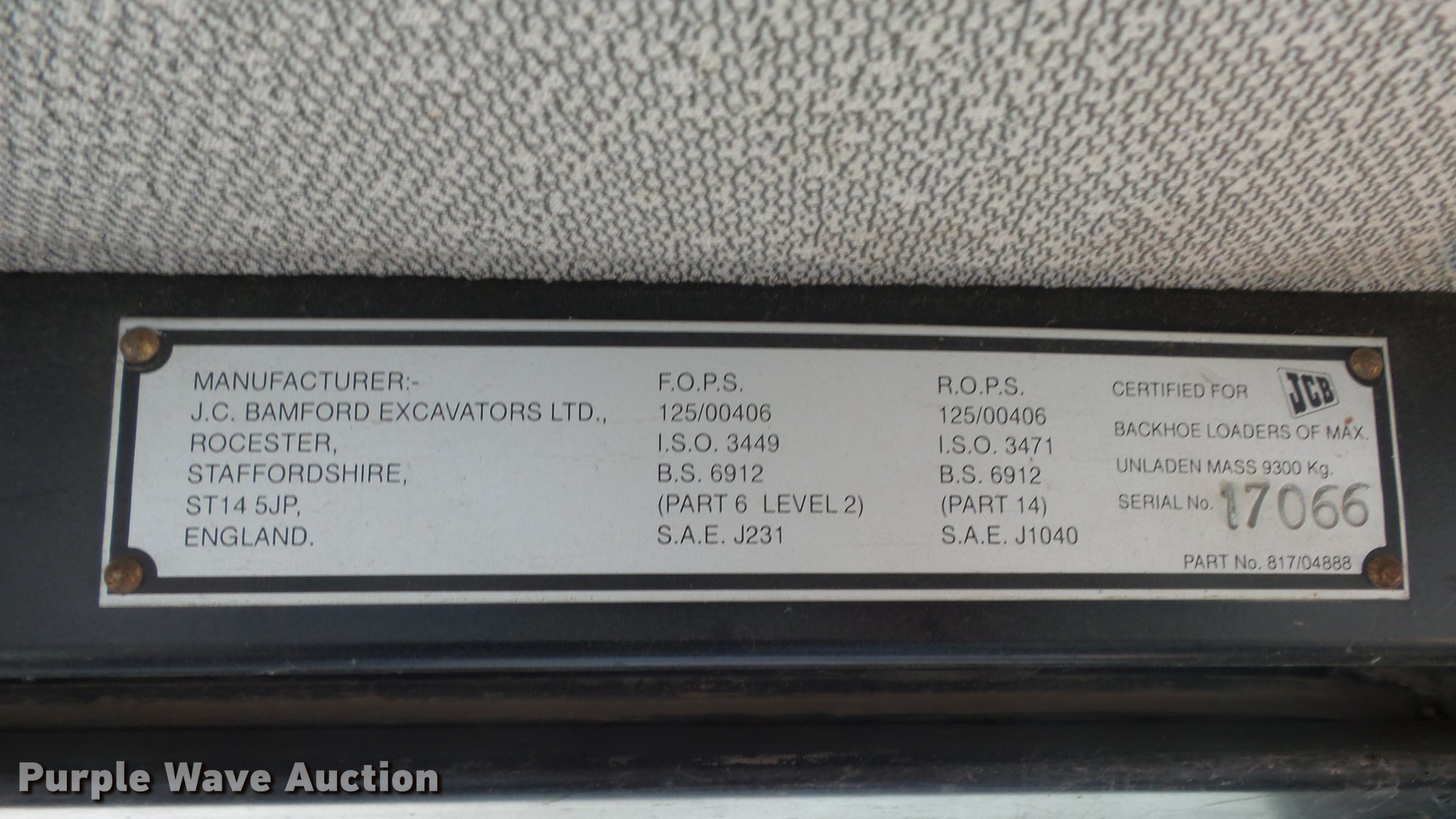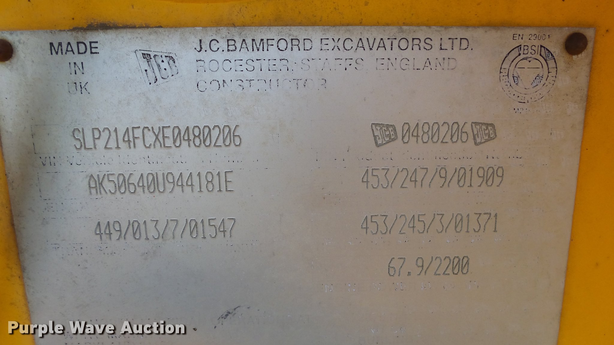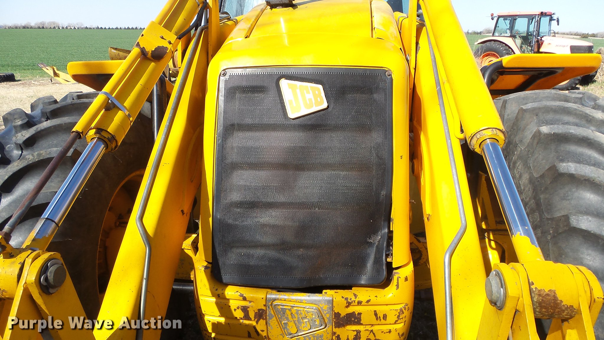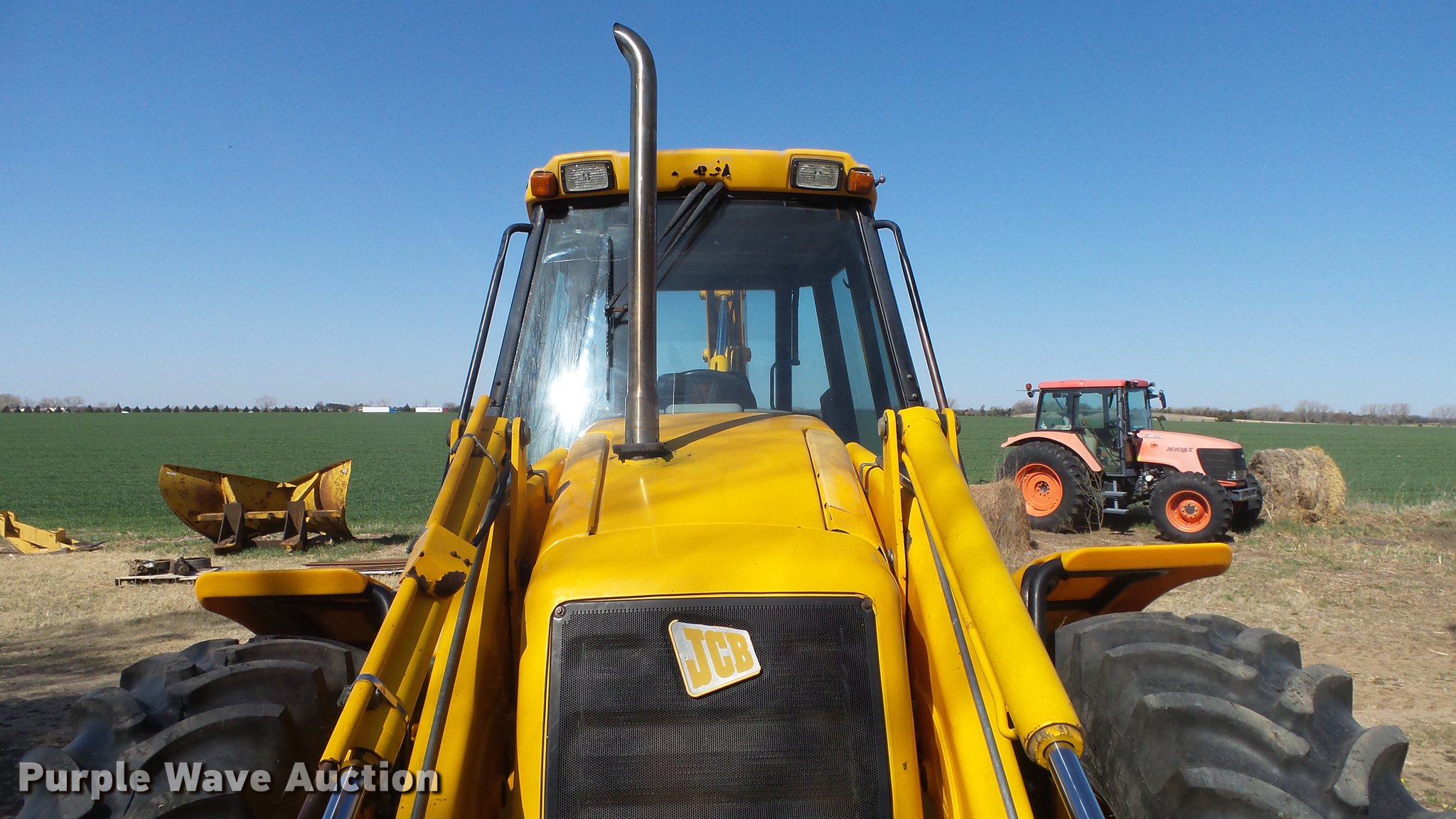 Purple Wave is selling a used Tractor Loader Backhoe in Kansas. This item is a 1999 JCB 214S Series 3 backhoe with the following: 3,475 hours on meter, JCB 444 4.4L four cylinder turbo diesel engine, 97.6 HP, JCB powershift transmission, 4F-4R gears, Four wheel drive, Differential lock, EROPS, AC and heat, AM/FM, Wobble stick backhoe controls, Suspension seat, Front and rear work lights, Wipers, 92"W four-in-one bucket, Bolt-on cutting edge, Extendable stick, 60"W bucket, Weld-on cutting edge, Amulet manual thumb, 24"W bucket, (4) teeth, 16.9R28 tires, Additional tire and wheel, Serial SLP214FCXE0480206