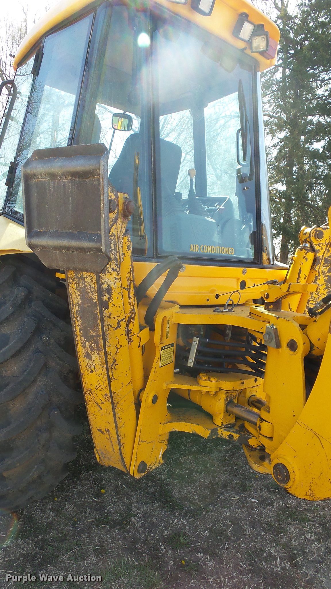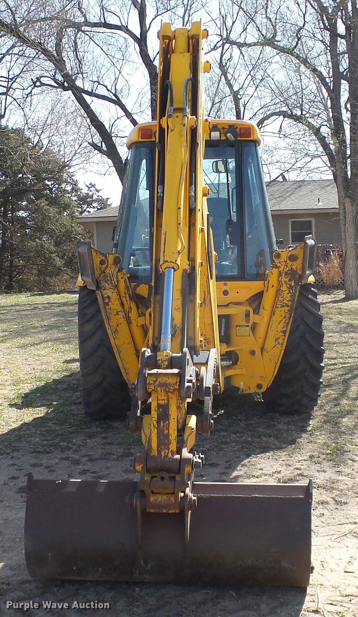 1999 JCB 214S Series 3 backhoe. 3,475 hours on meter, JCB 444 4.4L four cylinder turbo diesel engine 97.6 HP, JCB powershift transmission 4F-4R gears, Four wheel drive, Differential lock, EROPS, AC and heat, AM/FM, Wobble stick backhoe controls, Suspension seat, Front and rear work lights, Wipers, 92"W four-in-one bucket Bolt-on cutting edge, Extendable stick, 60"W bucket Weld-on cutting edge, Amulet manual thumb, 24"W bucket (4) teeth, 16.9R28 tires, Additional tire and wheel, Serial SLP214FCXE0480206. Darlington Township. Newton, KS 67114