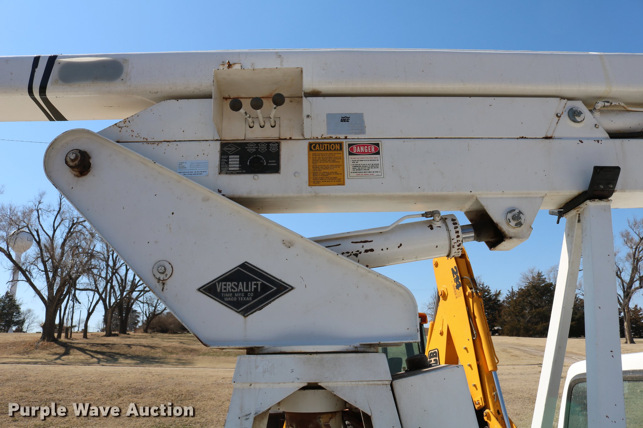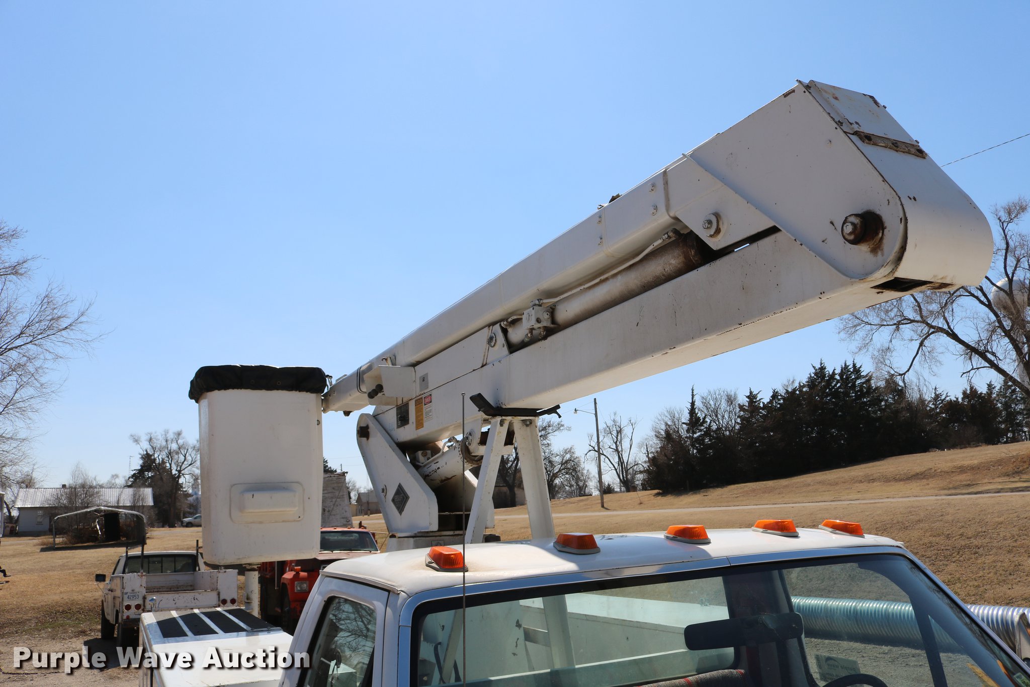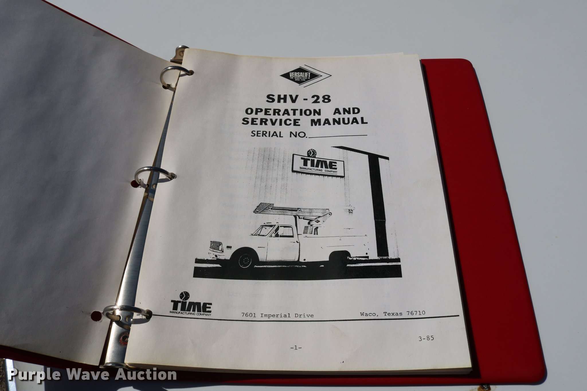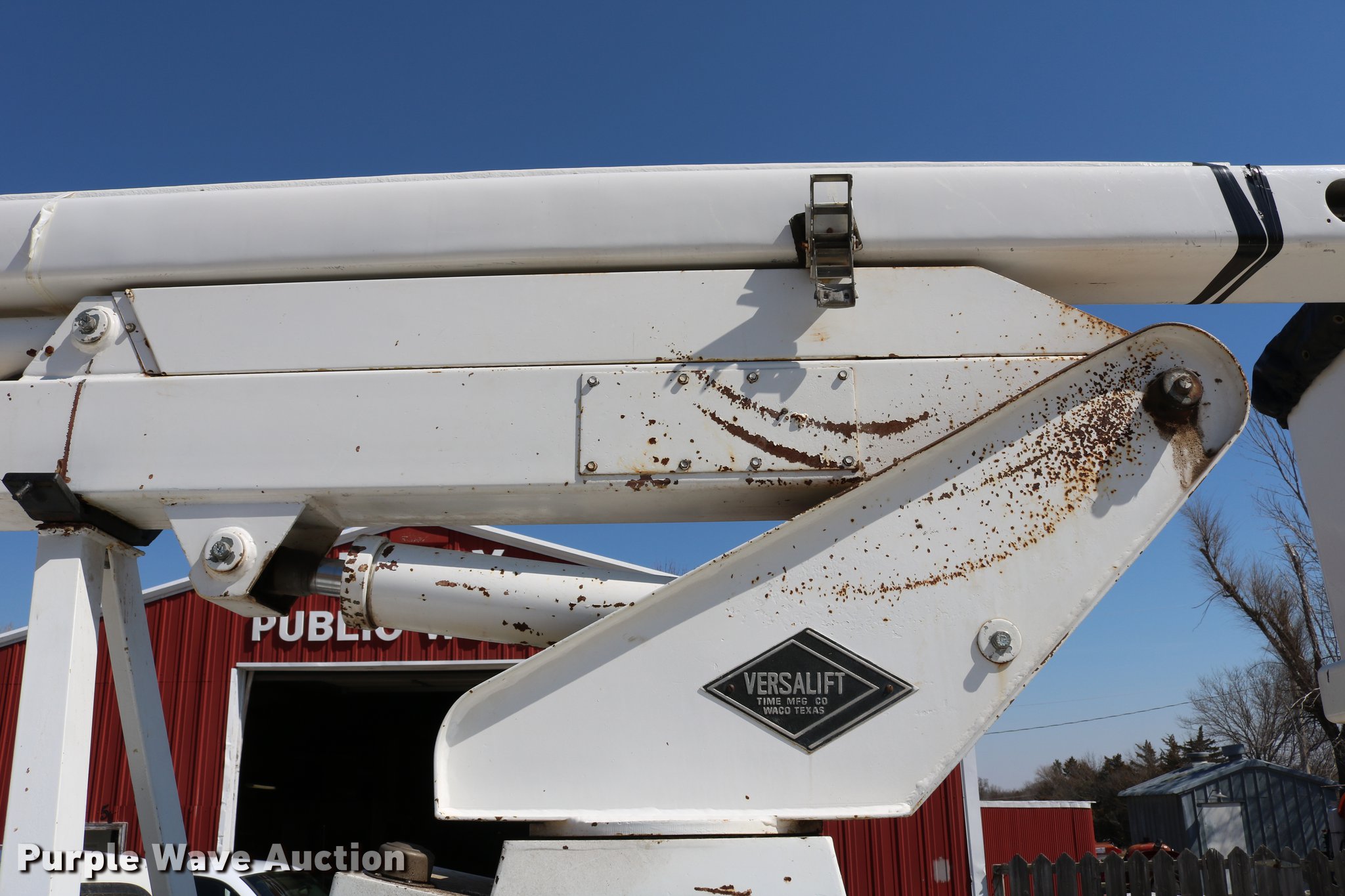 Purple Wave is selling a used Bucket Truck in Kansas. This item is a 1989 Ford F450 Super Duty bucket truck with the following: 103,504 miles on odometer, 7.5L V8 gas engine, Five speed manual transmission, Single axle, AC and heat, PTO, Stahl service bed, 9'L, Shelving, Serial 30-1335, Versalift SHV28PT boom, 28' boom length, 300 lbs max lift capacity, Man basket, 33' max lift height, Ground and platform boom controls, Boom rotation, Insulated boom, Serial 48254, Single fuel tank, Spring suspension, Hydraulic brakes, 137" wheelbase, 235/85R16 tires, GVWR 14,500 lbs, Leveling boom sprocket bent, Non-operational AC