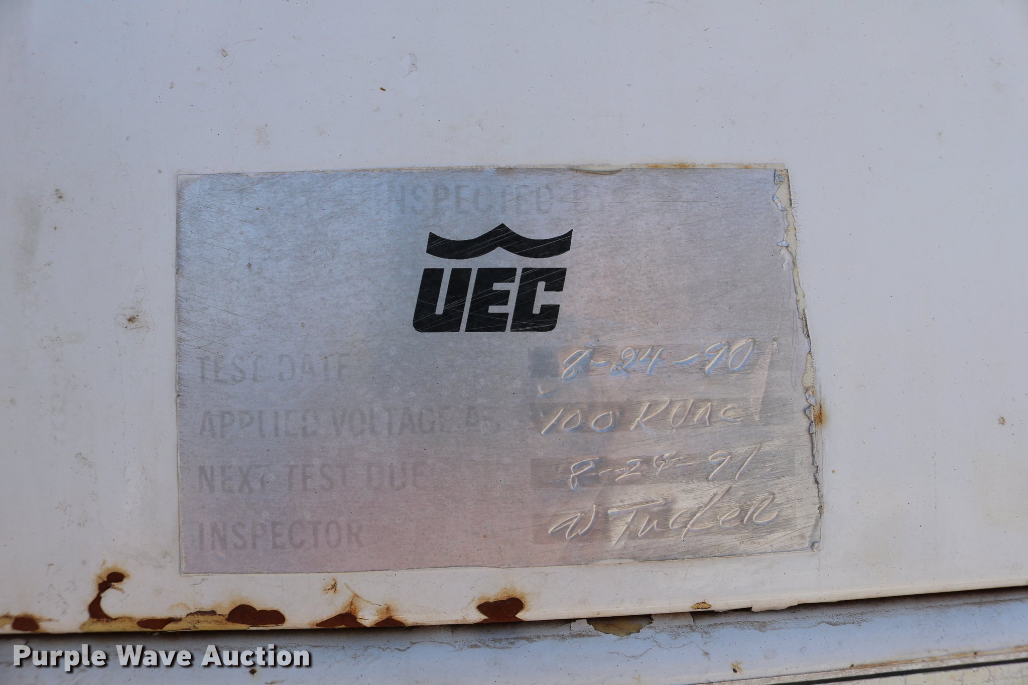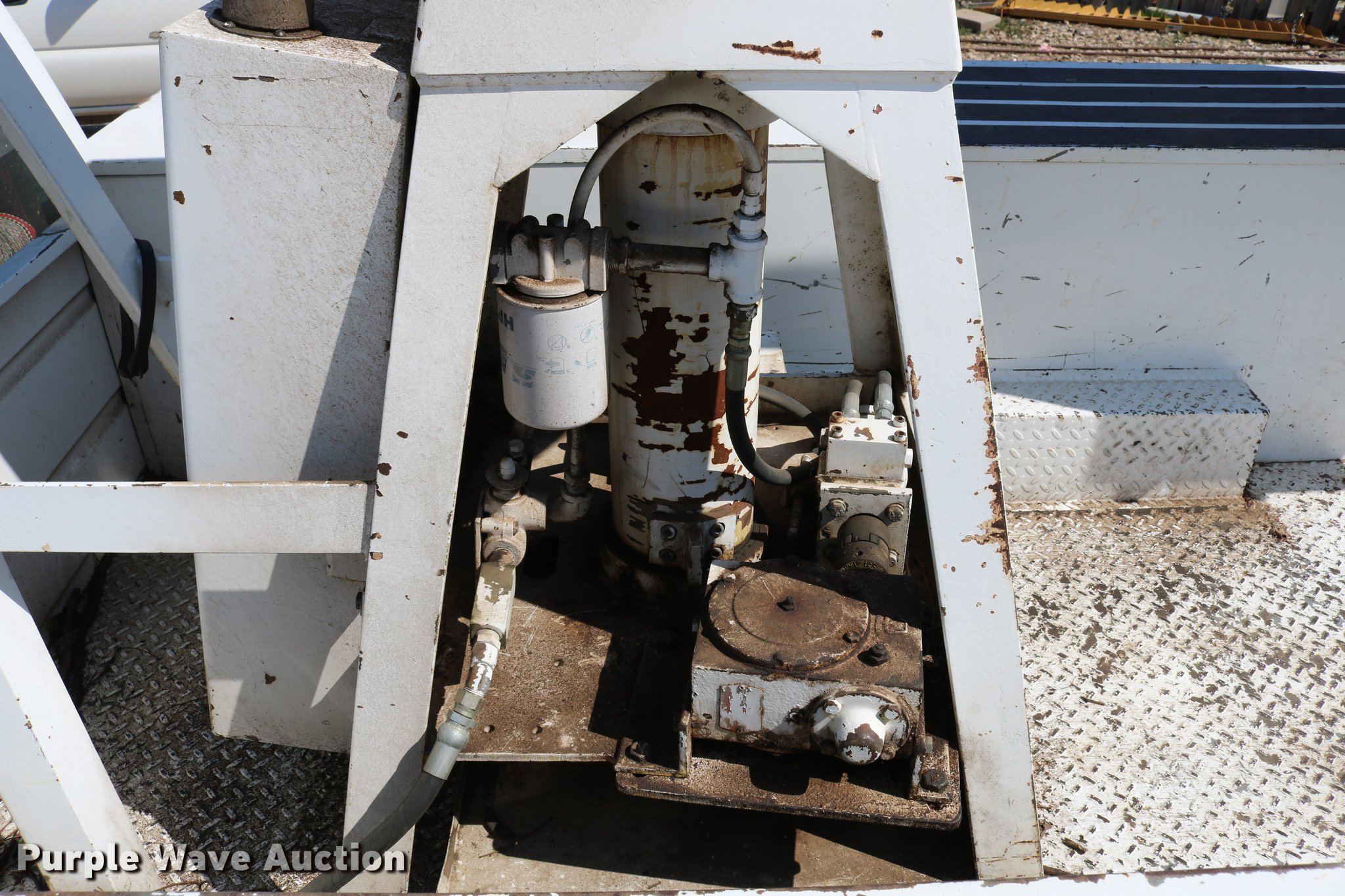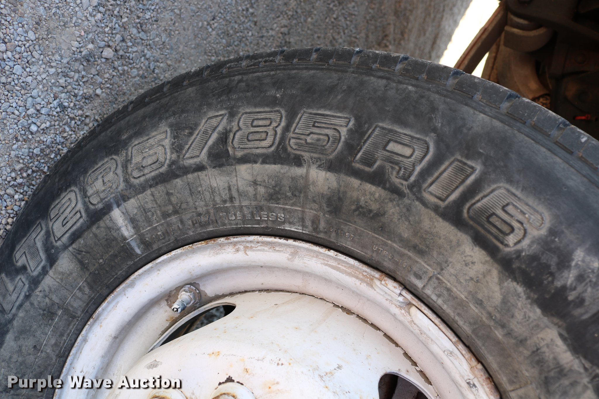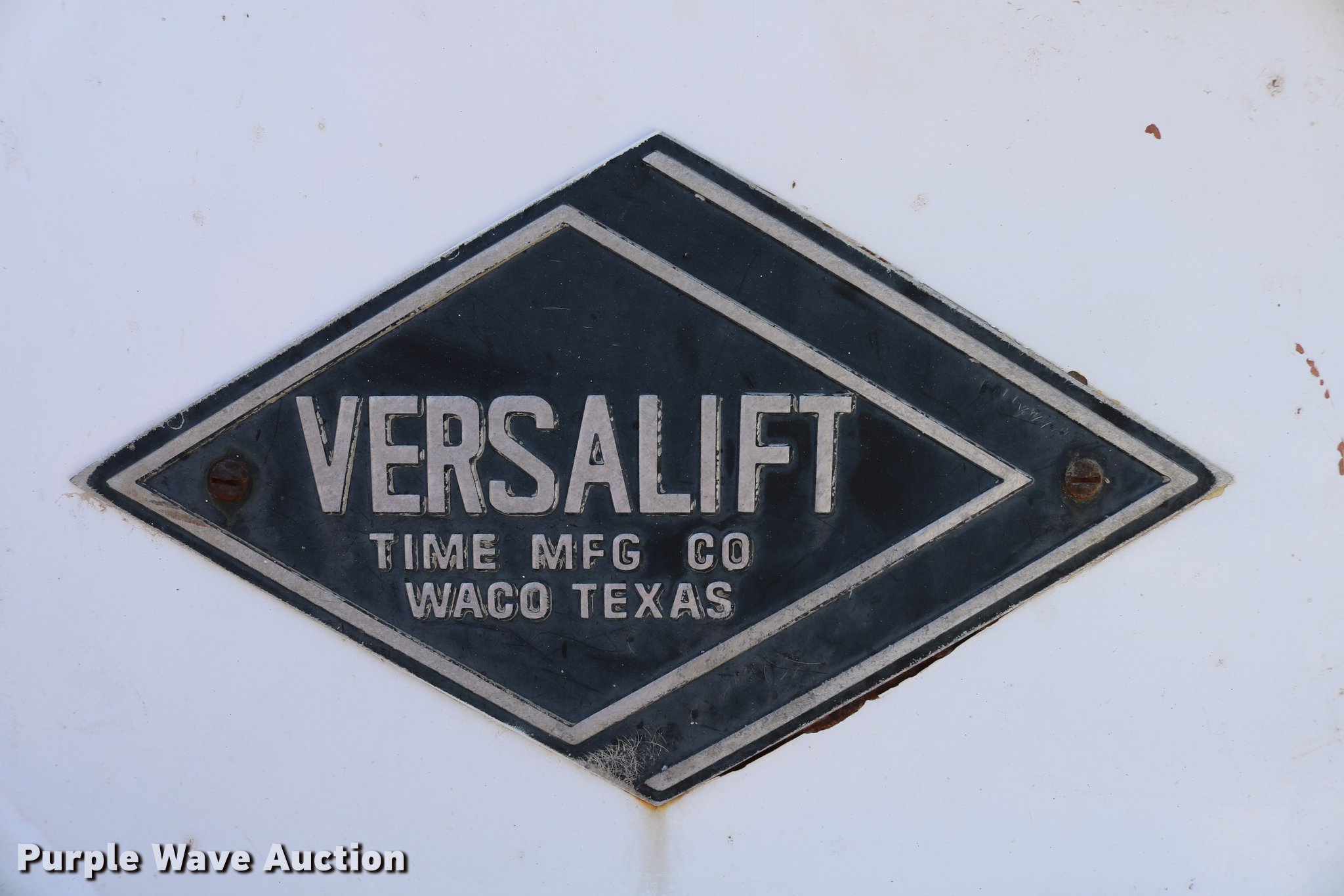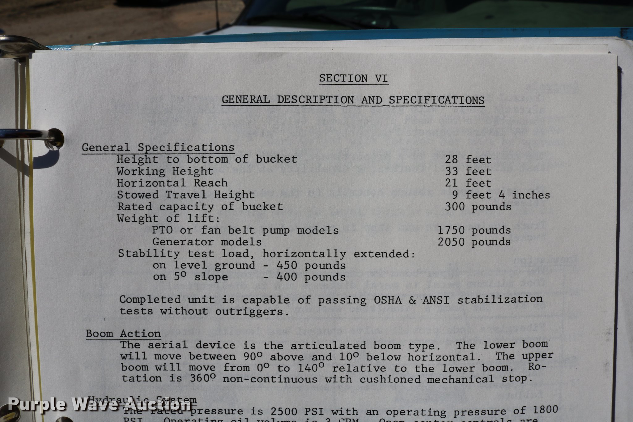 Purple Wave is selling a used Bucket Truck in Kansas. This item is a 1989 Ford F450 Super Duty bucket truck with the following: 103,504 miles on odometer, 7.5L V8 gas engine, Five speed manual transmission, Single axle, AC and heat, PTO, Stahl service bed, 9'L, Shelving, Serial 30-1335, Versalift SHV28PT boom, 28' boom length, 300 lbs max lift capacity, Man basket, 33' max lift height, Ground and platform boom controls, Boom rotation, Insulated boom, Serial 48254, Single fuel tank, Spring suspension, Hydraulic brakes, 137" wheelbase, 235/85R16 tires, GVWR 14,500 lbs, Leveling boom sprocket bent, Non-operational AC