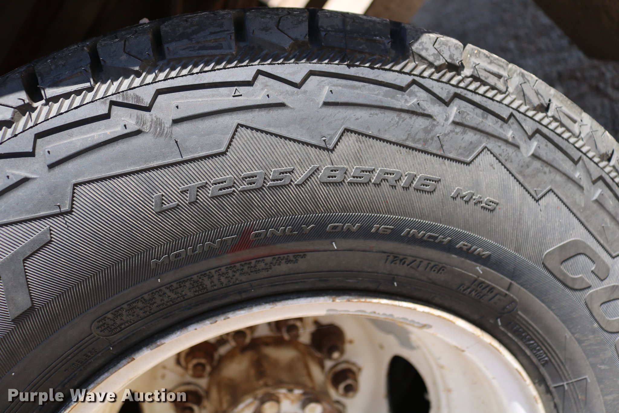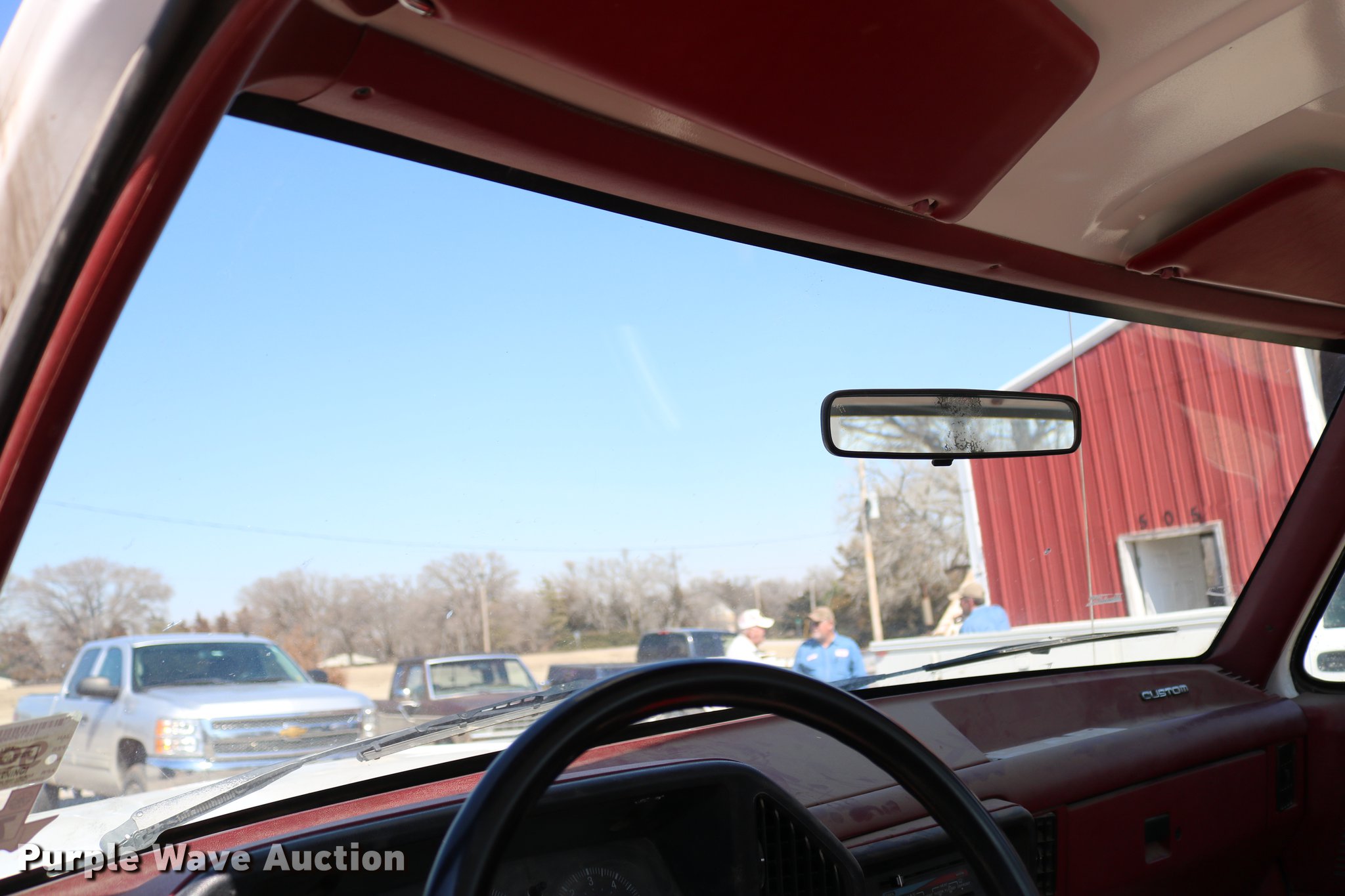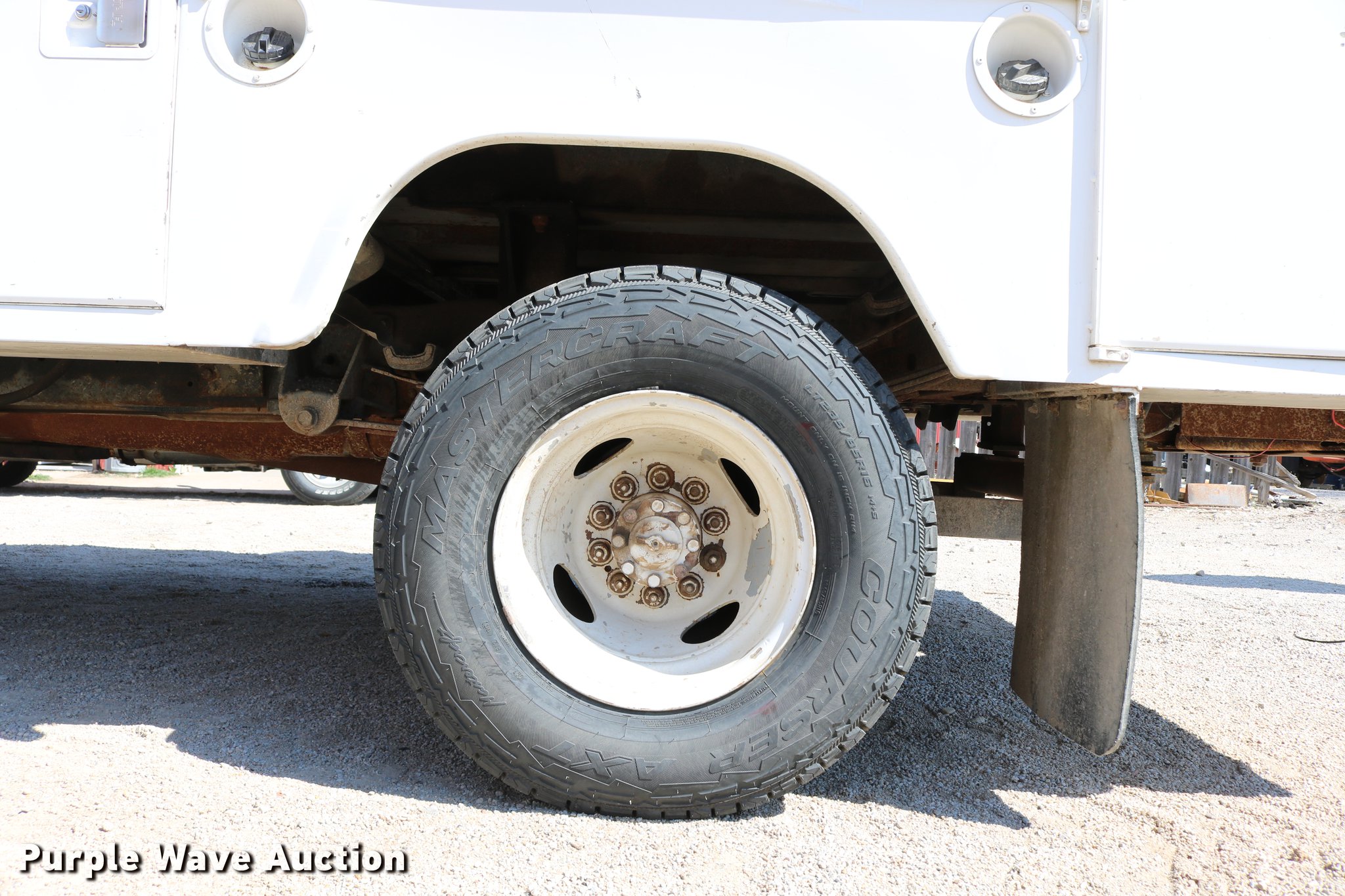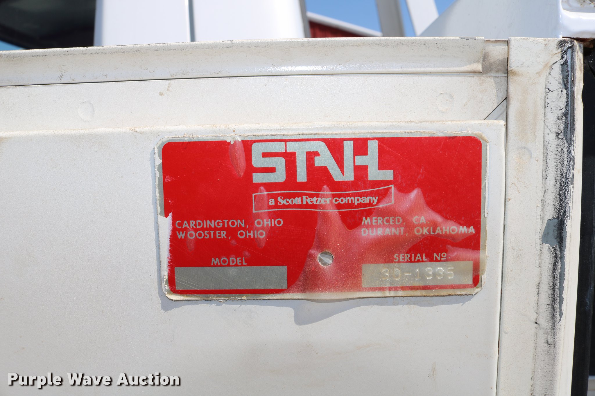 Purple Wave is selling a used Bucket Truck in Kansas. This item is a 1989 Ford F450 Super Duty bucket truck with the following: 103,504 miles on odometer, 7.5L V8 gas engine, Five speed manual transmission, Single axle, AC and heat, PTO, Stahl service bed, 9'L, Shelving, Serial 30-1335, Versalift SHV28PT boom, 28' boom length, 300 lbs max lift capacity, Man basket, 33' max lift height, Ground and platform boom controls, Boom rotation, Insulated boom, Serial 48254, Single fuel tank, Spring suspension, Hydraulic brakes, 137" wheelbase, 235/85R16 tires, GVWR 14,500 lbs, Leveling boom sprocket bent, Non-operational AC