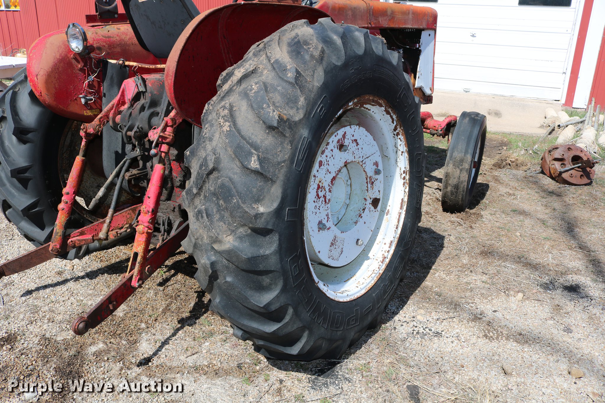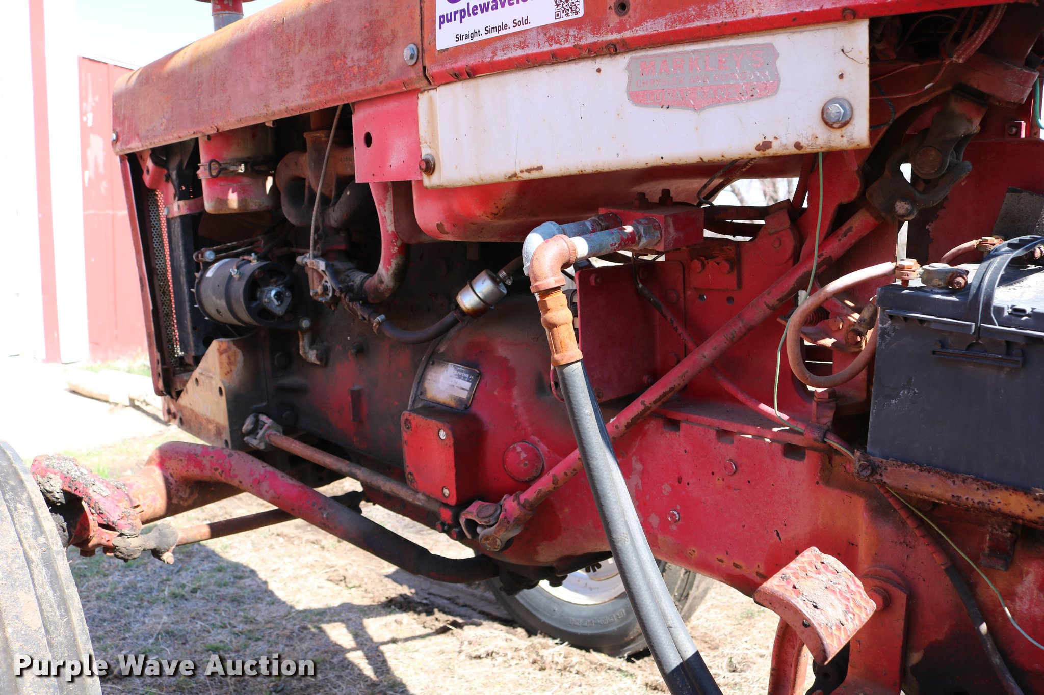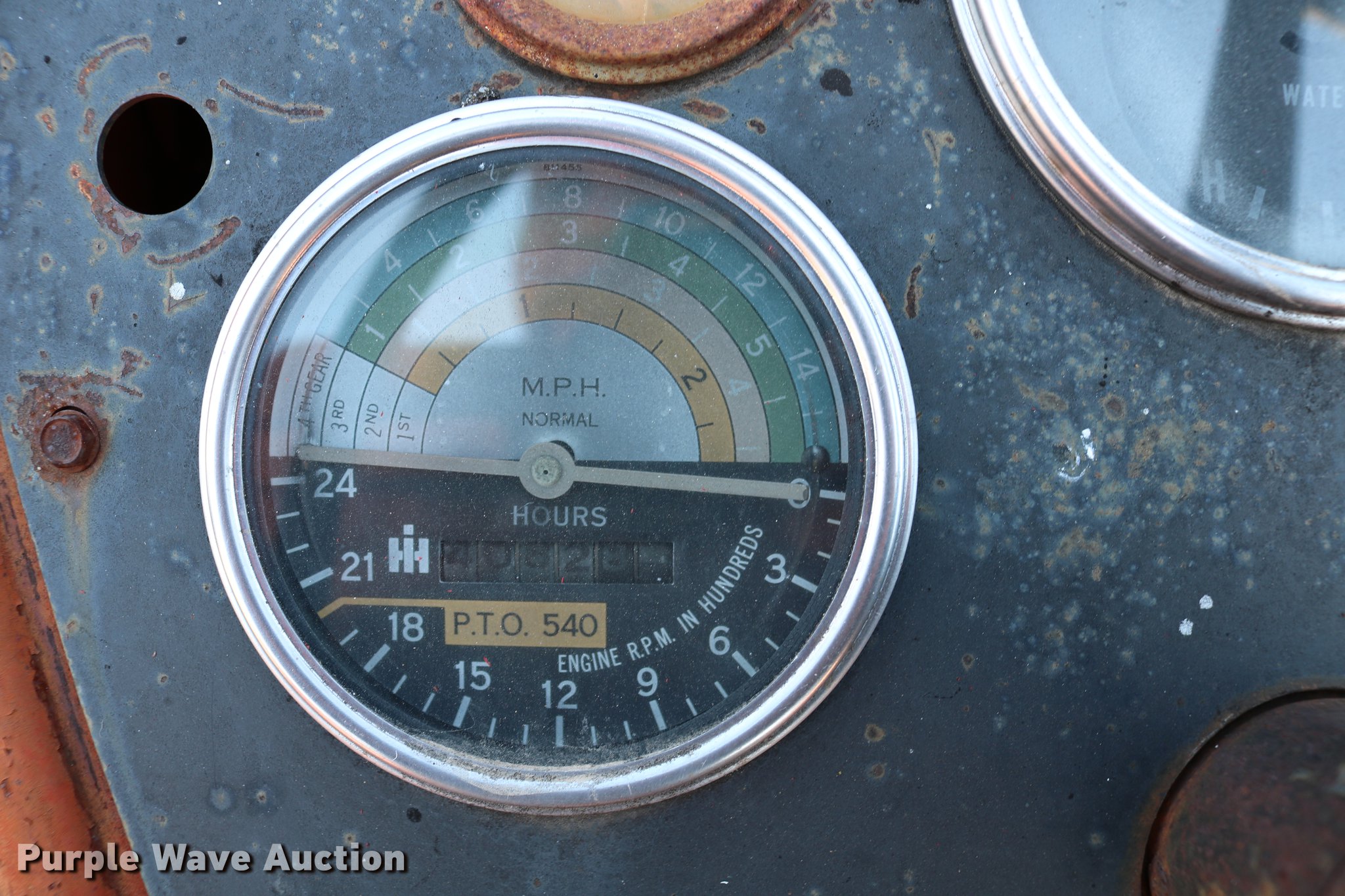 Purple Wave is selling a used Tractor in Kansas. This item is a International 404 tractor with the following: 4,083 hours on meter, International four cylinder gas engine, Manual transmission, 4F-1R gears, Suspension seat, Three point, 540 PTO, Rear hydraulic remote set, 72" wheelbase, 6.50-16 front tires, 13.6-28 rear tires, Owners manual, Non-operational engine, Rear tire leaks air, Wheel rusted out around valve stem, Non-operational unit, Unit must be hauled, Serial 71317J