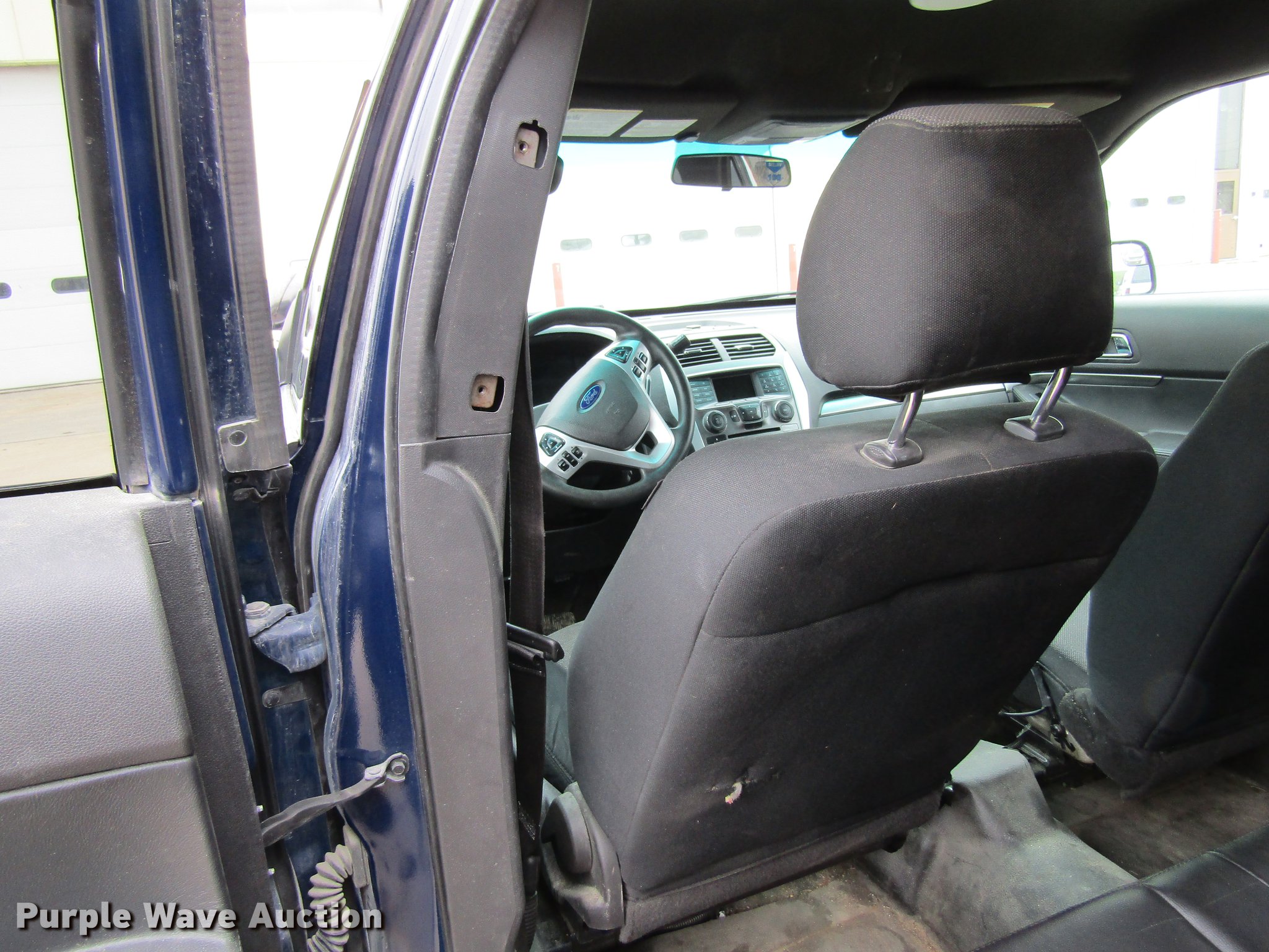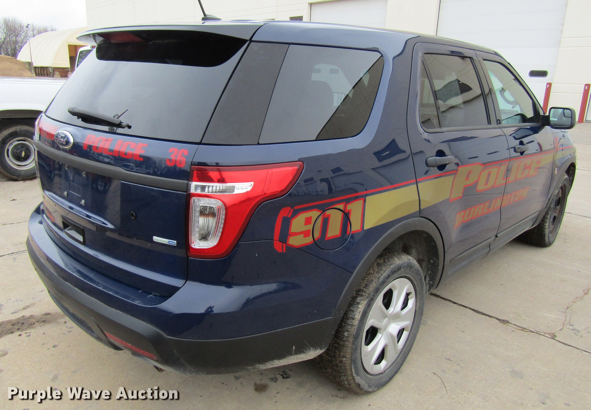 Purple Wave is selling a used Passenger Vehicle in Iowa. This item is a 2013 Ford Explorer Police Interceptor SUV with the following: 143,994 miles on odometer, 3.7L V6 DOHC 24V gas engine, Automatic transmission, AC and heat, Tilt, Cruise, AM/FM/CD, Power windows, locks, mirrors, and seat, Cloth interior, Spotlight, Rear tow hook, 245/55R18 tires, Passenger seat headrest missing, Center console missing