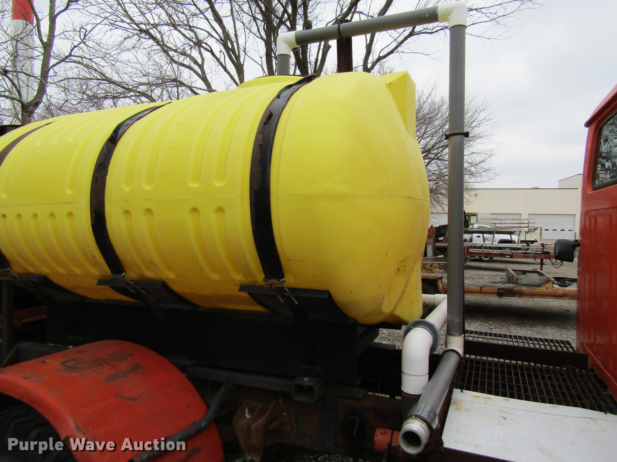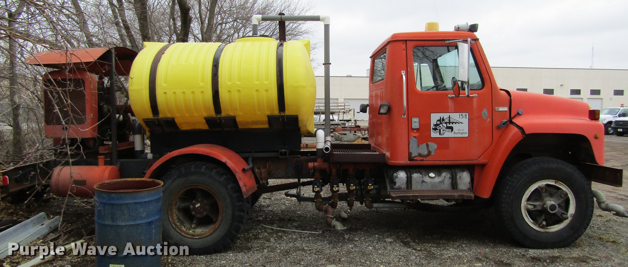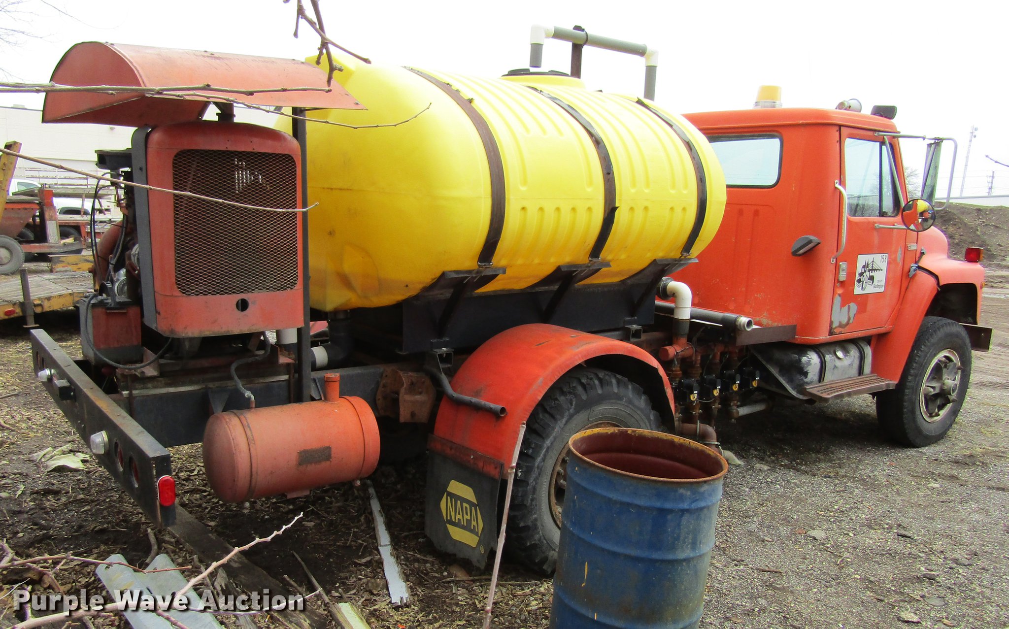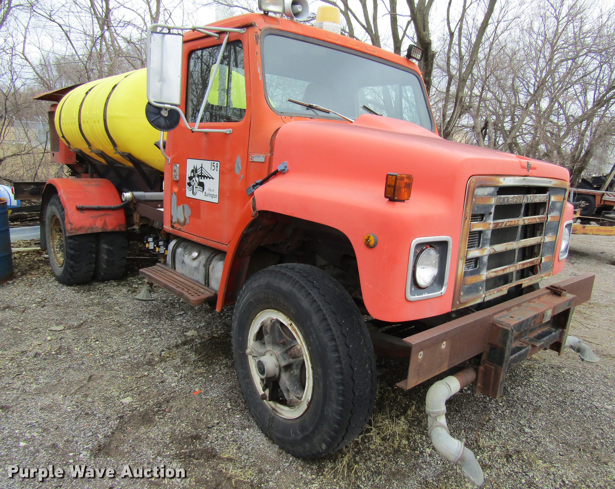 Purple Wave is selling a used Tank Truck or Water Truck in Iowa. This item is a 1981 International 1854 tank truck with the following: 6,274 miles on odometer, International 9.0L L6 diesel engine, Automatic transmission, Single axle, Heat, Suspension seat, Rear work lights, In-cab controls, Ether start, Front and side spray bars, 1,000 gallon tank, Top fill, Rear drain, Independent water outlet solenoids, Single fuel tank, Spring suspension, Hydraulic brakes, 10-20 tires