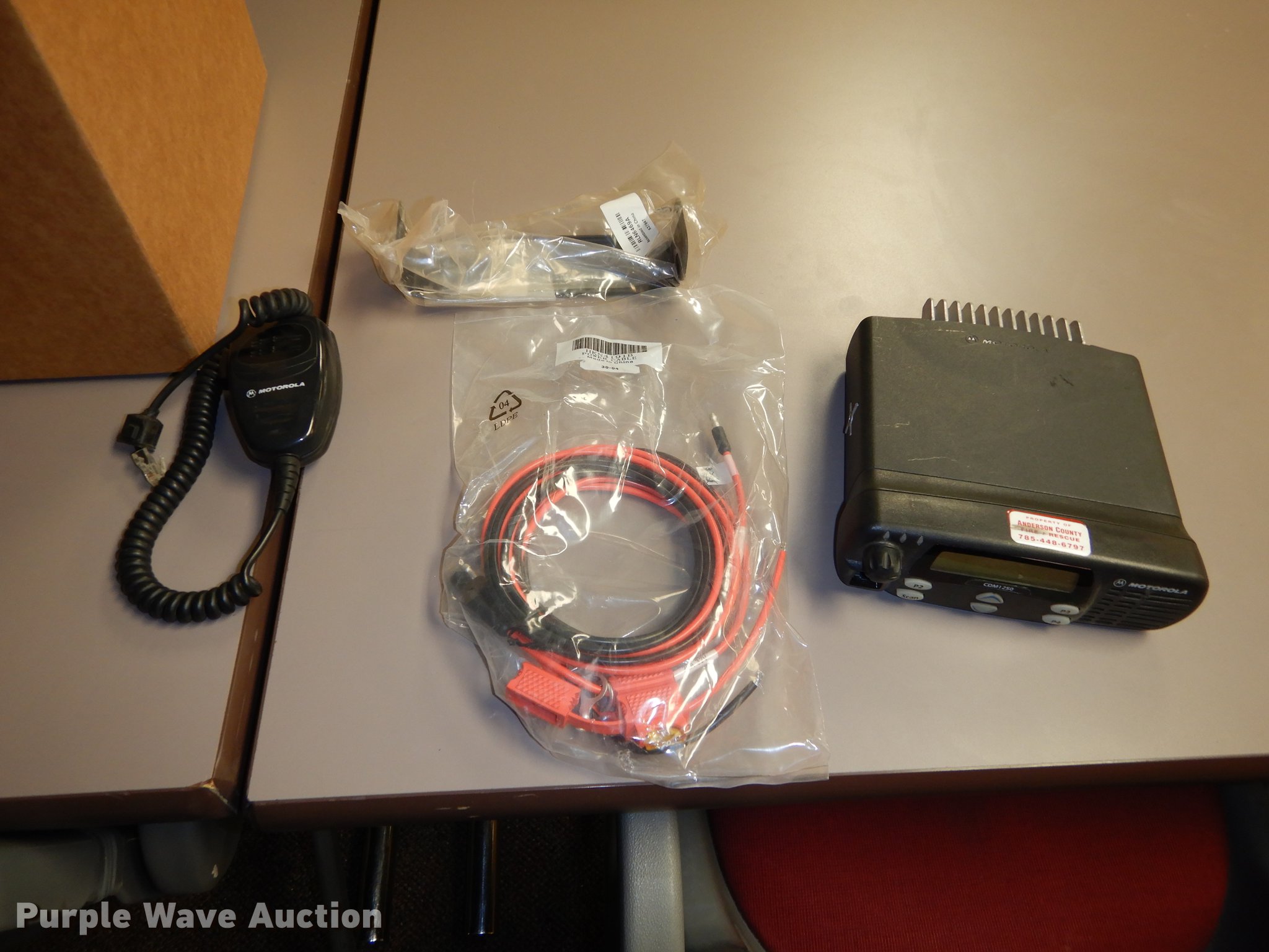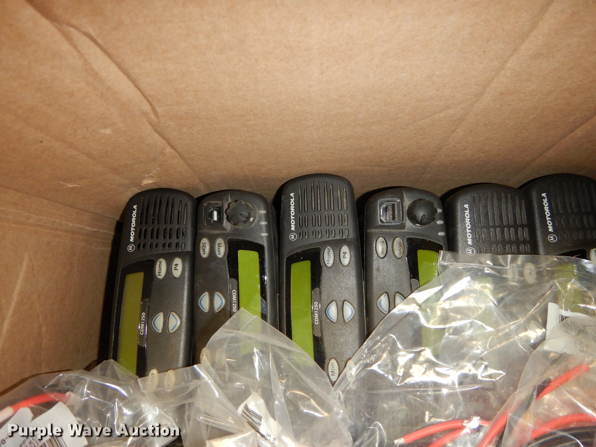 Purple Wave is selling a used Electronics in Kansas. This item is a (18) Motorola VHF CDM1250 radios with the following: 150 to 159 spread capable, Mounting brackets, Microphones, Power cables