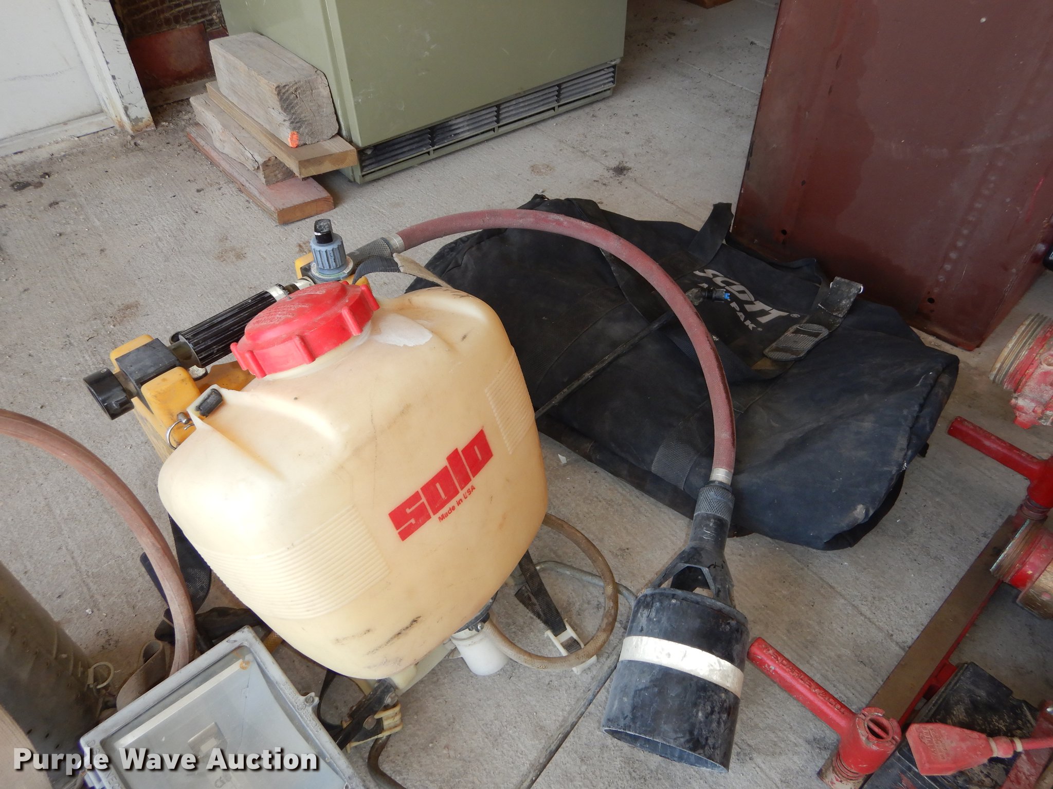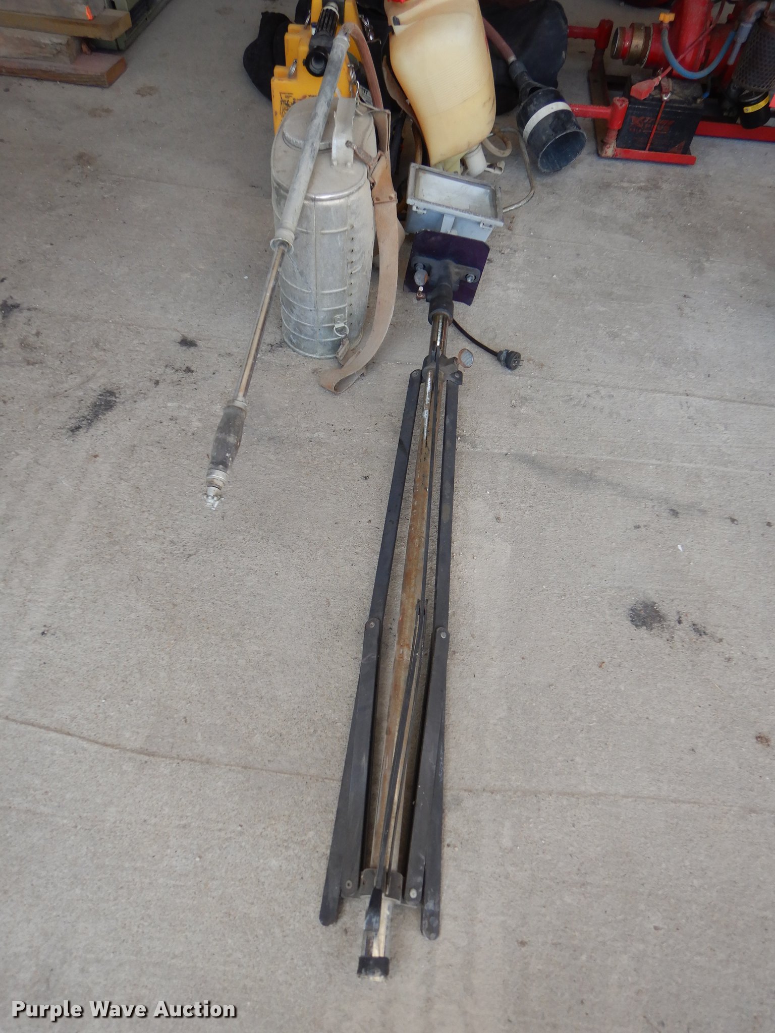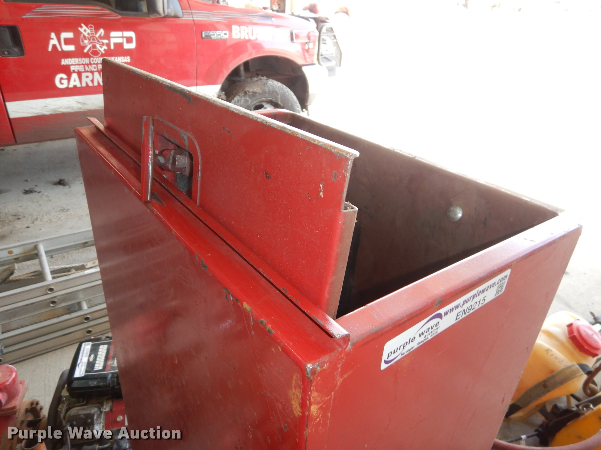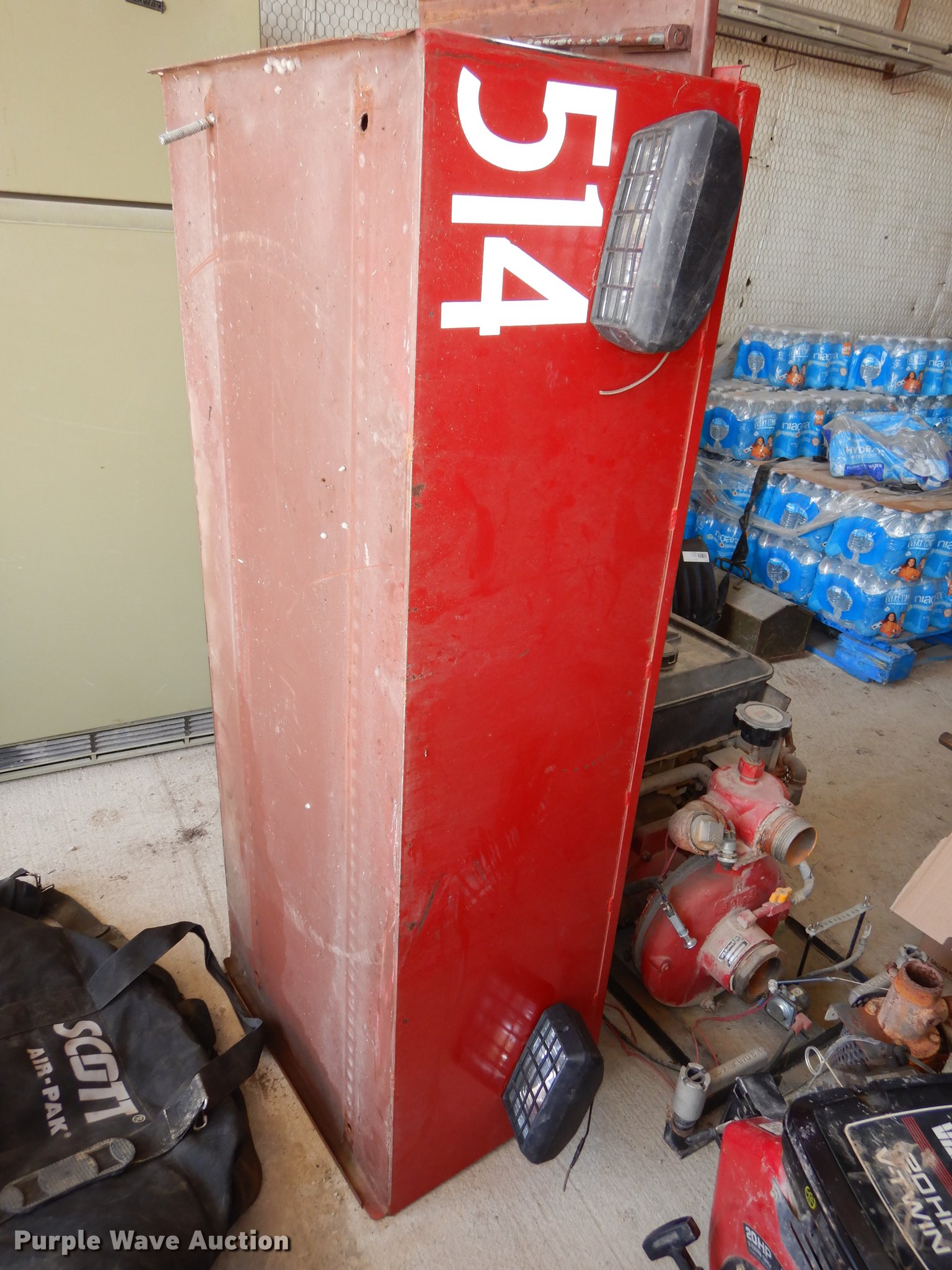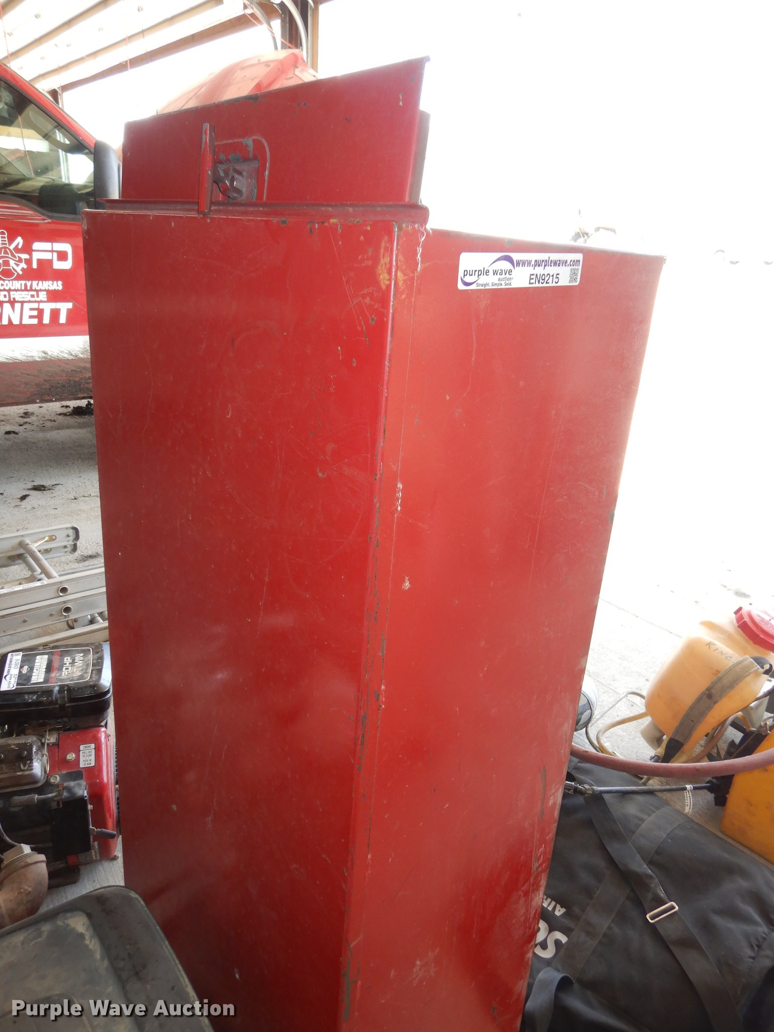 Purple Wave is selling a used Tools in Kansas. This item is a Tools with the following: Toolbox, 52" x 21" x 14", Lights, (2) padded Scott air pak bags, (3) spray canisters, Tripod spotlight