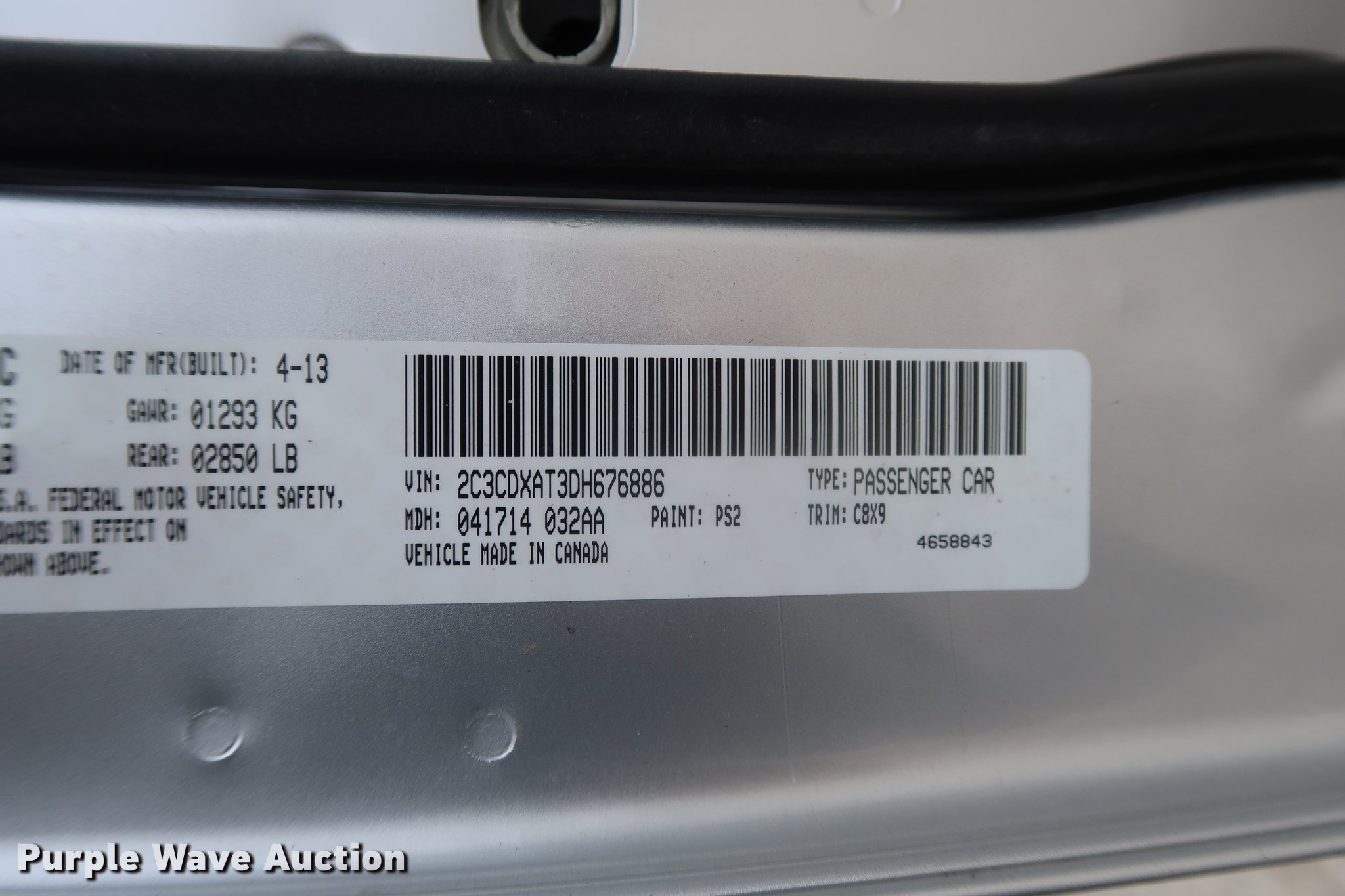 Purple Wave is selling a used Passenger Vehicle in Missouri. This item is a 2013 Dodge Charger Police with the following: 115,750 miles on odometer, 5.7L V8 OHV 16V gas engine, Automatic transmission, AC and heat, Tilt, Cruise, AM/FM/CD, Power windows, locks, and mirrors, Cloth interior, 225/60R18 tires