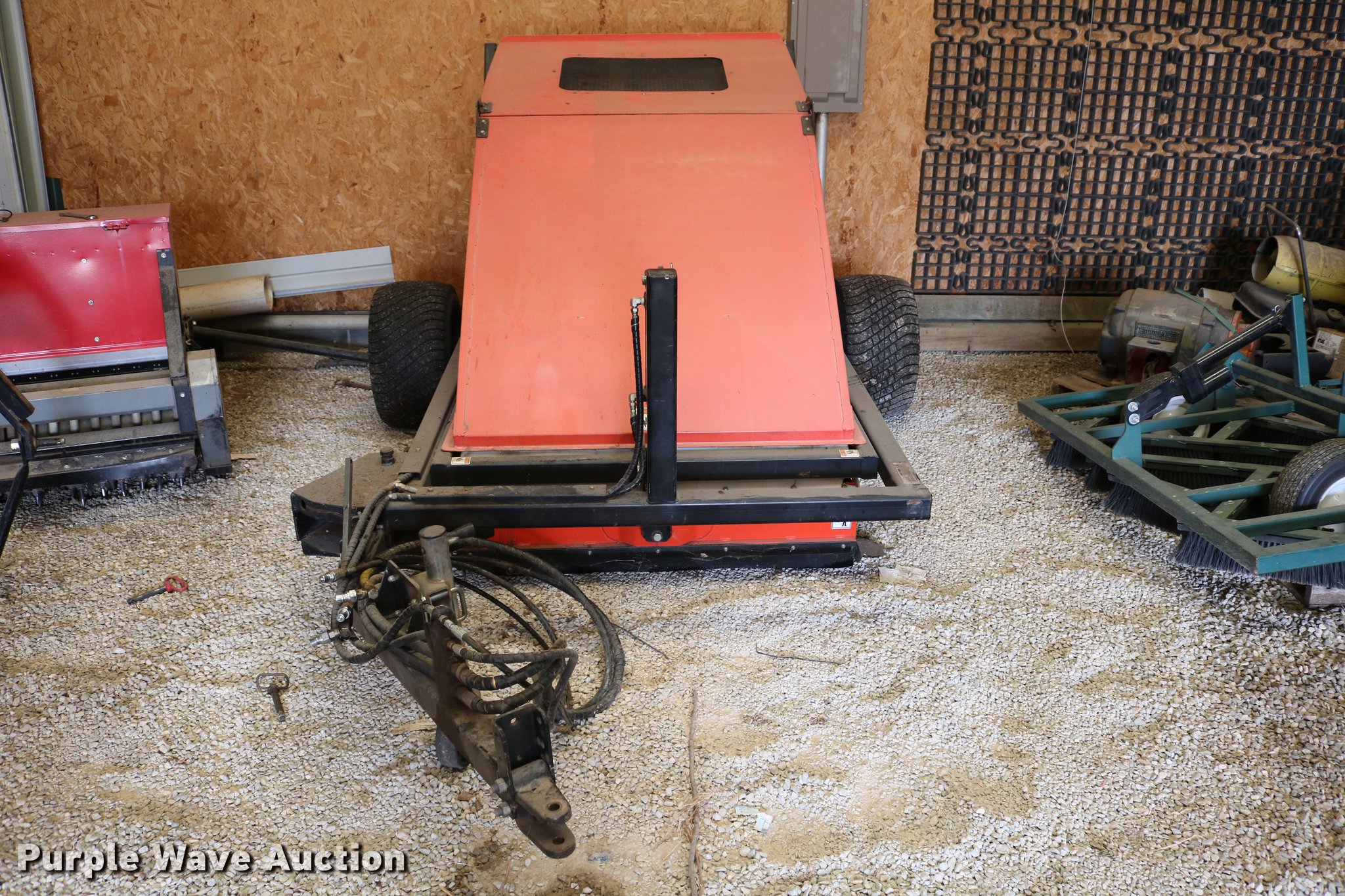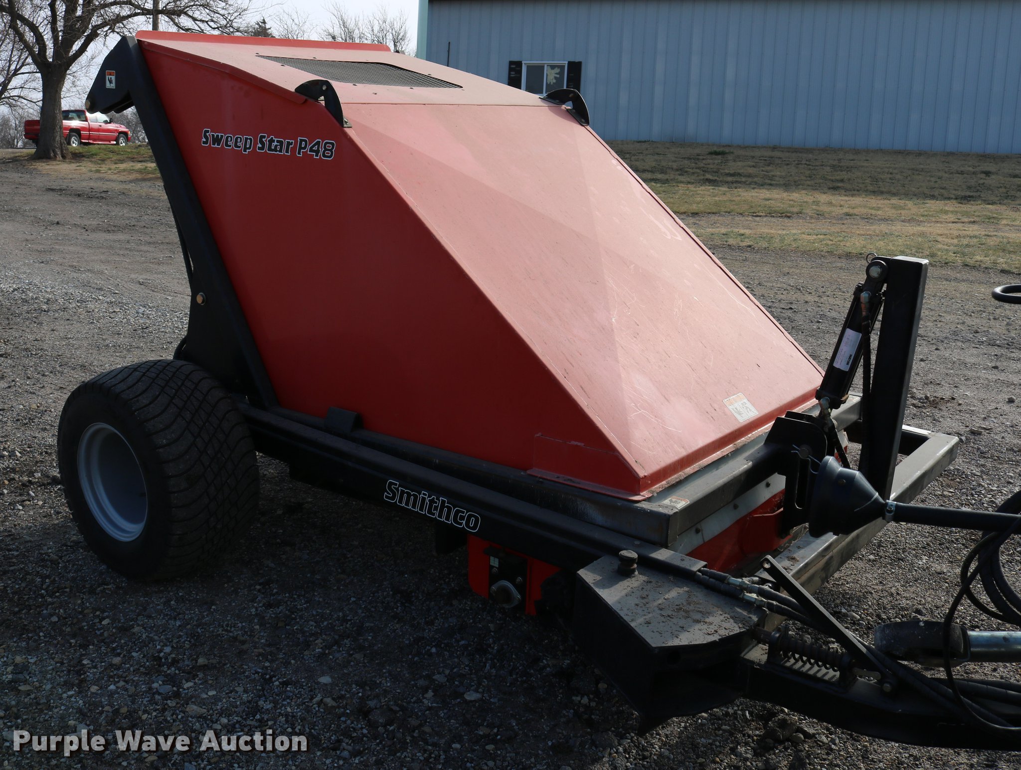 Purple Wave is selling a used Sweeper in Kansas. This item is a Smithco Sweep Star P48 sweeper with the following: Model 7-800-B, 144"L x 87"W x 60"H, Hydraulic driven brush, Hydraulic lift and dump, Single leg landing gear, Clevis hitch, 24x13.00-12 tires, Serial 7931