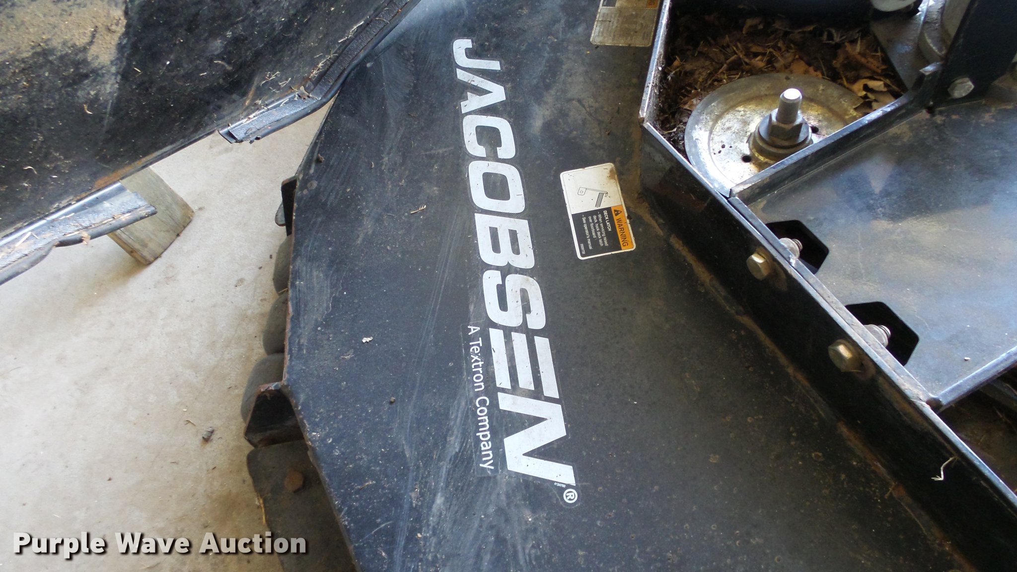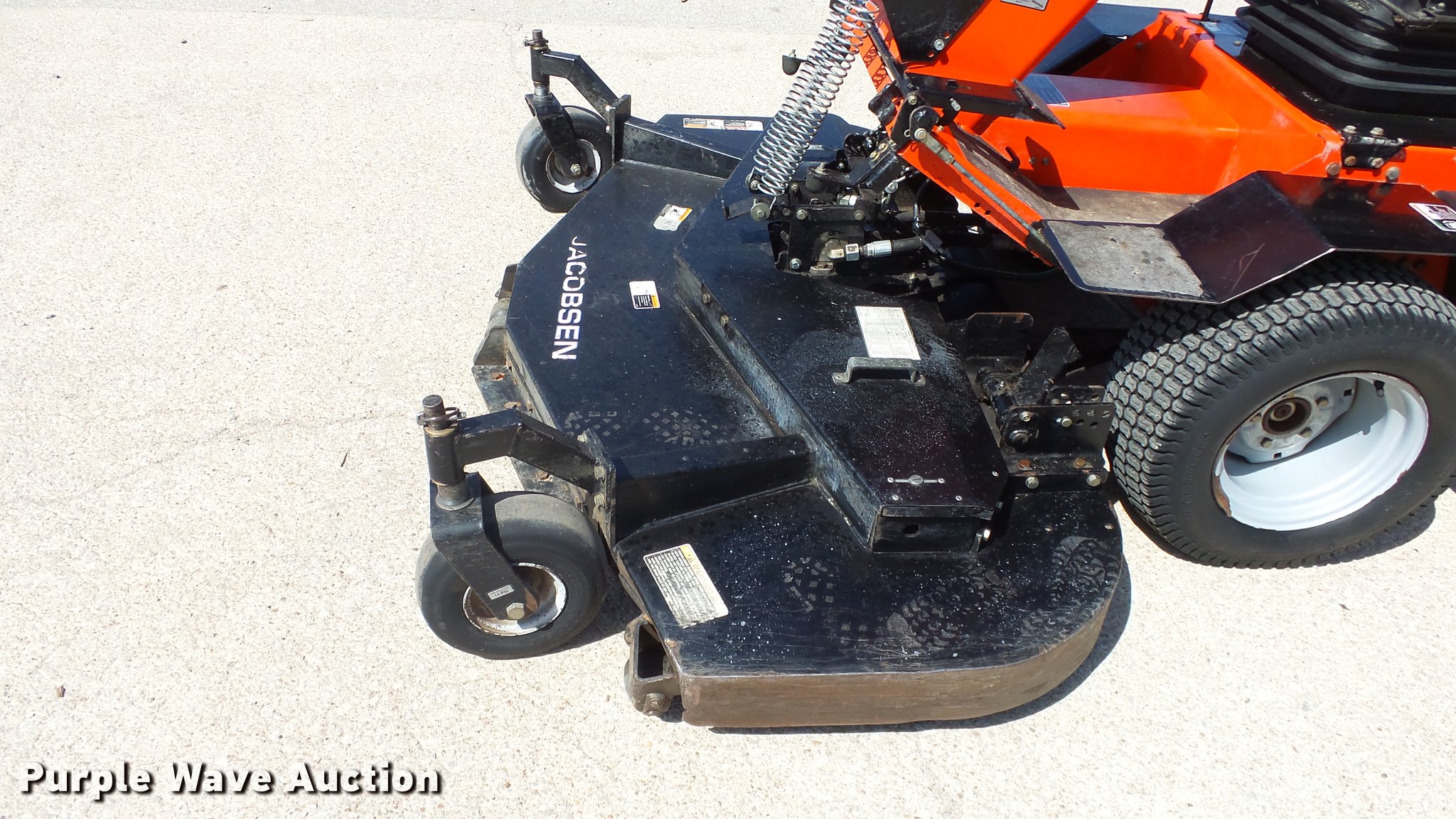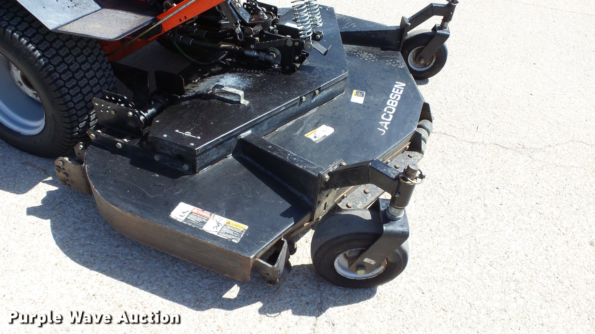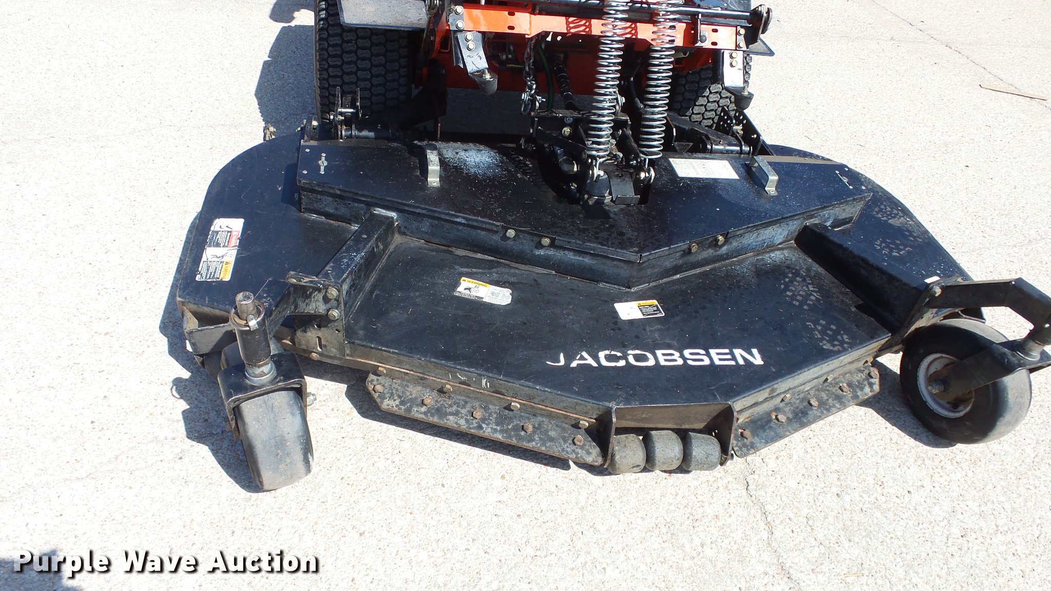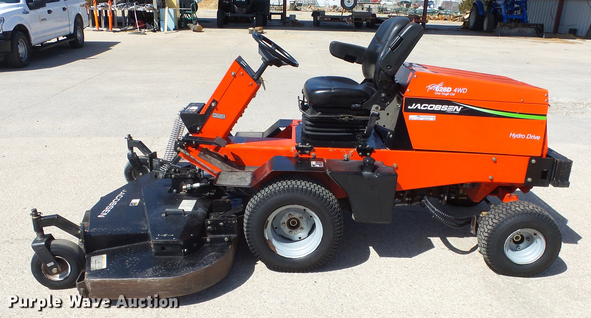Purple Wave is selling a used Commercial Turf Mower in Kansas. This item is a Jacobsen 628D ZTR lawn mower with the following: 2,519 hours on meter, 72" cut, Kubota three cylinder diesel engine, Hydrostatic transmission, Four wheel drive, 23x10.50-12 tires, Additional deck, Parts only, Approx. 30 24" mower blades, Some unused, Serial 94671402031