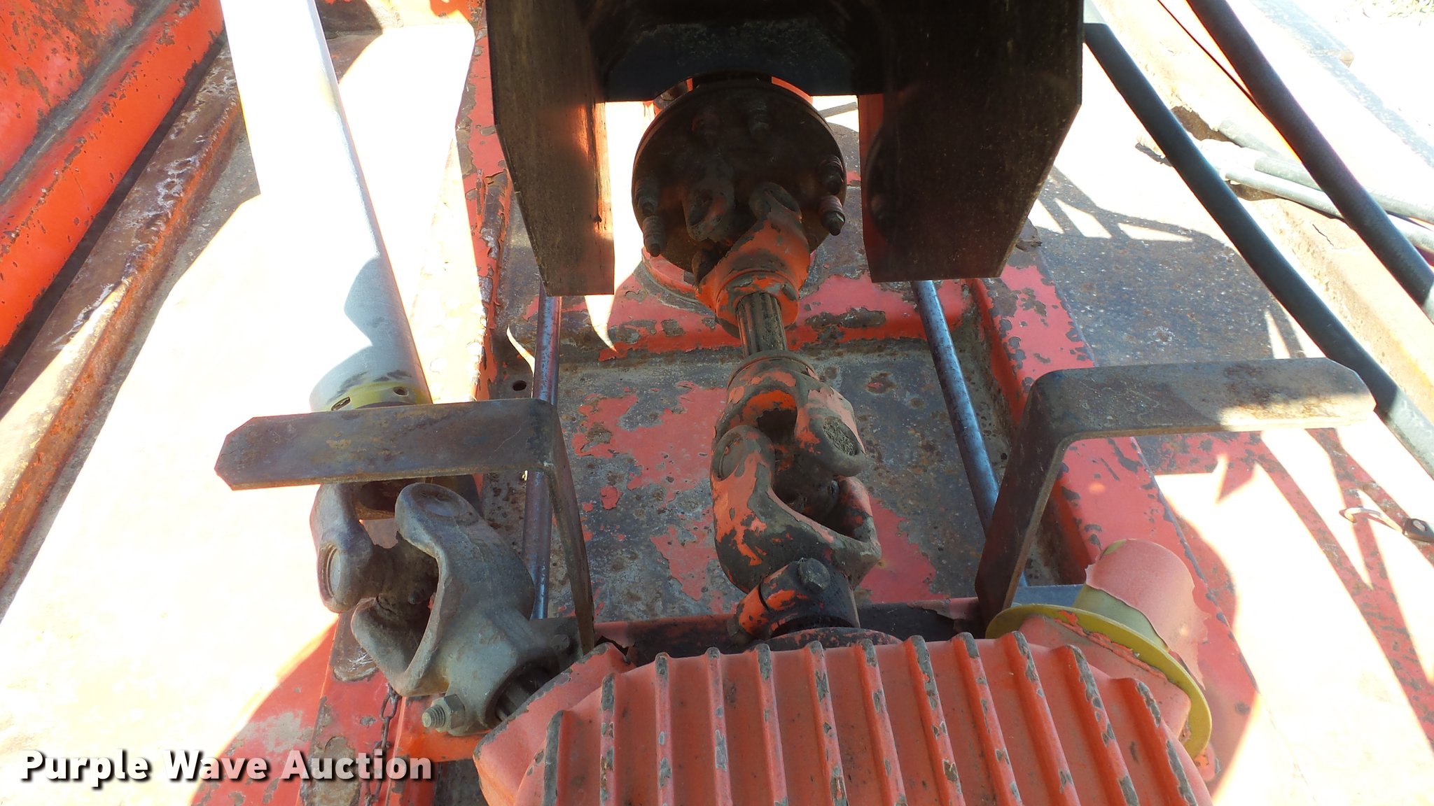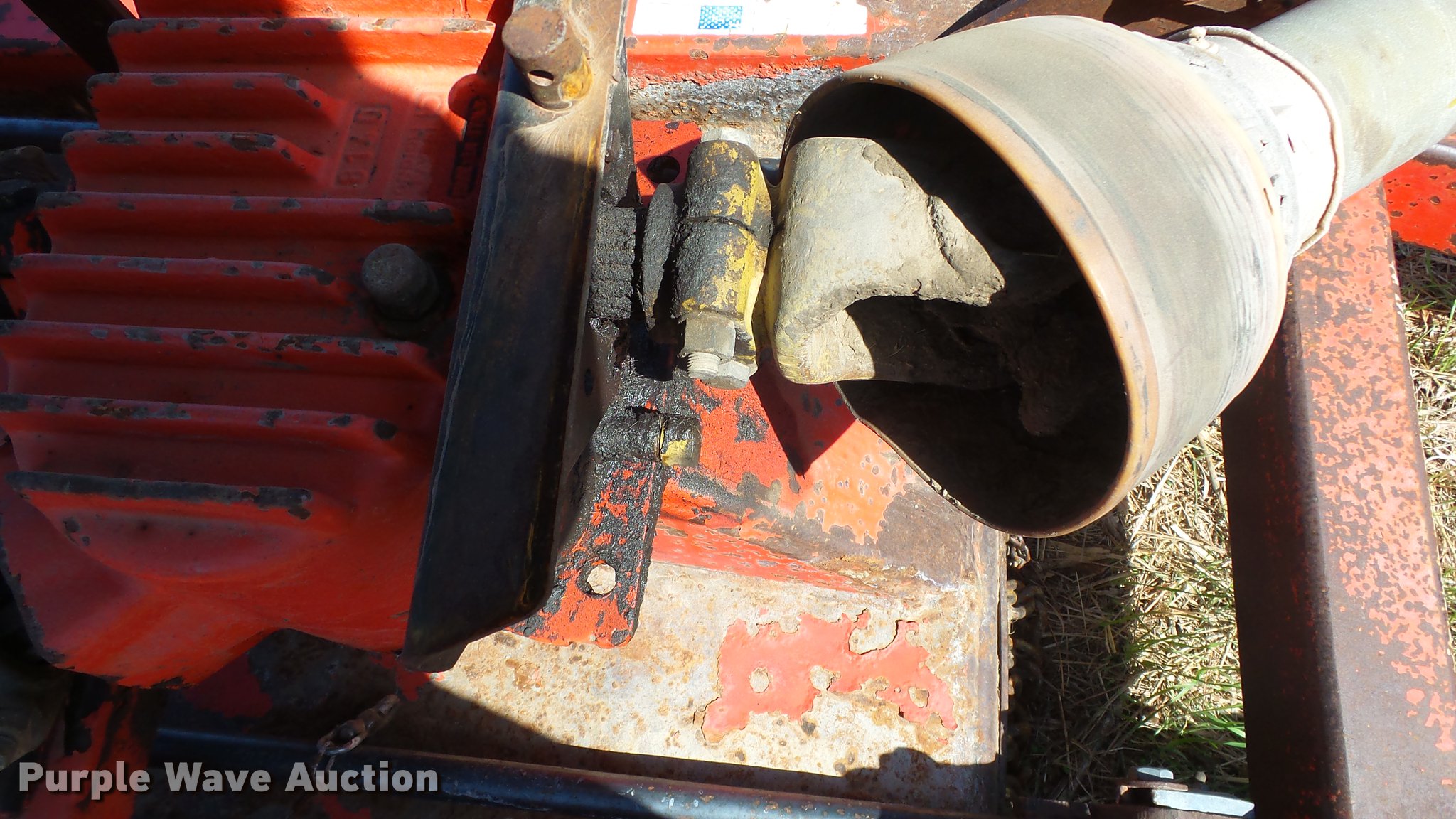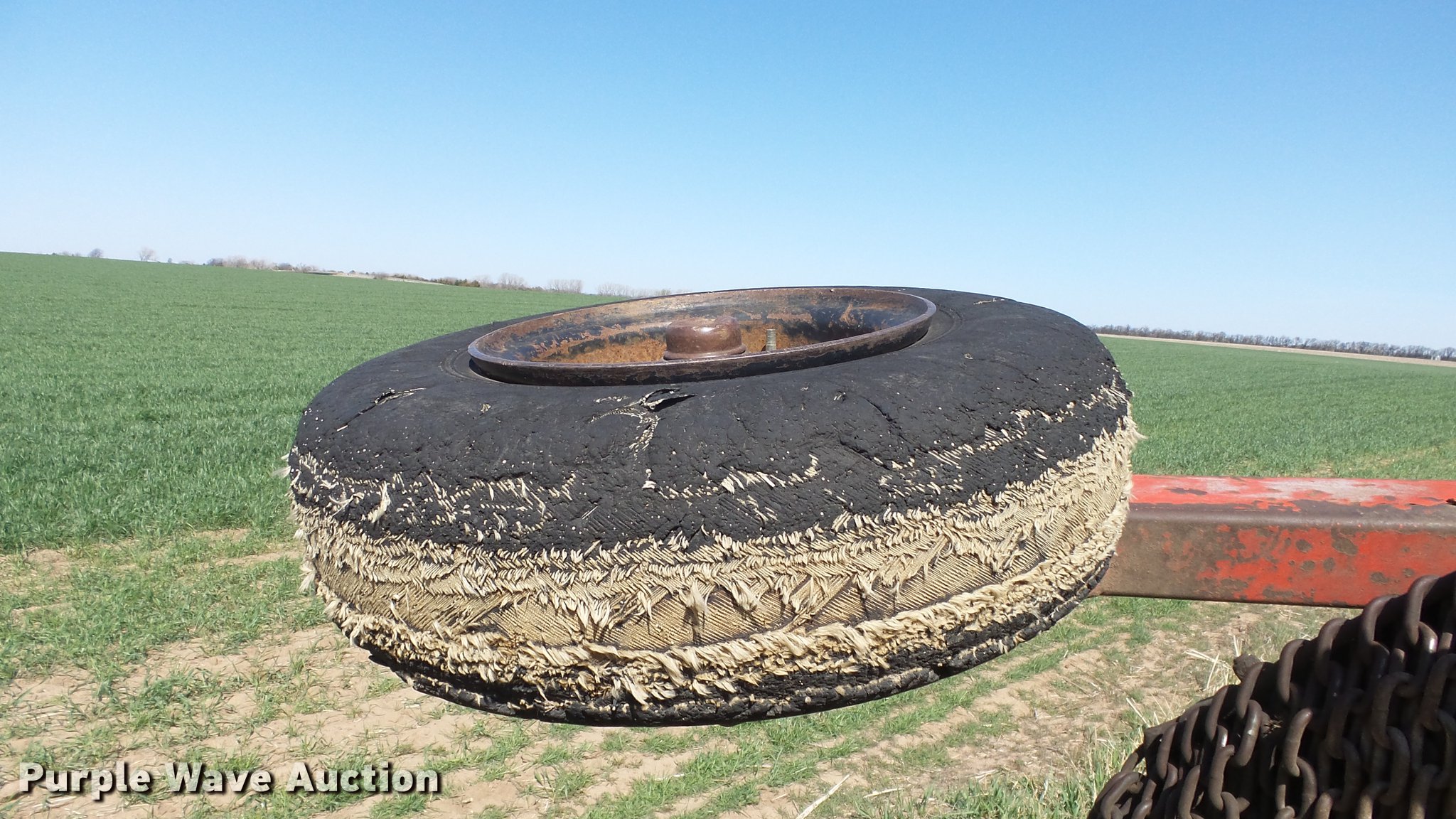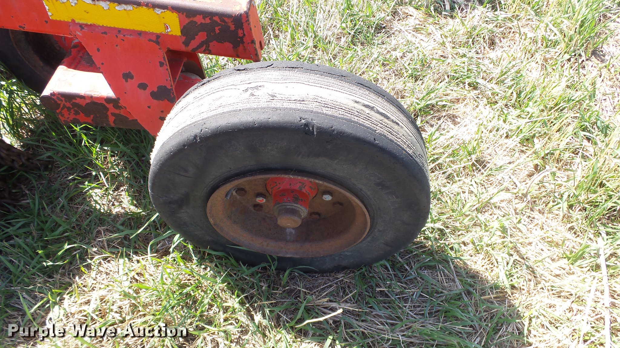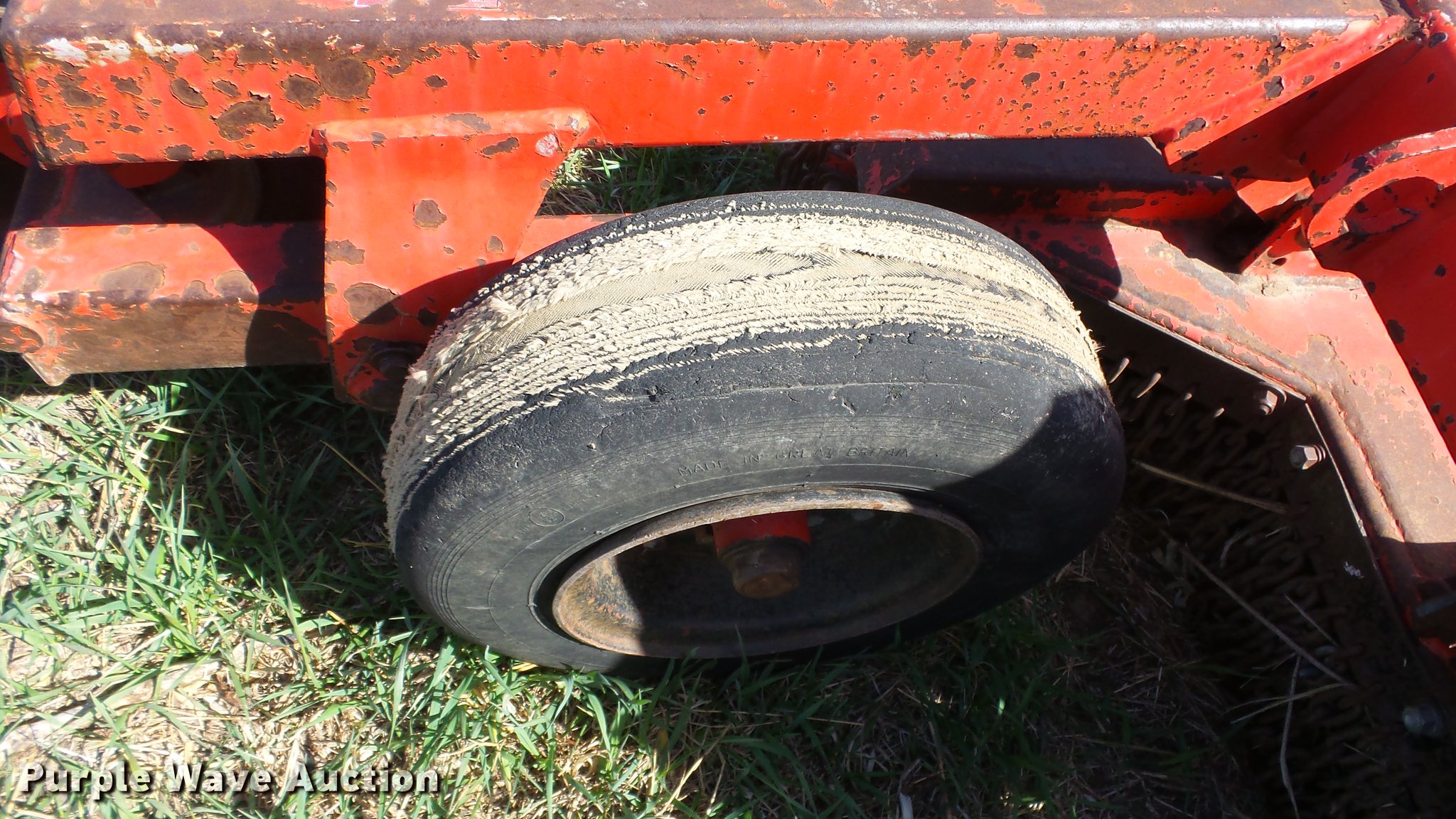 Purple Wave is selling a used Mower, Cutter, Shredder in Kansas. This item is a Schulte XH1000 rotary mower with the following: 10'W, Chain deflectors, Hydraulic lift and fold, 540 PTO, Pin hitch, Tires damaged