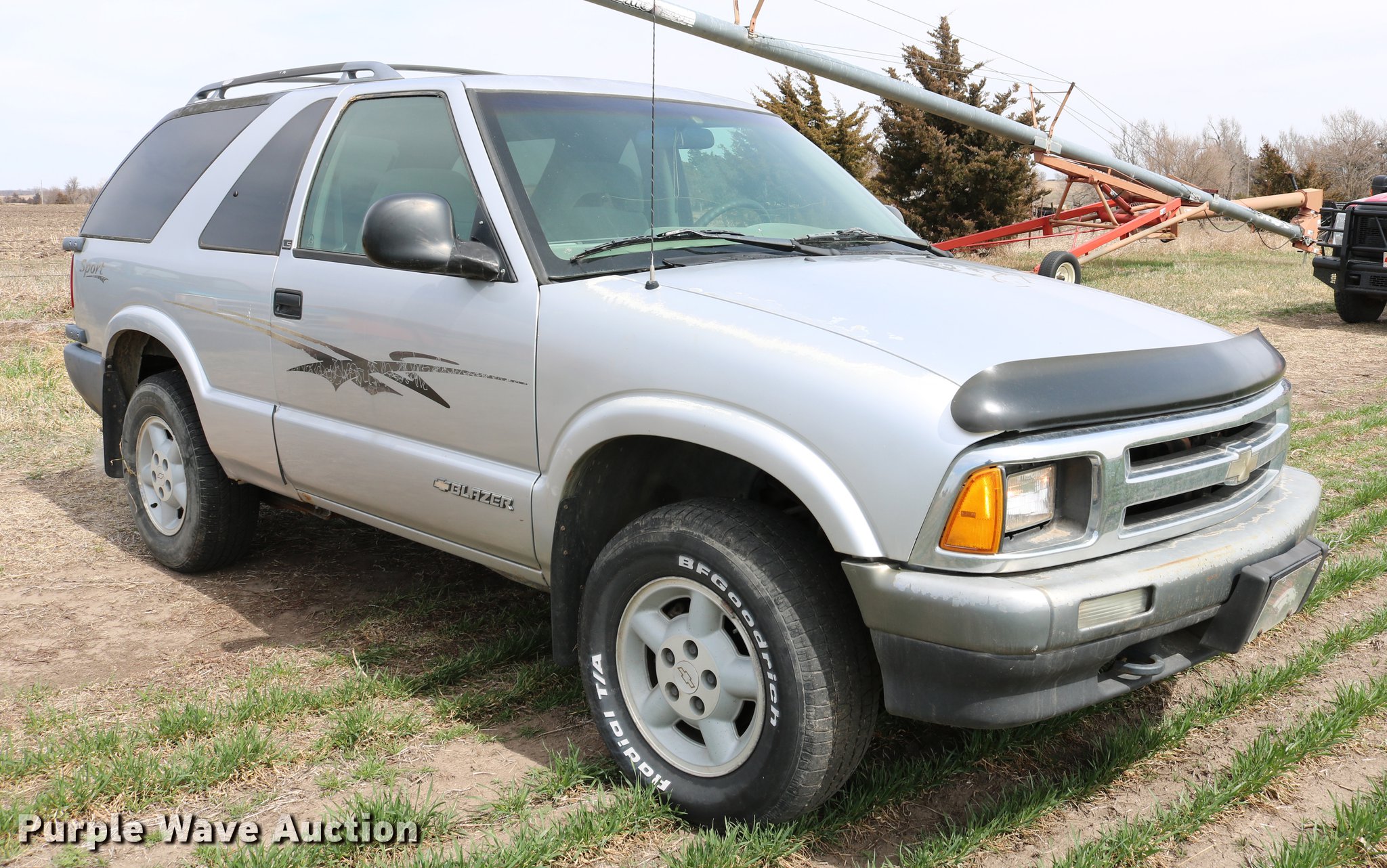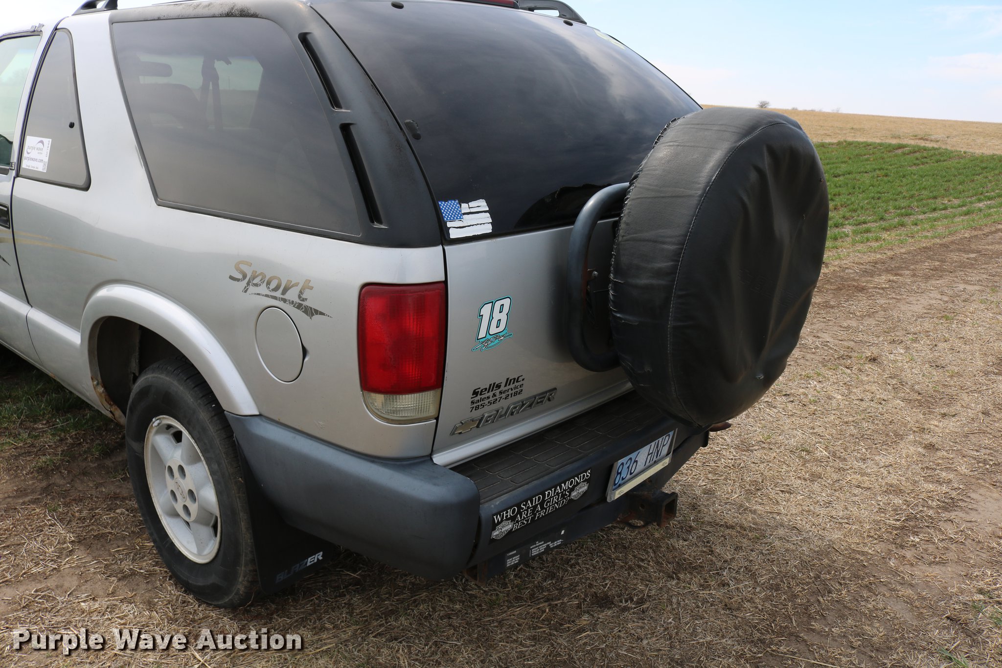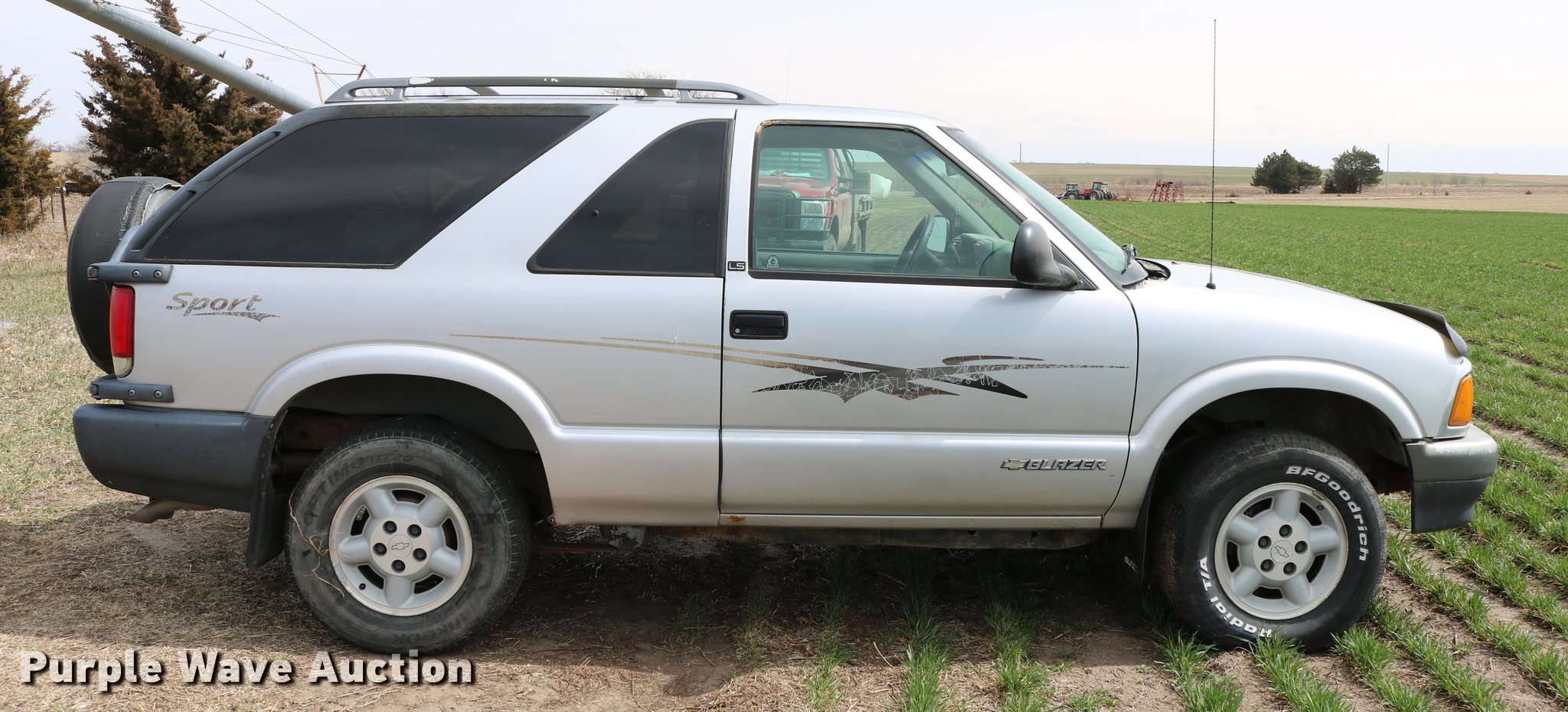 Purple Wave is selling a used Passenger Vehicle in Kansas. This item is a 1996 Chevrolet Blazer LS SUV with the following: 144,336 miles on odometer, 4.3L V6 OHV 12V gas engine, Automatic transmission, Four wheel drive, AC and heat, Tilt, Cruise, AM/FM/CD, Power windows, locks, mirrors, and seat, Cloth interior, Front tow hooks, Receiver hitch, 235/70R15 tires, Cracked windshield, Hail damage, Mirrors broken, Passenger door panel pieces missing
