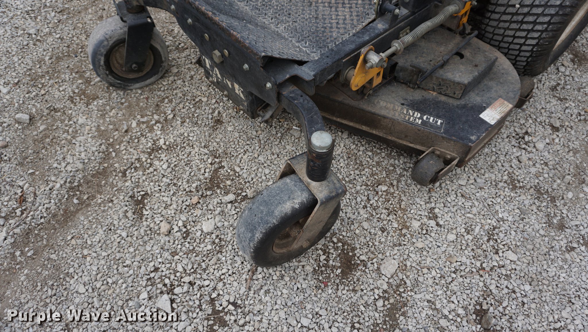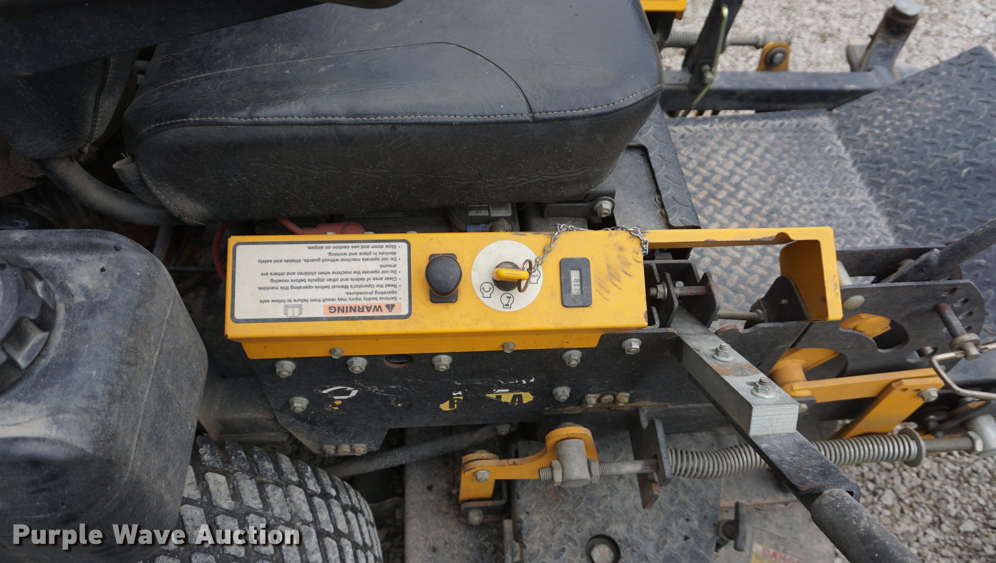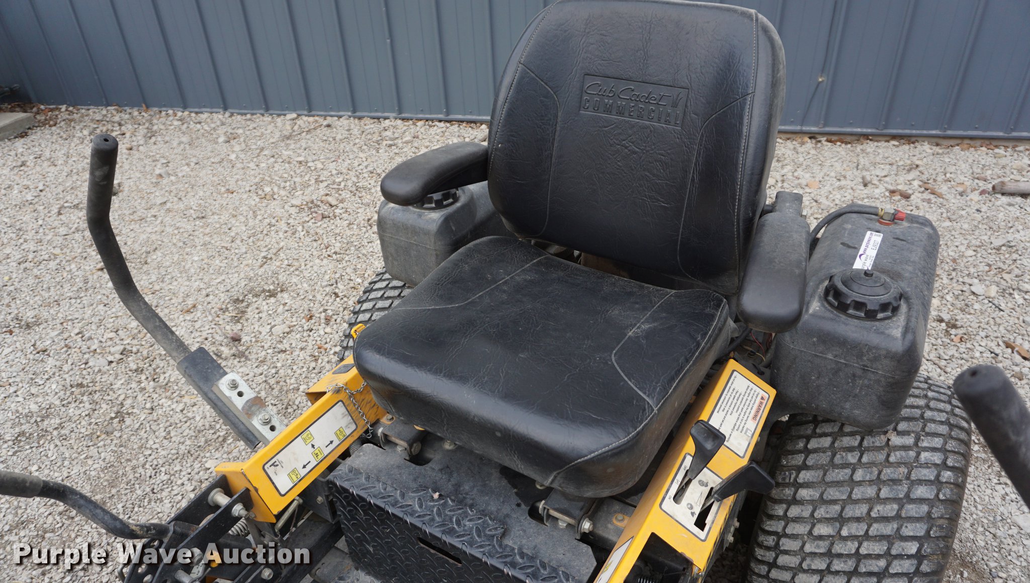 Purple Wave is selling a used Commercial Turf Mower in Kansas. This item is a Cub Cadet ZTR lawn mower with the following: 837 hours on meter, Model 53AB5DBW150, 54"W deck, Kawasaki gas engine, 23 HP, 13 x 5.00-6 front tires, 24 x 12.00-12 rear tires, Serial 1C122Z80020