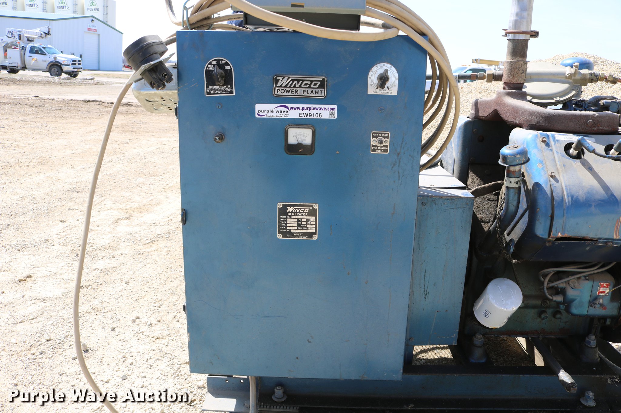 Purple Wave is selling a used Generator Set in Kansas. This item is a Winco CNG standby generator with the following: Winco PS20WH-3R/CNG generator, Wisconsin VG4D four cylinder propane engine, Serial 5801975, 87 amp, 20,000 watt, Single phase, Control panel, Electric start, Skid mounted, No battery, No propane bottle, Serial 90738D8