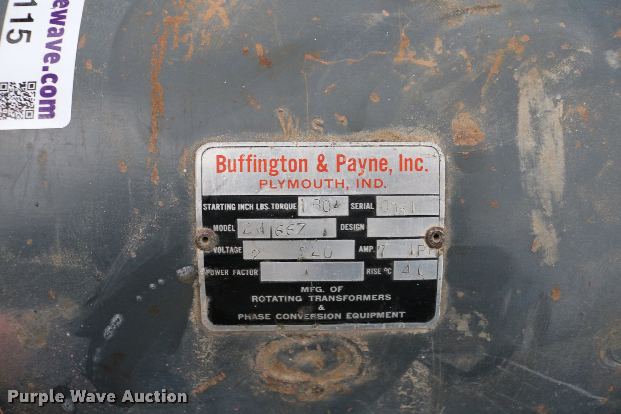 Purple Wave is selling a used Building Materials in Kansas. This item is a Buffington & Payne rotary phase converter/rotoverter with the following: Model 2A166Z, 220 volt, 40 HP, Serial 0061