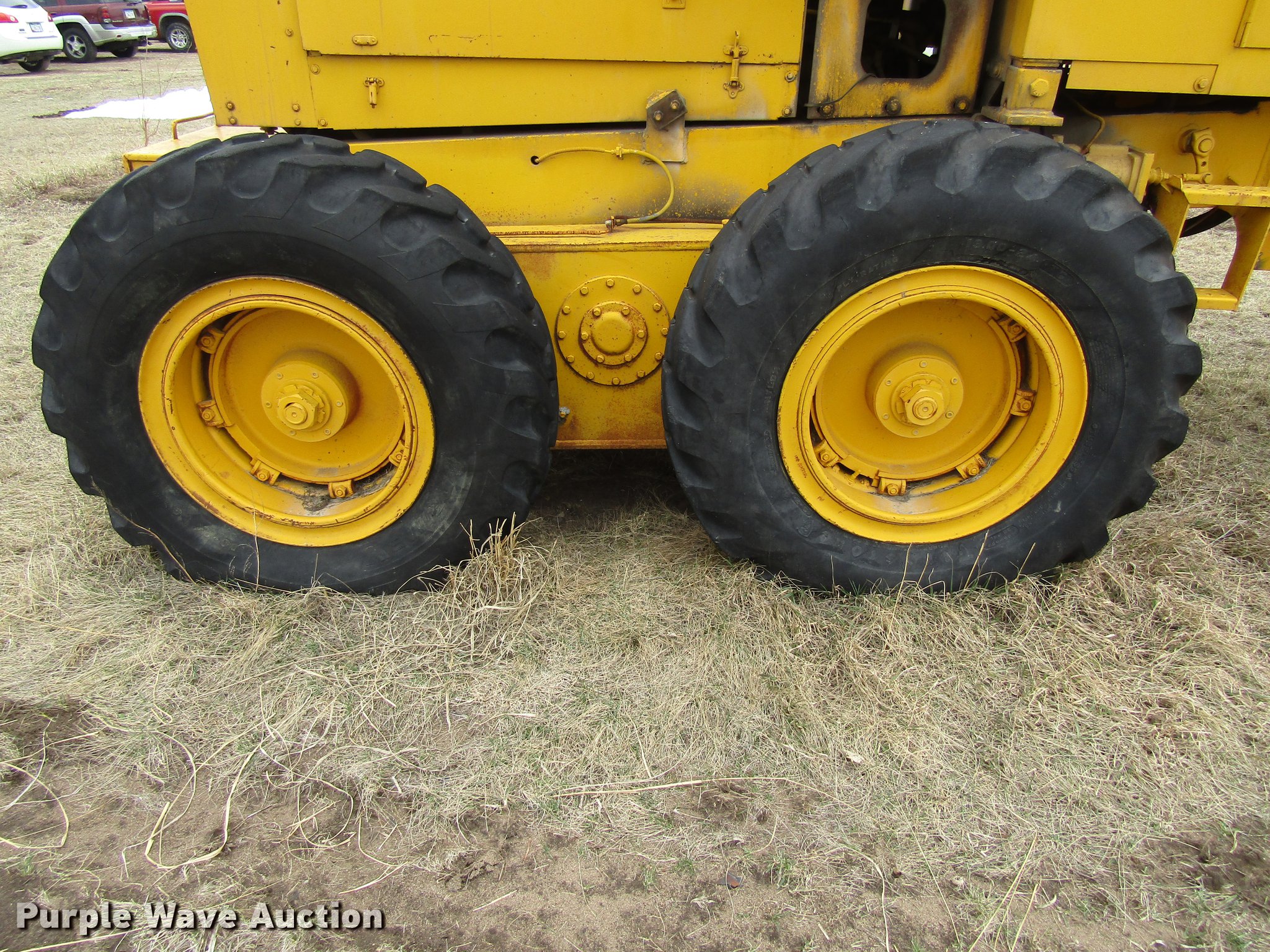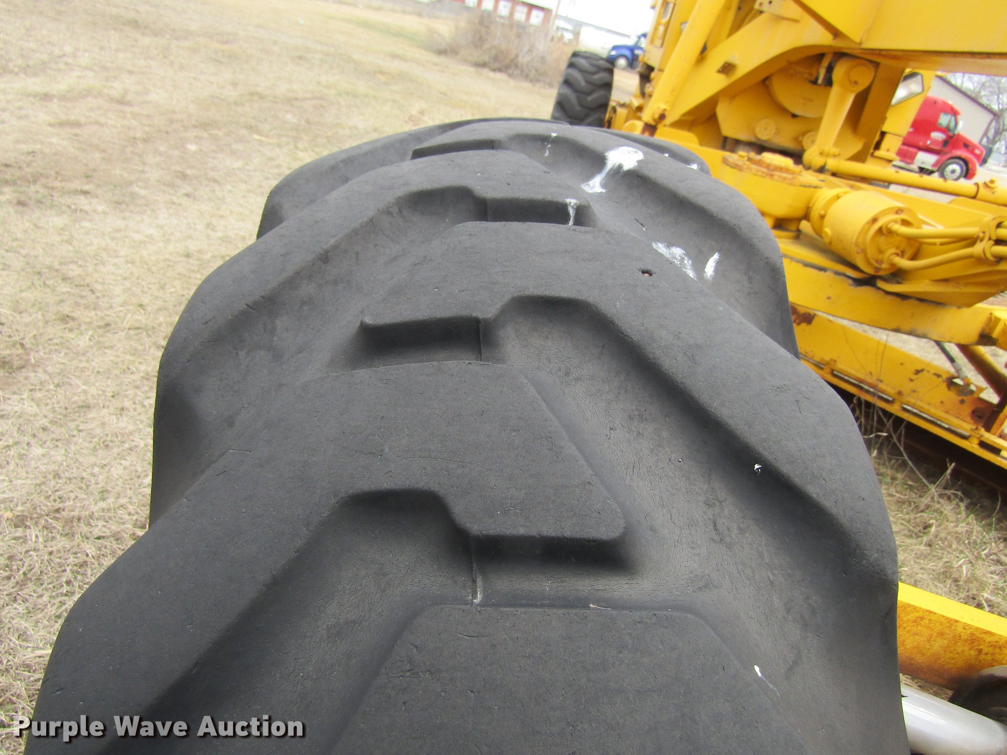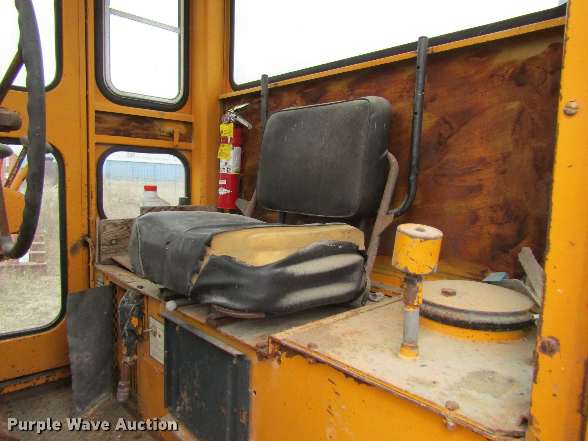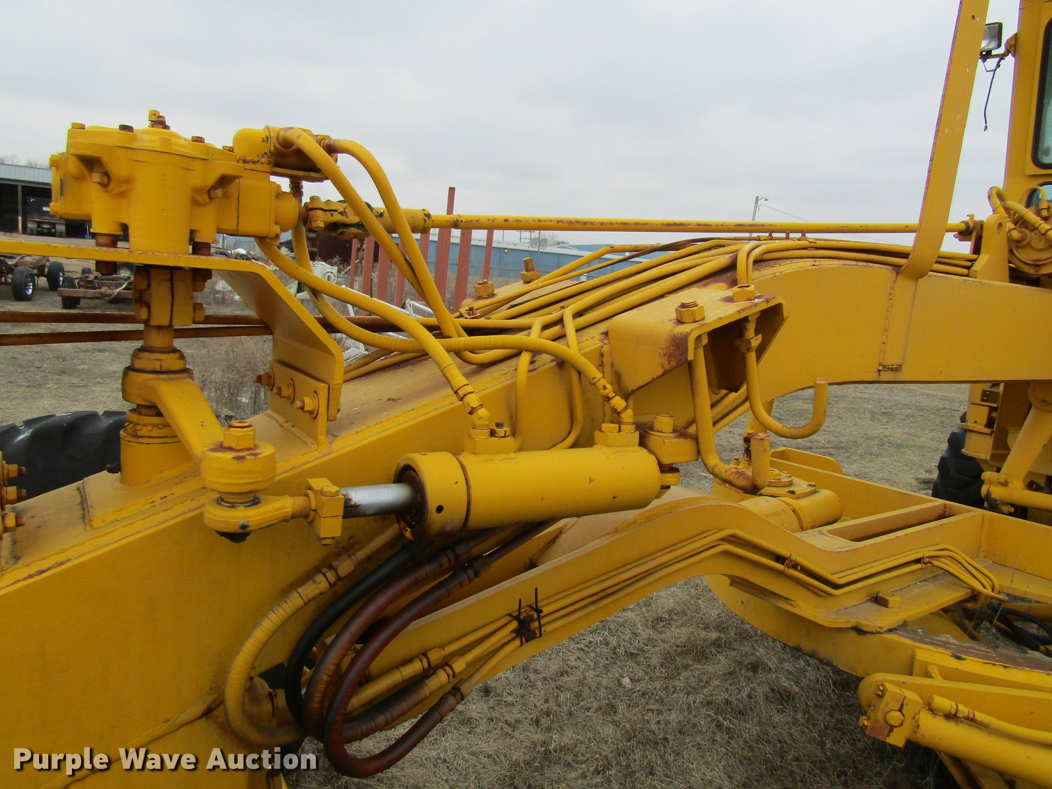 Purple Wave is selling a used Motor Grader in Iowa. This item is a 1973 Galion T500A rigid frame motor grader with the following: 4,184 hours on meter, International six cylinder turbo diesel engine, Powershift transmission, 2F-2R gears, Enclosed cab, Heat, 10 hydraulic control valves, Front and rear work lights, 12'W moldboard, Tip control, Side shift, Front-mounted push block, 13.00-24 tires, Tilt and steering cylinders need to be repacked, Non-operational unit, Serial IC-05095
