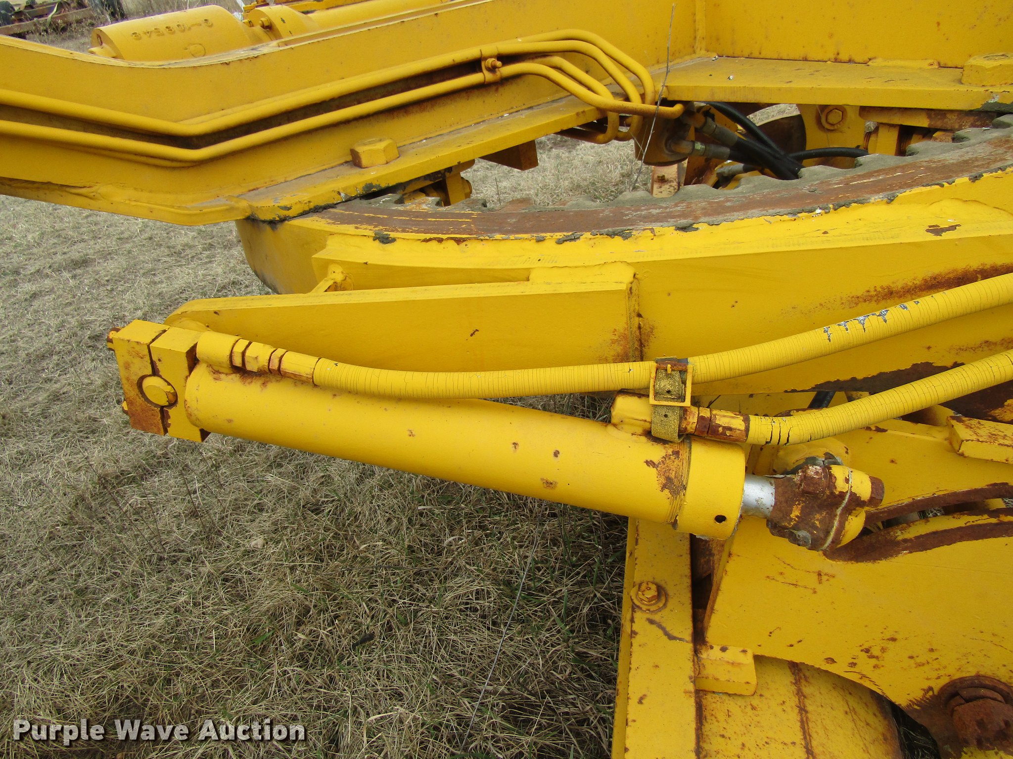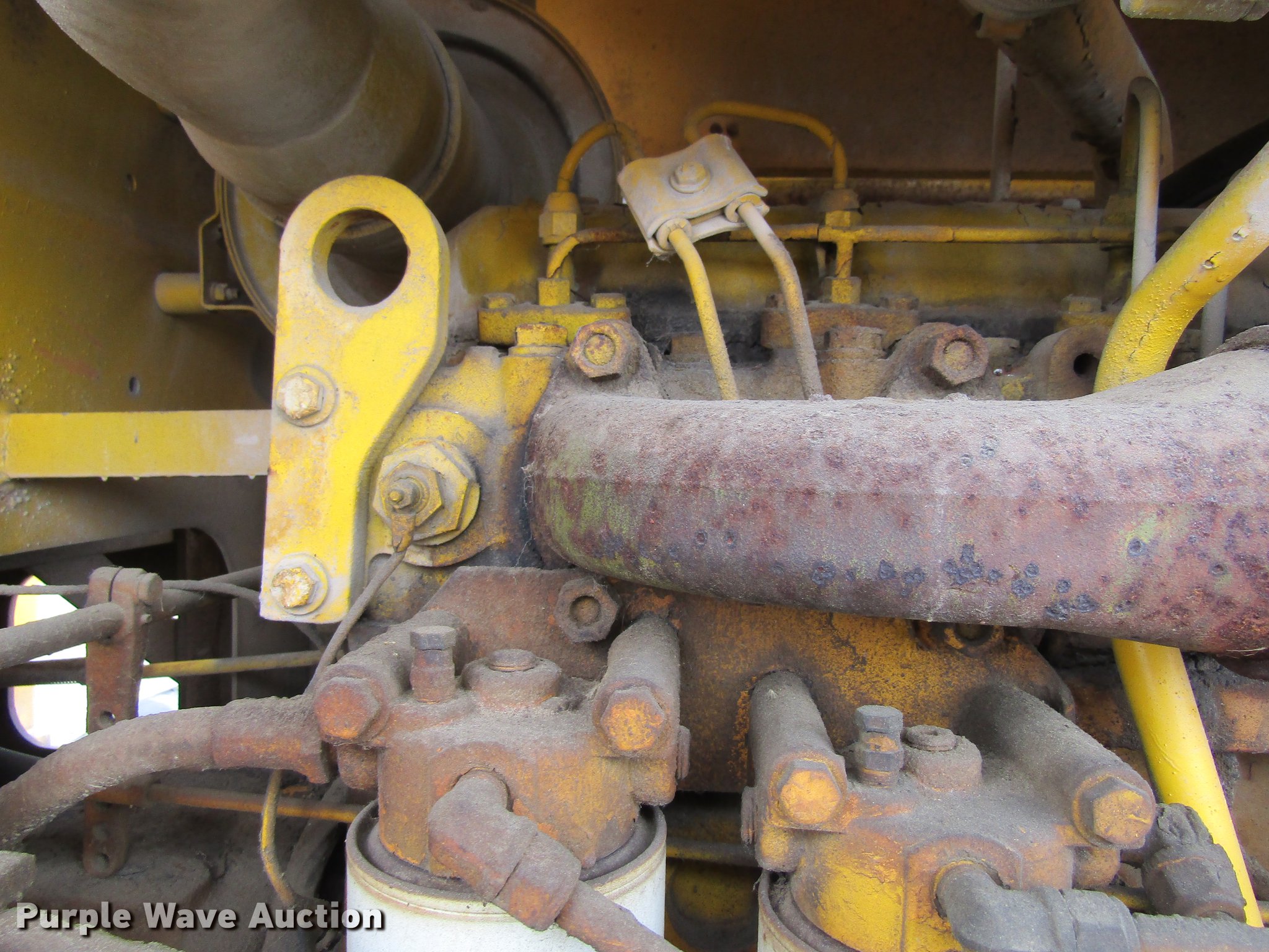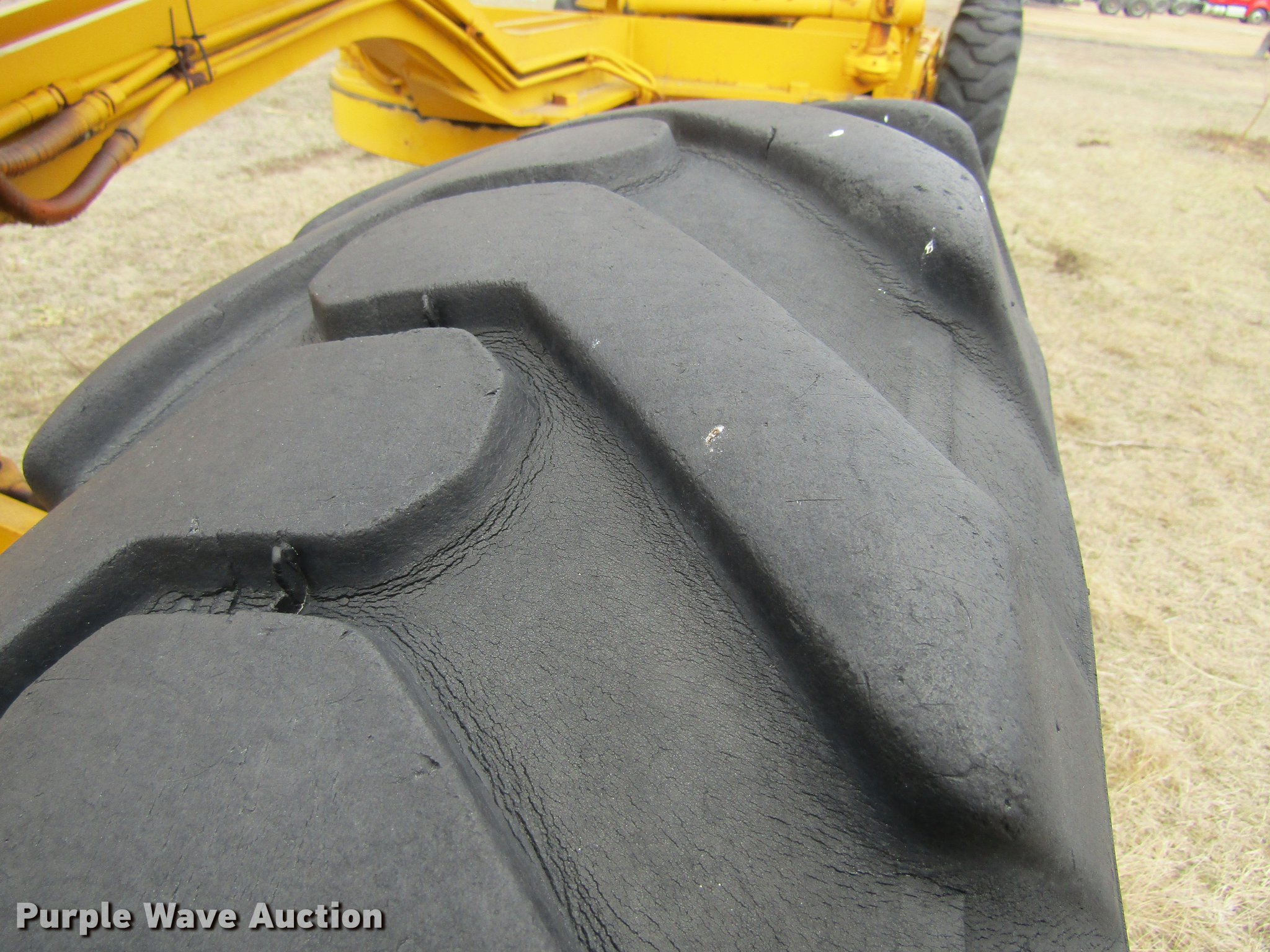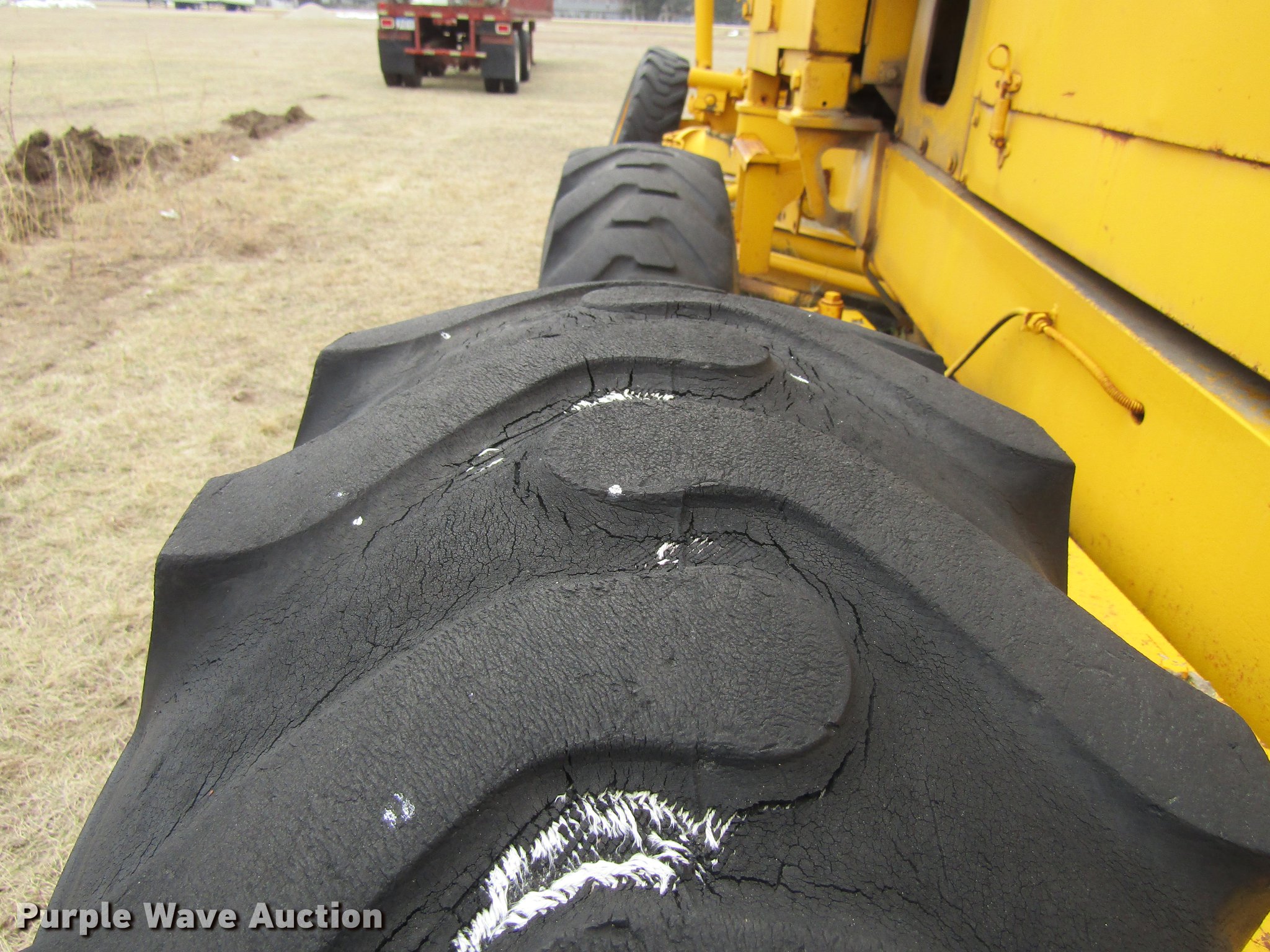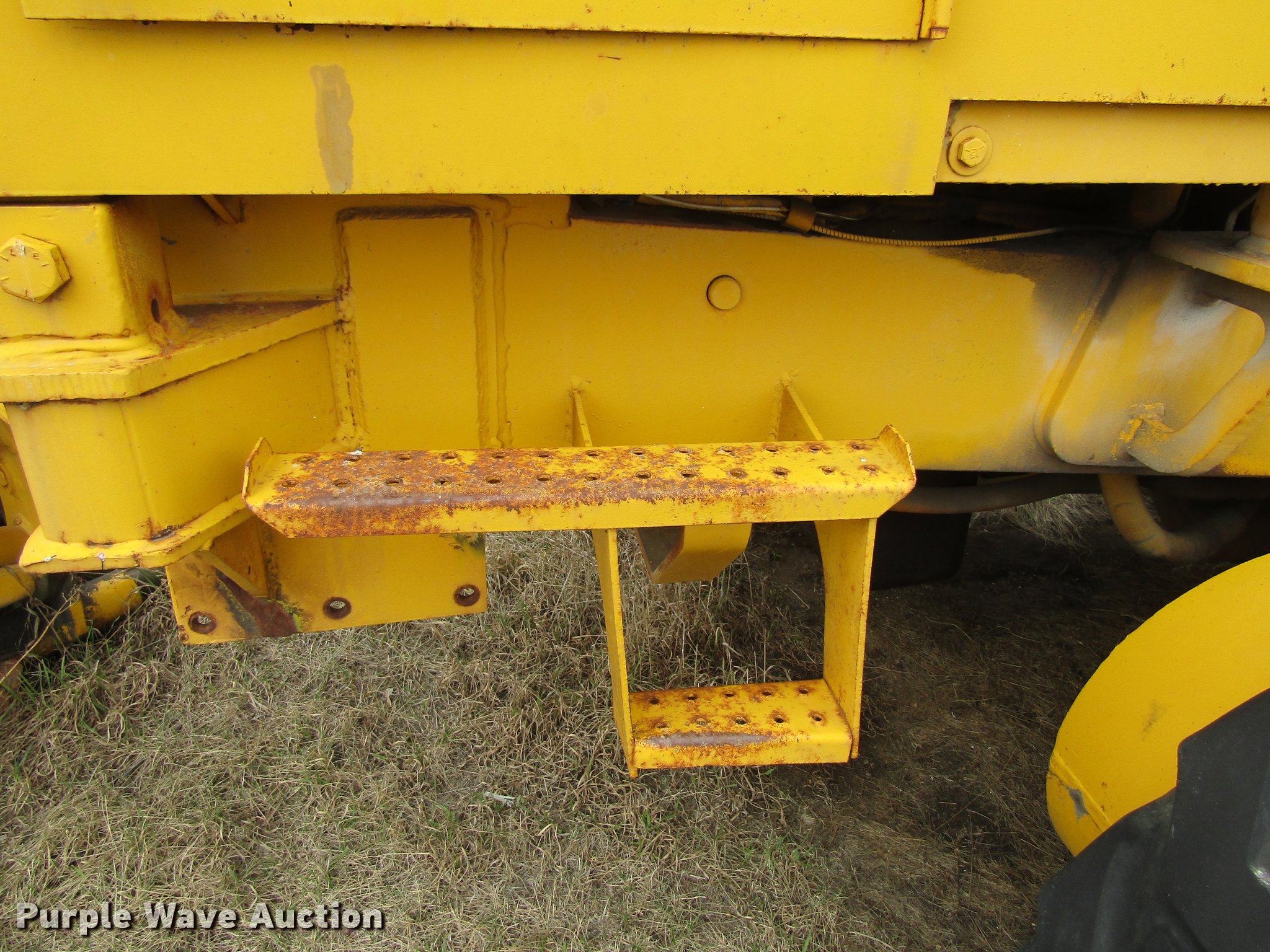 Purple Wave is selling a used Motor Grader in Iowa. This item is a 1973 Galion T500A rigid frame motor grader with the following: 4,184 hours on meter, International six cylinder turbo diesel engine, Powershift transmission, 2F-2R gears, Enclosed cab, Heat, 10 hydraulic control valves, Front and rear work lights, 12'W moldboard, Tip control, Side shift, Front-mounted push block, 13.00-24 tires, Tilt and steering cylinders need to be repacked, Non-operational unit, Serial IC-05095