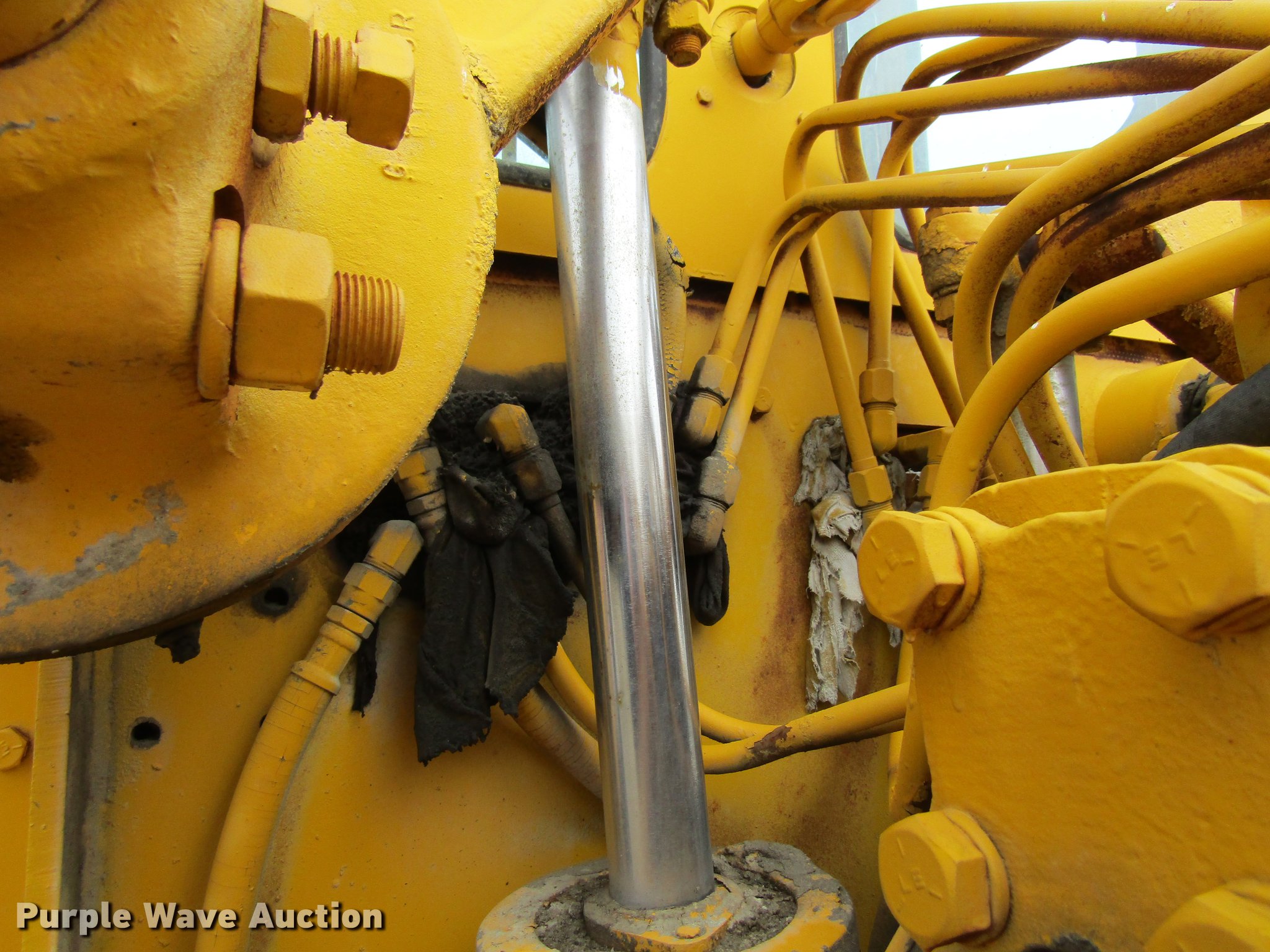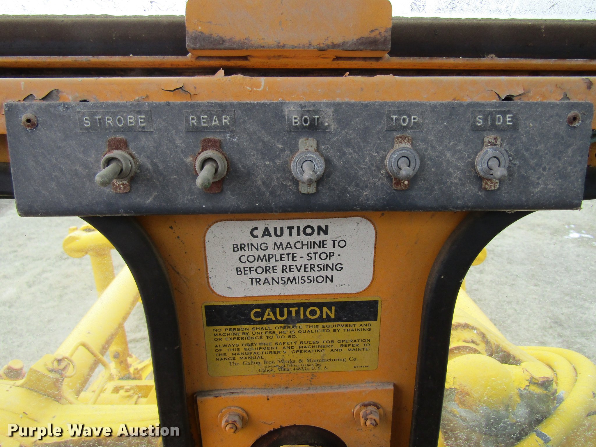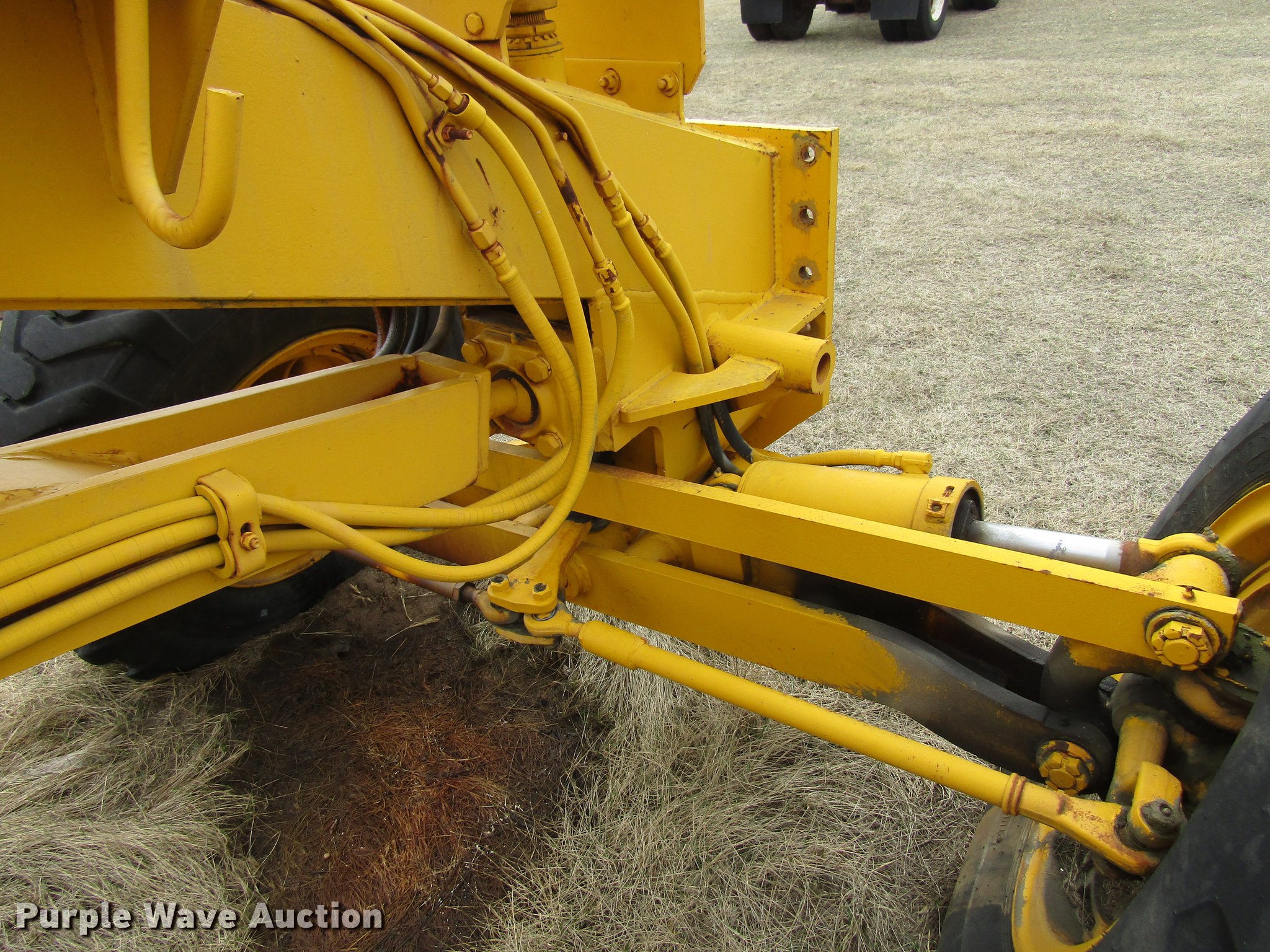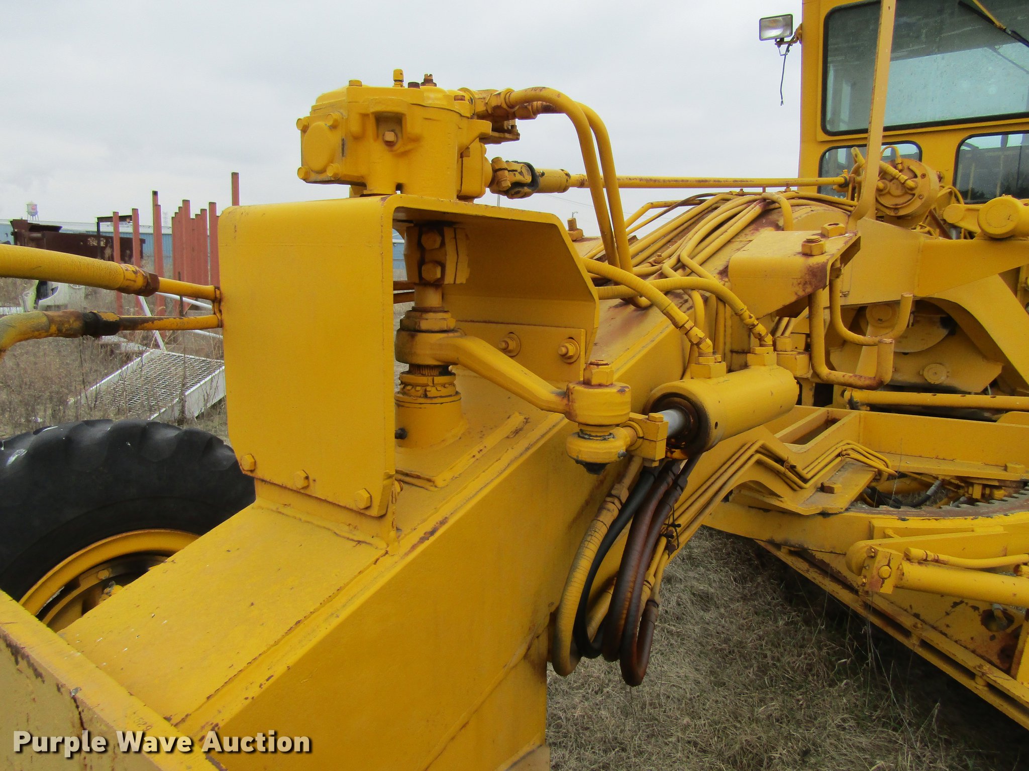 Purple Wave is selling a used Motor Grader in Iowa. This item is a 1973 Galion T500A rigid frame motor grader with the following: 4,184 hours on meter, International six cylinder turbo diesel engine, Powershift transmission, 2F-2R gears, Enclosed cab, Heat, 10 hydraulic control valves, Front and rear work lights, 12'W moldboard, Tip control, Side shift, Front-mounted push block, 13.00-24 tires, Tilt and steering cylinders need to be repacked, Non-operational unit, Serial IC-05095