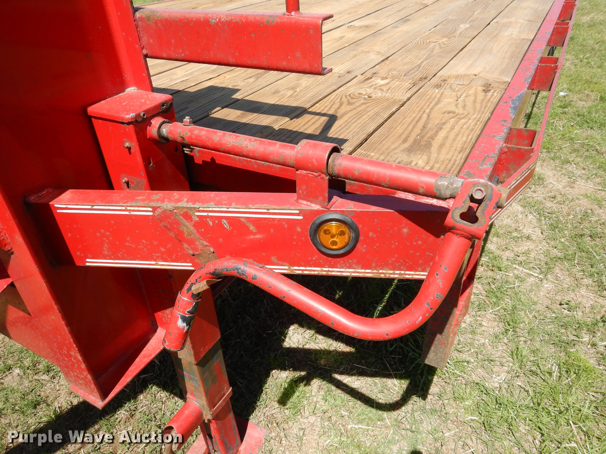 Purple Wave is selling a used Equip. Trailer in Texas. This item is a 2015 Longhorn equipment trailer with the following: 35.5'L x 101"W overall, 27'L deck, 5'L dovetail, 5'L ramps, Wood deck, Stake pockets, Toolbox, Gooseneck hitch, Dual leg landing gear, Spring suspension, Electric brakes, Tandem axle, ST235/80R16 tires, GVWR 22,500 lbs, GAWR 20,000 lbs