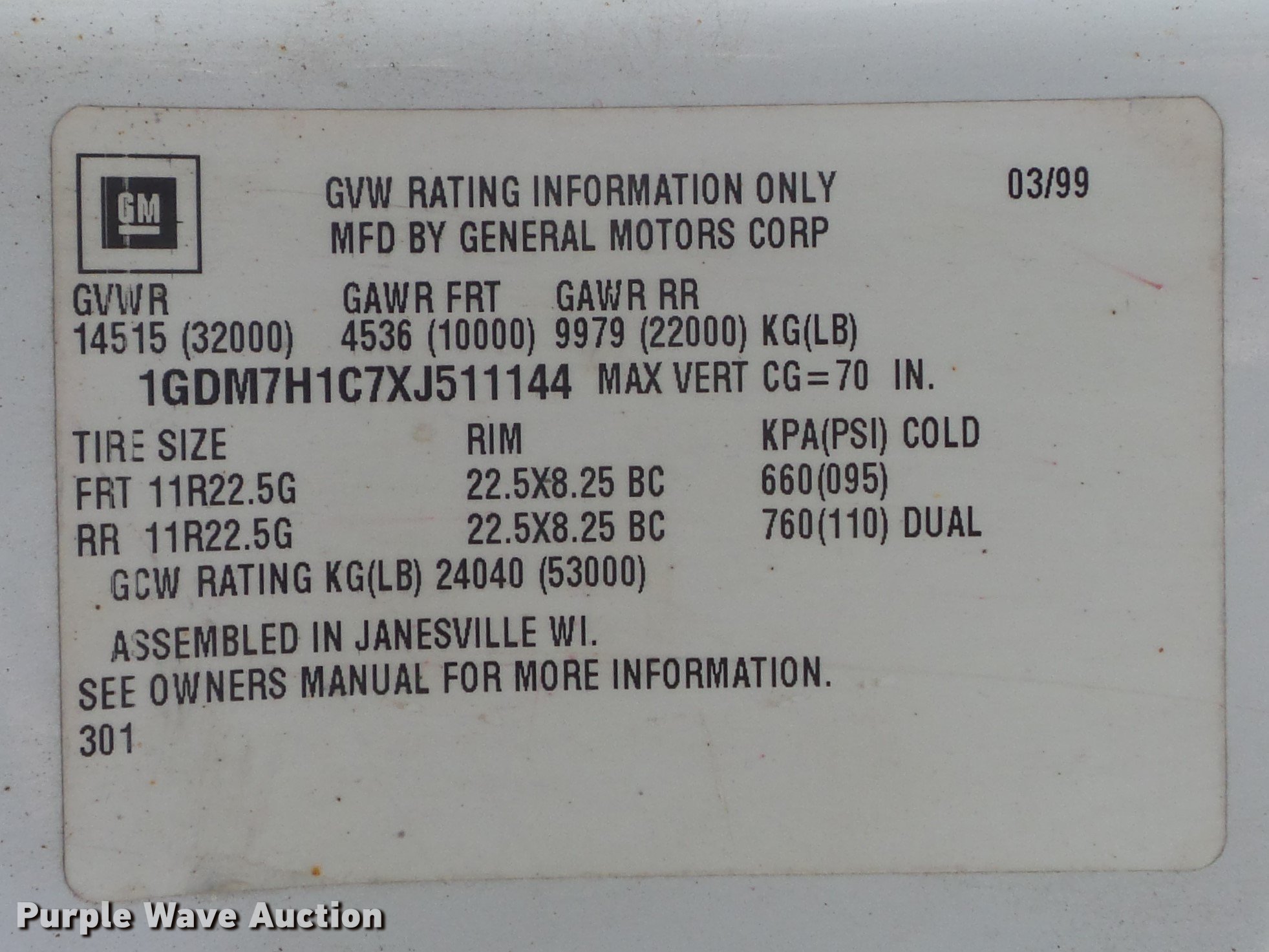 Take a look at this used 1999 GMC C7500 roll-off container truck being sold on May 3rd, 2018 in the SOLD! May 3 Construction Equipment Auction made by GMC. Take a look at all of the item information below or take a look at similar auctions for Trucks.