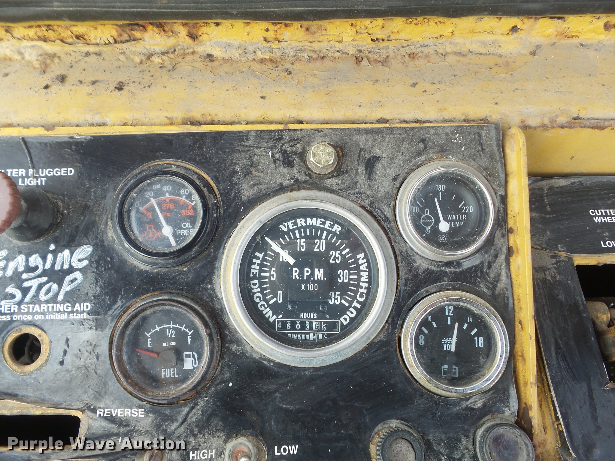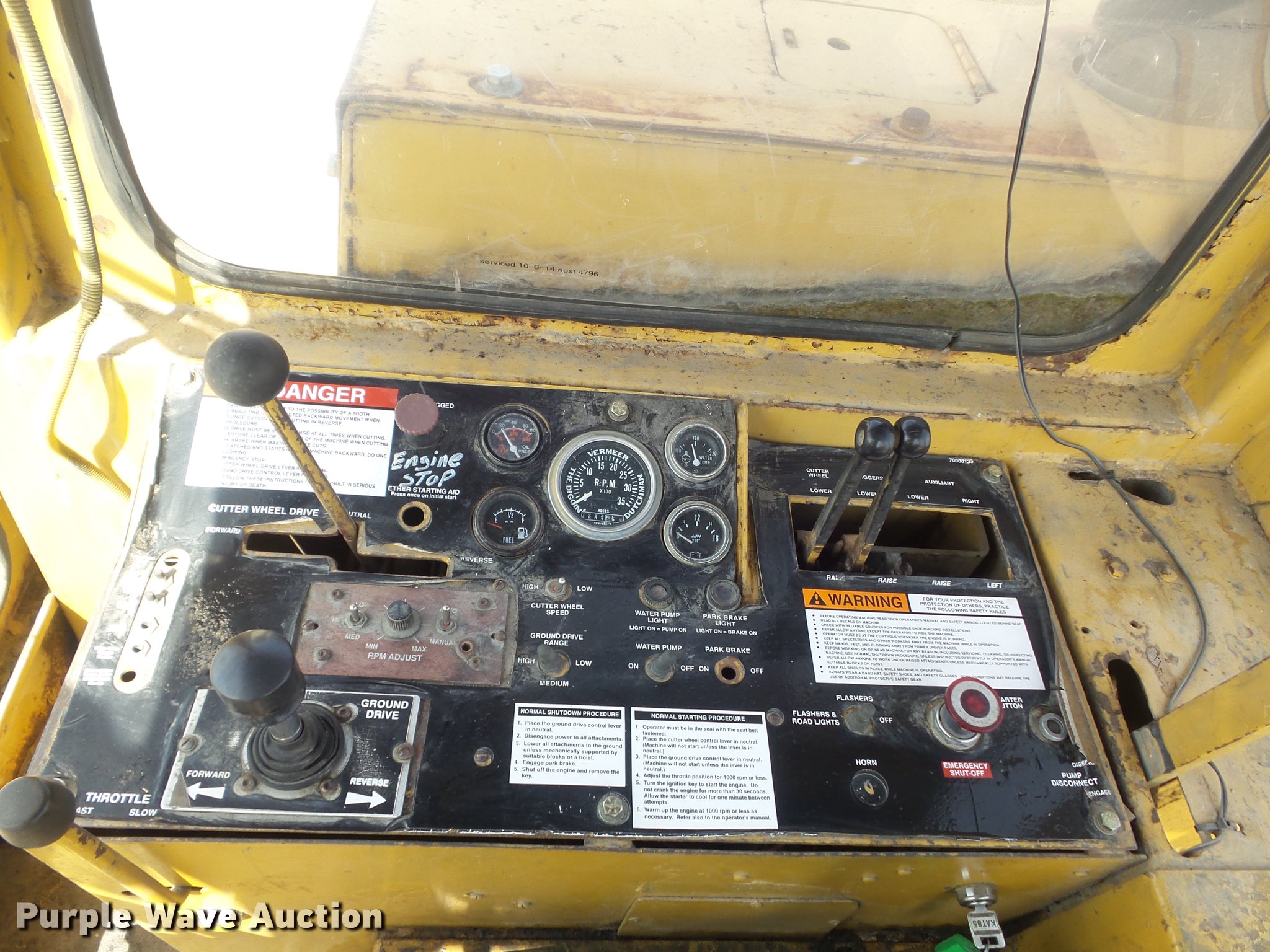 Purple Wave is selling a used Concrete Equip. or Acces. in Illinois. This item is a 1988 Vermeer CC135 concrete cutter with the following: 4,603 hours on meter, Detroit Diesel three cylinder turbo diesel engine, 135 HP, Three speed hydrostatic transmission, Four wheel drive, EROPS, Wipers, Front work lights, CC84 concrete cutter, 84" diameter cutting wheel, 4" cutting width, Two speed hydrostatic drive motor, (110) replaceable carbide tipped teeth, Cutter depth/stabilizer arms, Dust suppression system, (2) 100 gallon water tanks, 12V pump, Spray nozzles, 12-16.5 foam filled tires, Engine oil leak, Serial 1VRF122V6J1000236