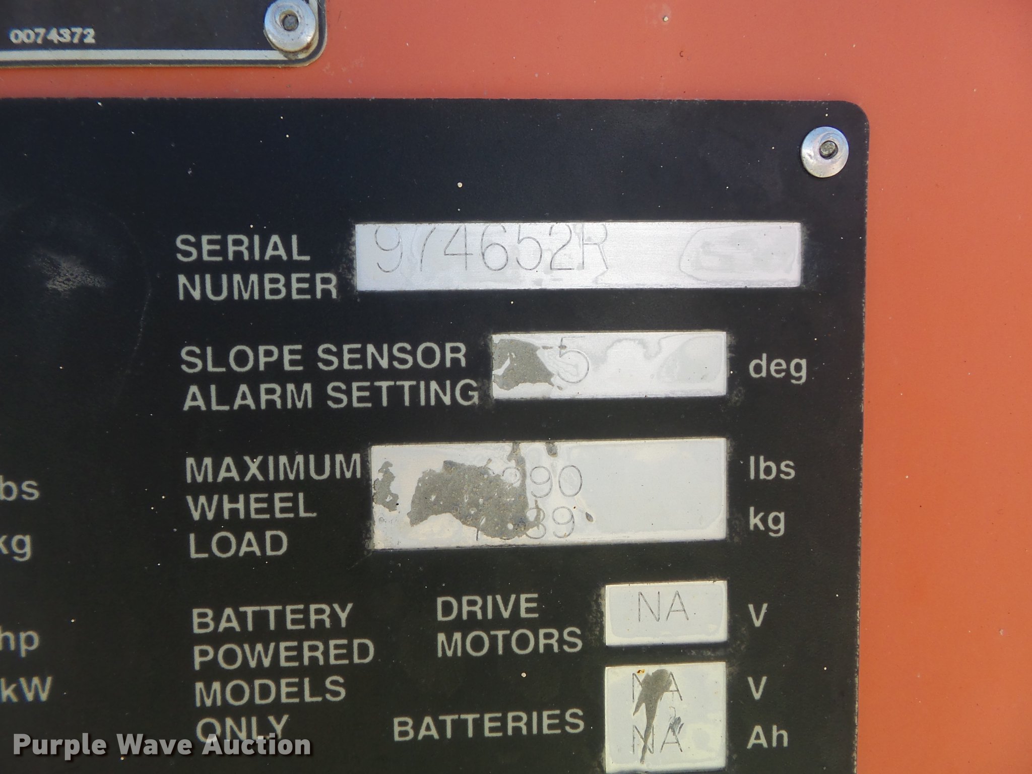 Purple Wave is selling a used Boom Lift in Missouri. This item is a 2006 Snorkel TB60 boom lift with the following: 1,129 hours on meter, Deutz four cylinder diesel engine, 58 HP, Four wheel drive, 600 lbs maximum lift capacity, 50' maximum reach, 60' maximum lift height, 92"L x 30"W platform, Platform and ground controls, AC power outlet, 180 degree hydraulic platform rotation, Safety alarm, 15-19.5 foam-filled tires, Annual inspection completed April 2017, Possible o-ring issue, hydraulic oil drip near hydraulic tank, Serial 974652R