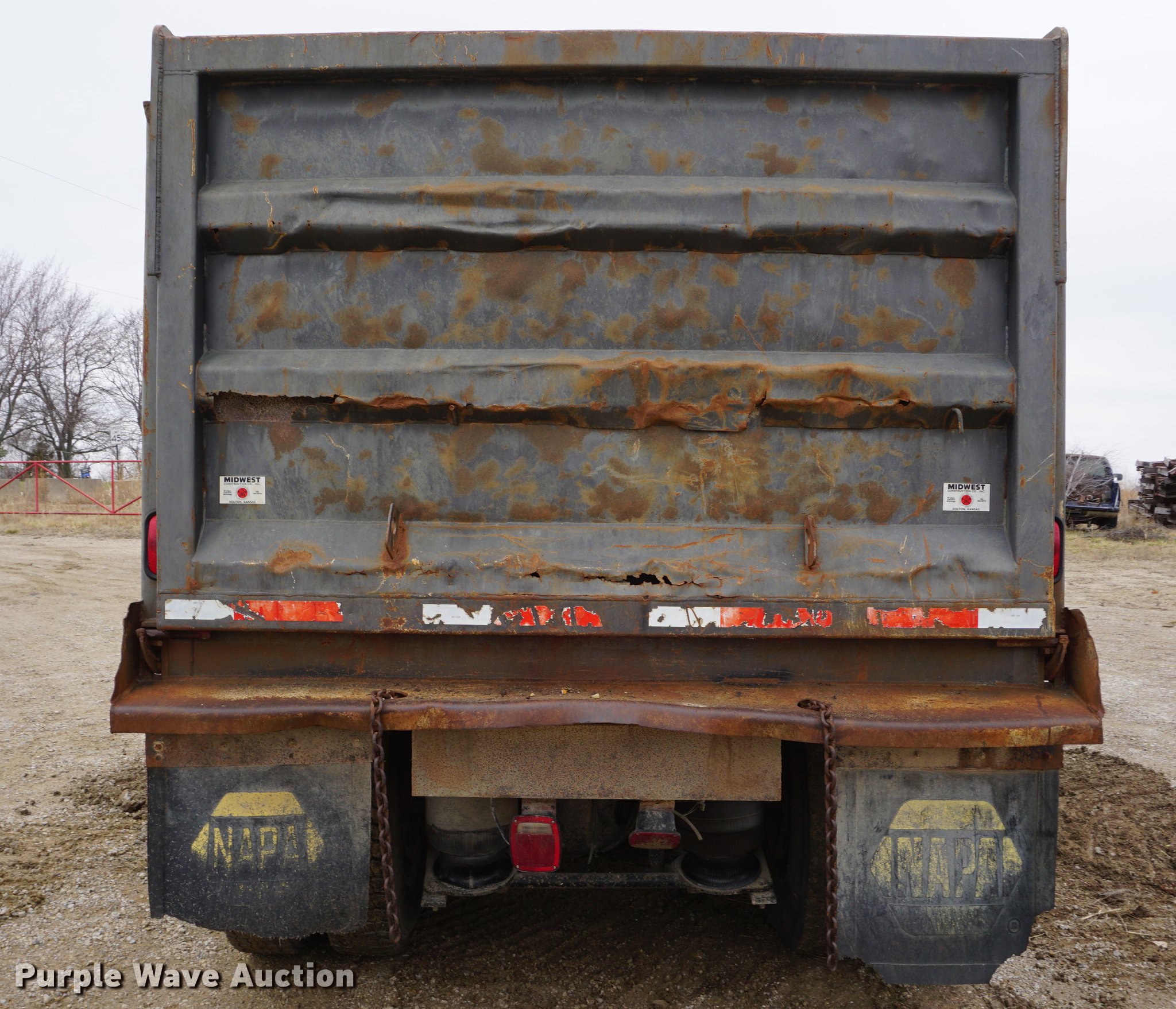 1989 Ford LTL9000 dump truck. 18,387 miles on odometer, Caterpillar 3406 14.6L L6 turbo diesel engine 425 HP, Serial 4MG33859, Eaton Fuller Road Ranger 10 speed manual transmission, Inter-axle differential lock, Triple axle, AC and heat, AM/FM, Air suspension seat, PTO, 15'L x 96"W steel barrel dump bed Single ram hoist, Air operated end gate, Dual fuel tanks, Air up/down pusher axle, Air suspension, Air brakes, 11R24.5 front tires, 10.00R17.5 pusher axle tires, 11R24.5 rear tires, GVWR 46,000 lbs , FAWR 12,000 lbs, IAWR 20,000 lbs, RAWR 20,000 lbs, Non-operational AC. Kansas title. 1FDYA90X5KVA16228. Midwest Construction Co.. 19830 Q Rd. Holton, KS 66436