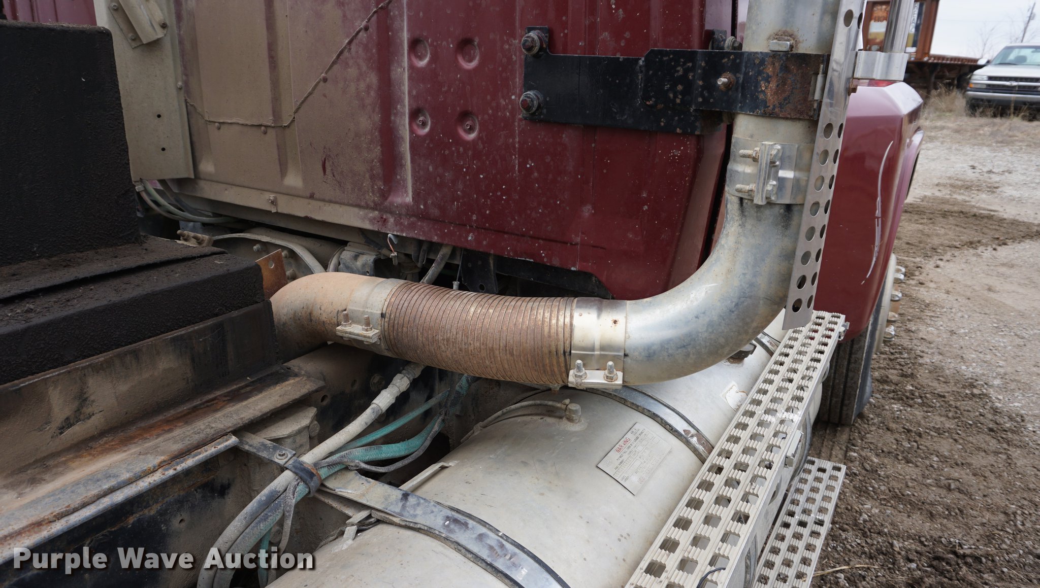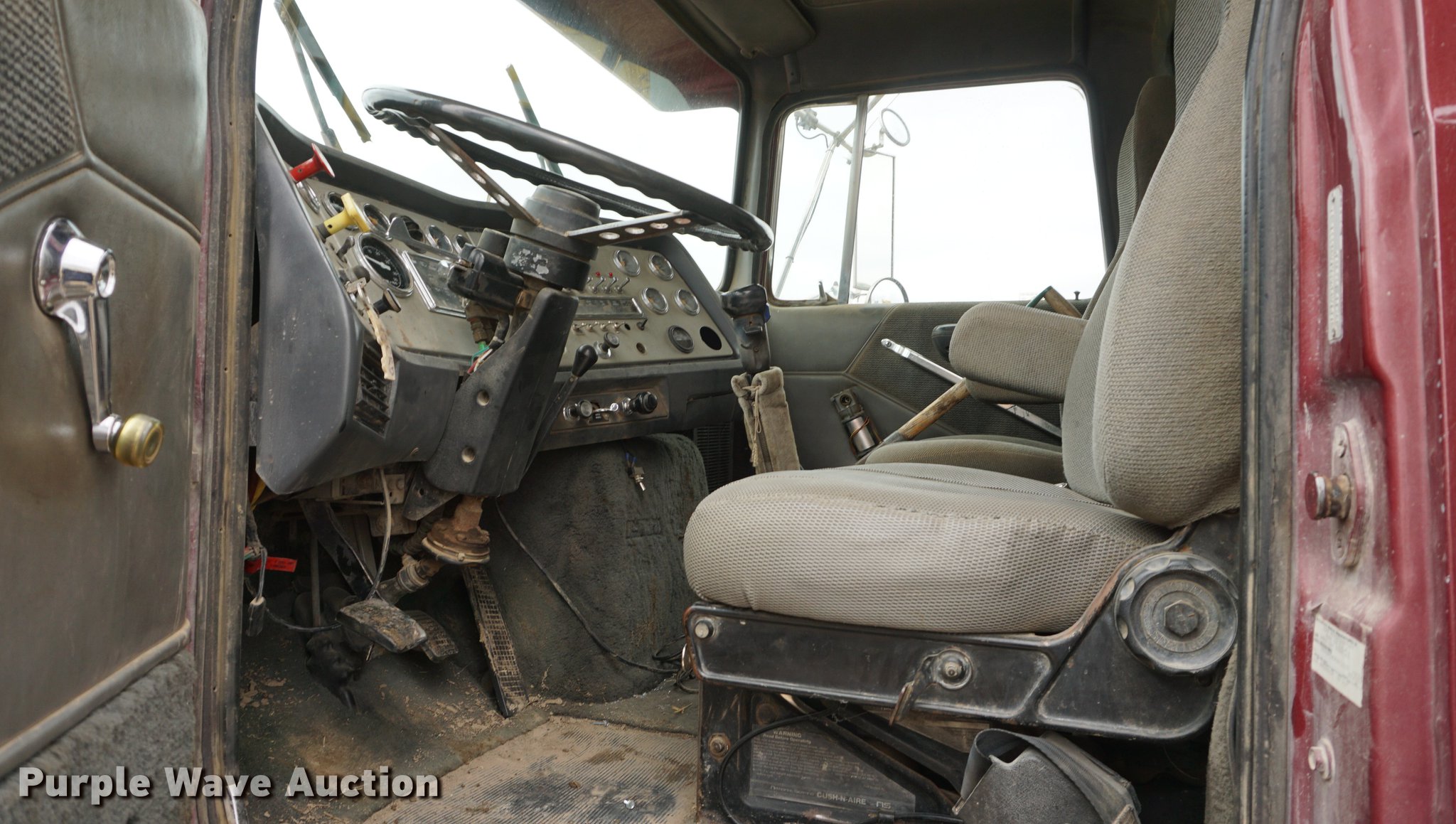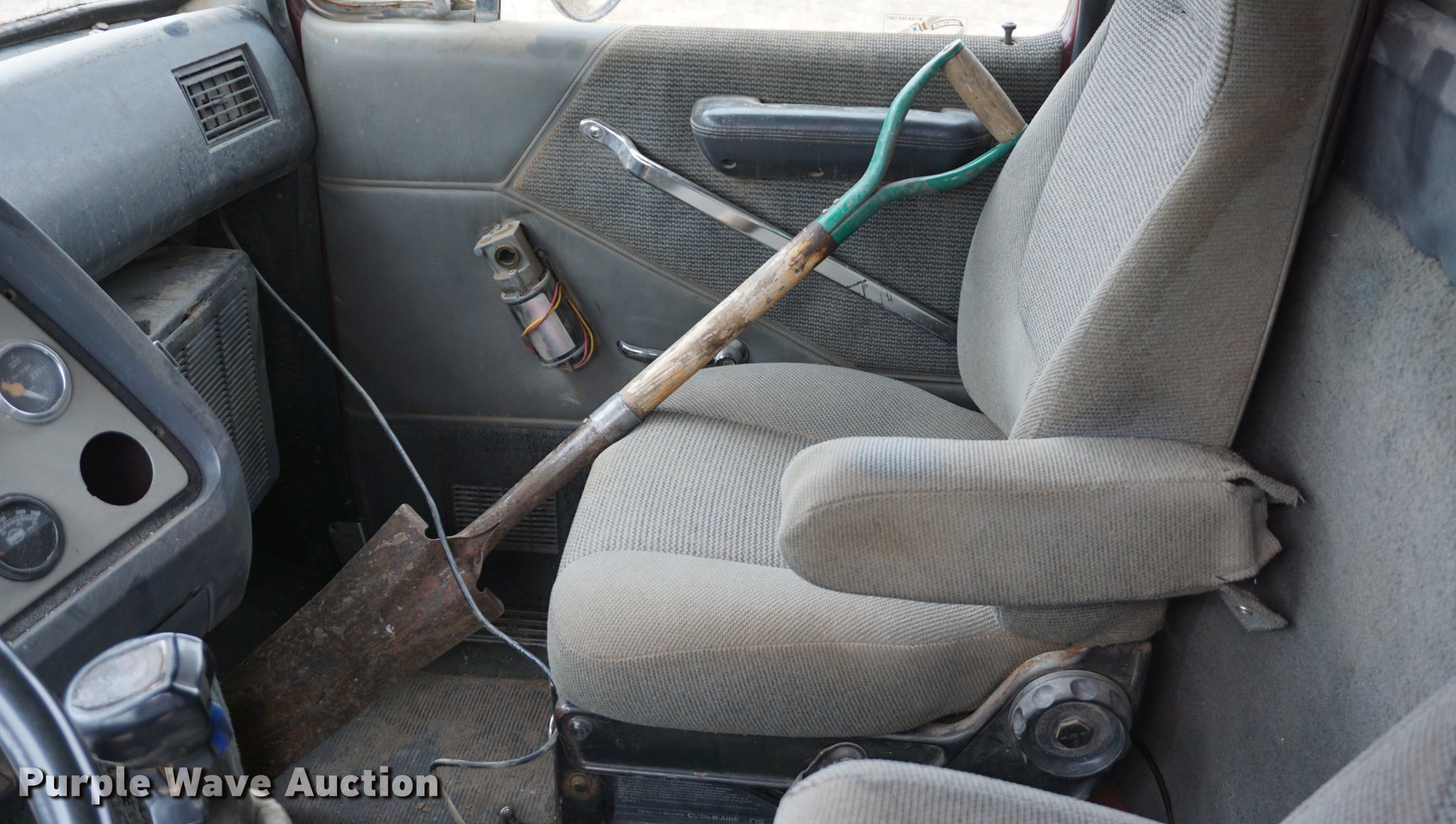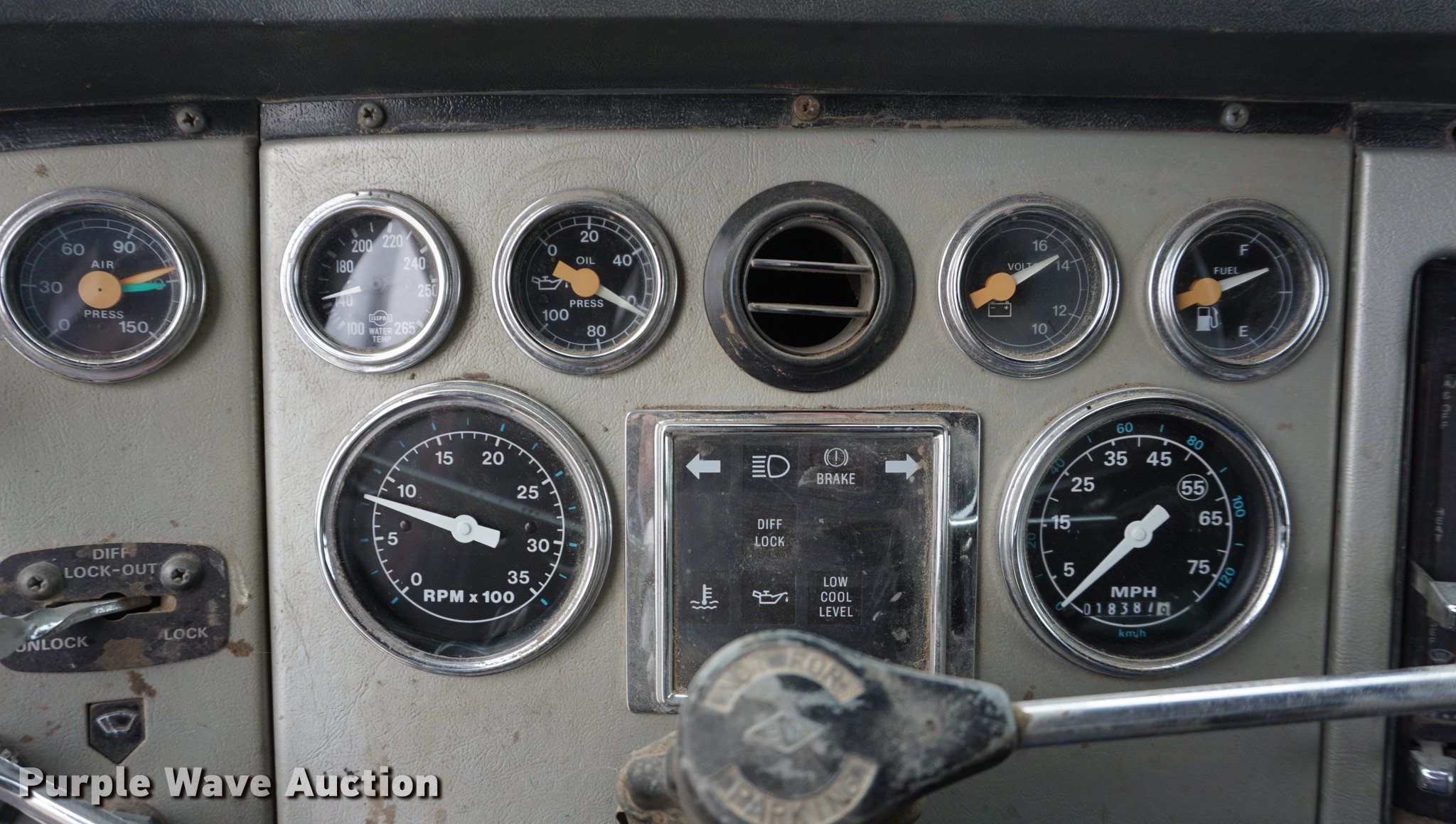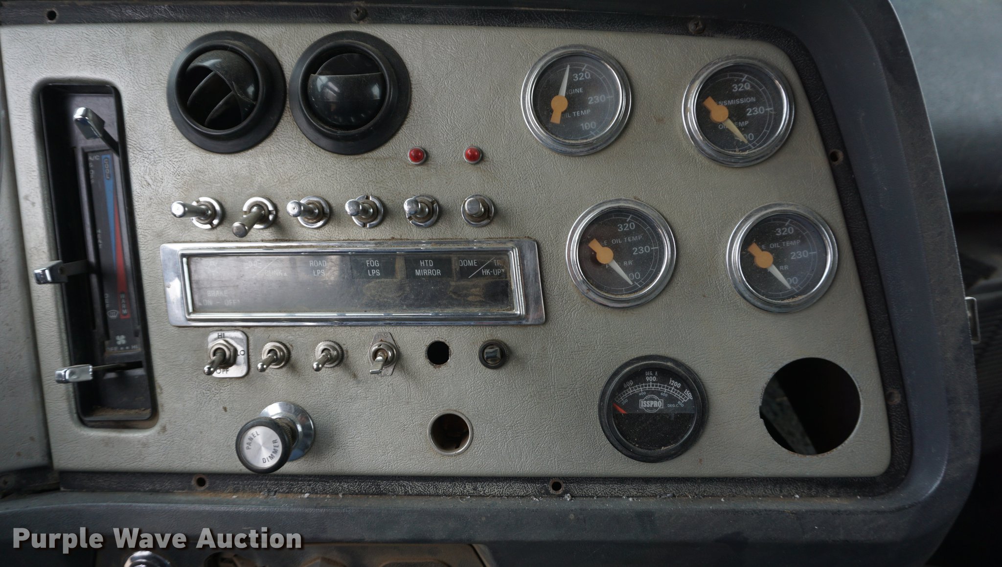 Purple Wave is selling a used Construction Dump Truck in Kansas. This item is a 1989 Ford LTL9000 dump truck with the following: 18,387 miles on odometer, Caterpillar 3406 14.6L L6 turbo diesel engine, 425 HP, Serial 4MG33859, Eaton Fuller Road Ranger 10 speed manual transmission, Inter-axle differential lock, Triple axle, AC and heat, AM/FM, Air suspension seat, PTO, 15'L x 96"W steel barrel dump bed, Single ram hoist, Air operated end gate, Dual fuel tanks, Air up/down pusher axle, Air suspension, Air brakes, 11R24.5 front tires, 10.00R17.5 pusher axle tires, 11R24.5 rear tires, GVWR 46,000 lbs, FAWR 12,000 lbs, IAWR 20,000 lbs, RAWR 20,000 lbs, Non-operational AC