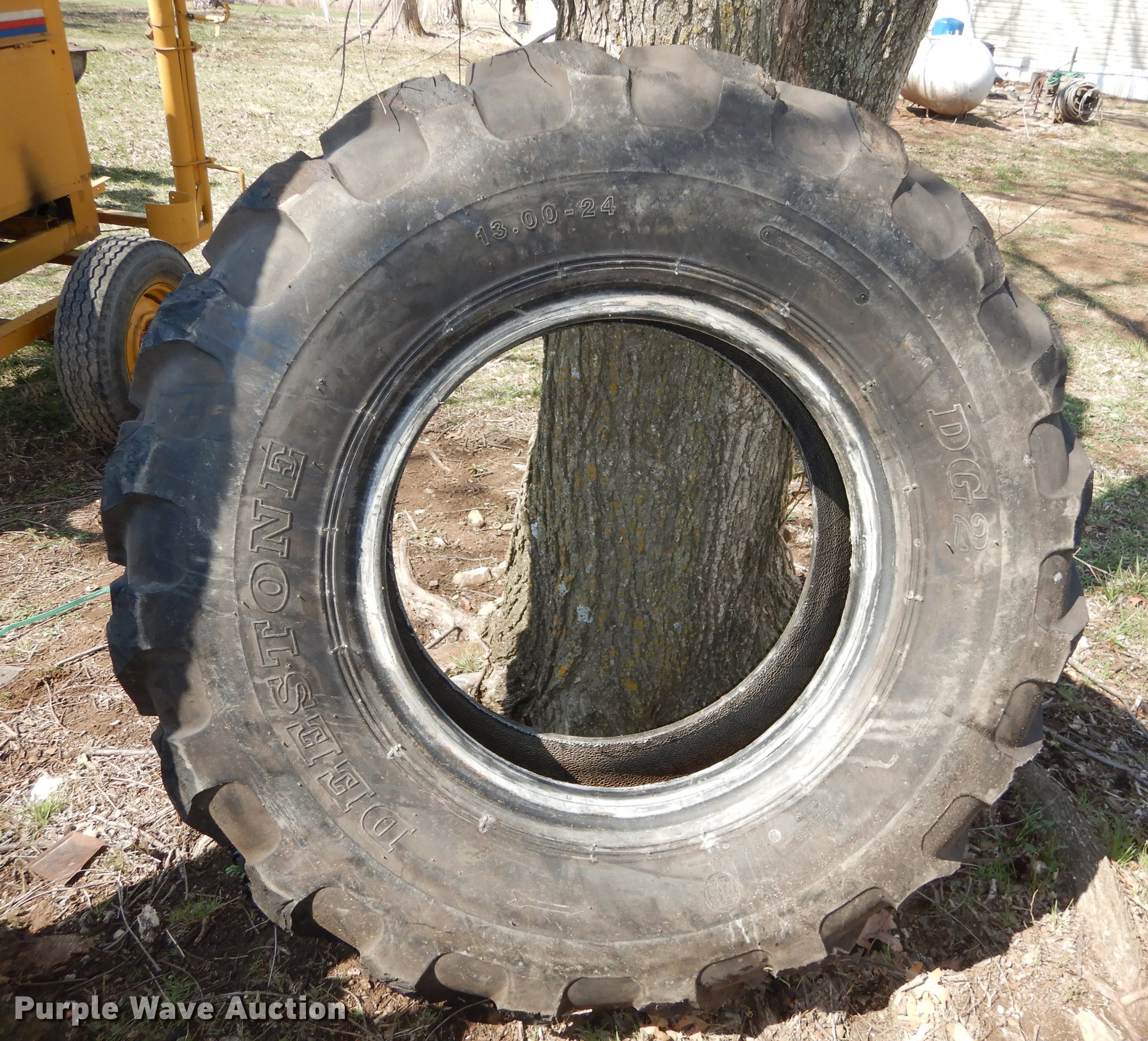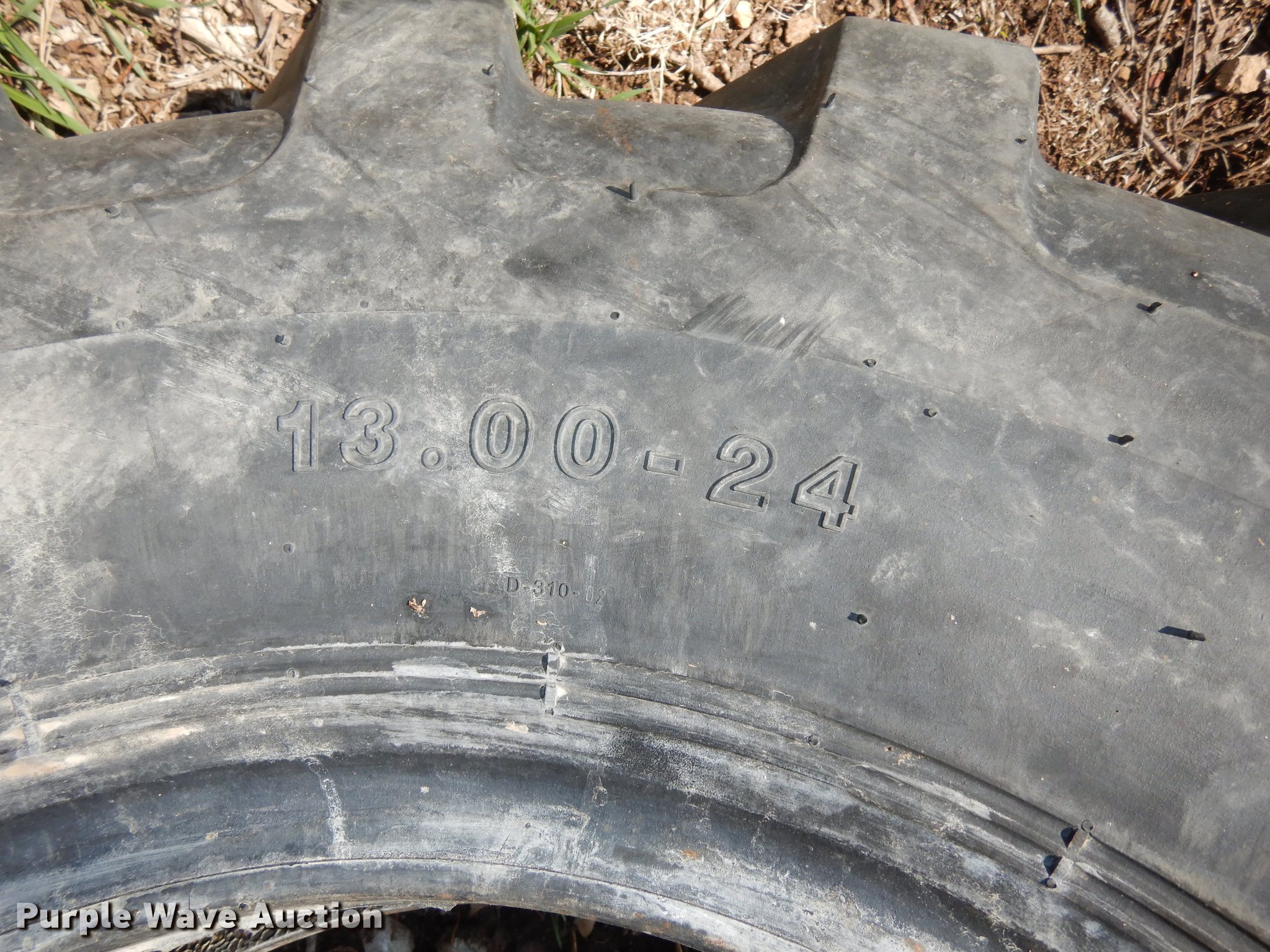 Purple Wave is selling a used Industrial Tires or Tracks in Kansas. This item is a (4) Deestone 13.00-24 tires with the following: (3) unused, Tread shaved on used tire