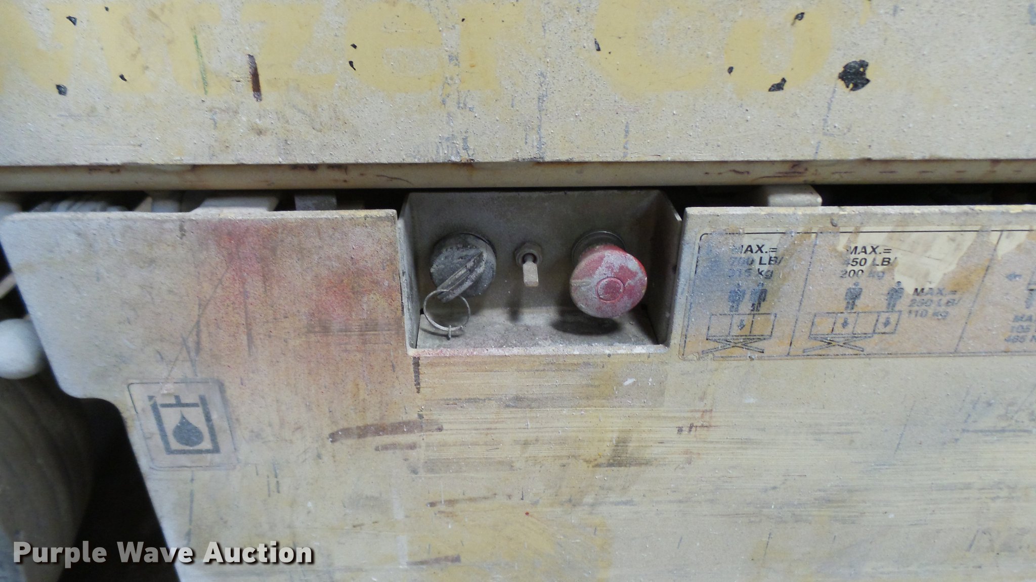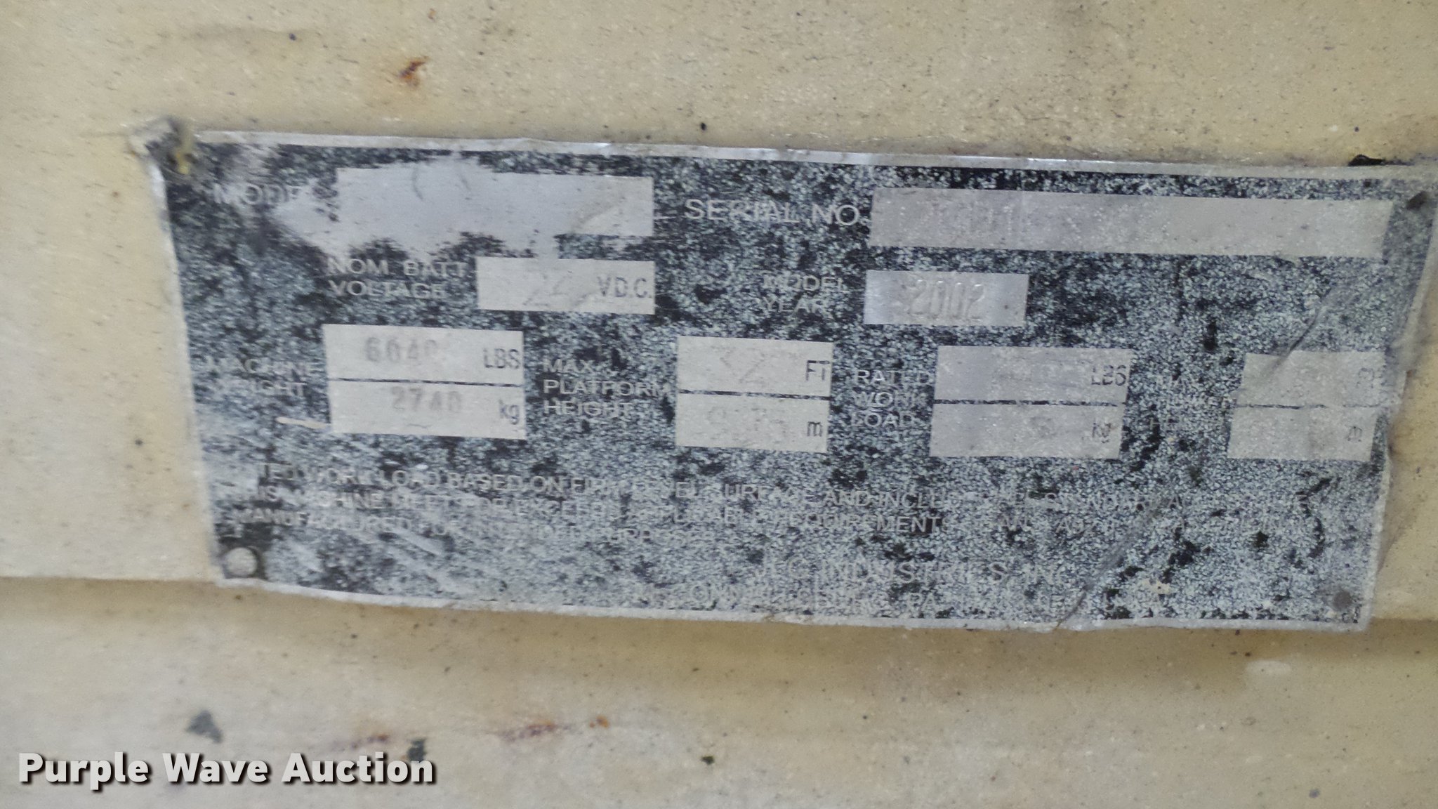 Purple Wave is selling a used Scissor or Vertical Lift in Missouri. This item is a 2002 JLG 3246E2 scissor lift with the following: 45 hours on meter, 24V operation, 700 lbs maximum lift capacity, 32' maximum lift height, 46"W platform, Manual platform extensions, Folding safety rails, Platform and ground controls, AC power outlet, Pot hole protection, On-board charger, Forklift pockets, 15x5 solid non-marking tires, 6,040 lbs. base operating weight, Serial 0200103188