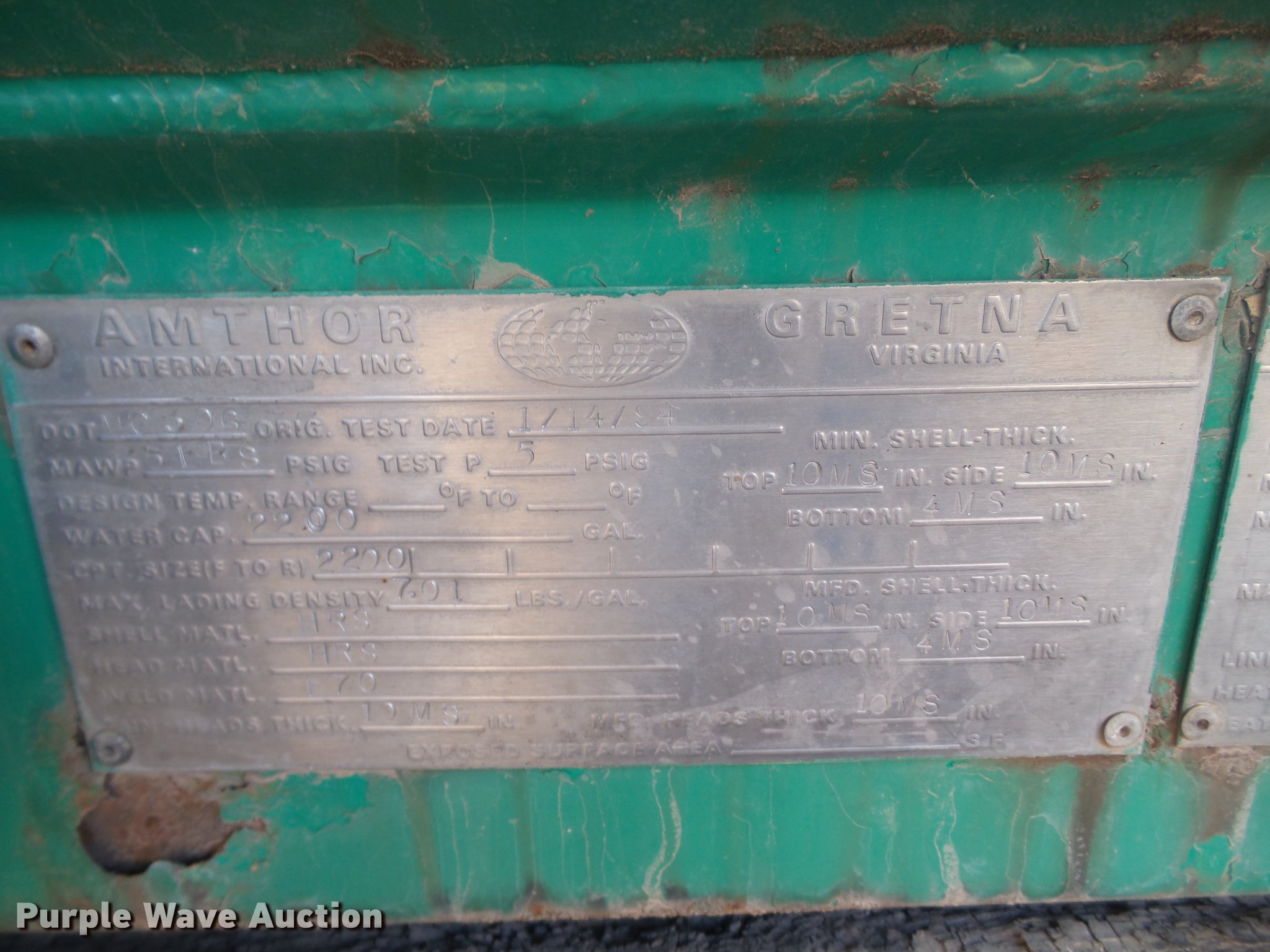 1988 Ford L8000 tank truck. 184,479 miles on odometer, Caterpillar 3208 10.4L V8 turbo diesel engine, Five speed manual transmission, AM/FM, Suspension seat, PTO, Front tow hooks, (8) hose reels Spray nozzle, Rear discharge, Dual fuel tanks, 11R22.5 tires. Texas title. Title has a lien that will be released following the close of the auction. Title distribution may be delayed up to 30 days from verification of funds. 1FDXR80U9JVA49672. J & M Service Center. 13 SW 16th Ave. Perryton, TX 79070