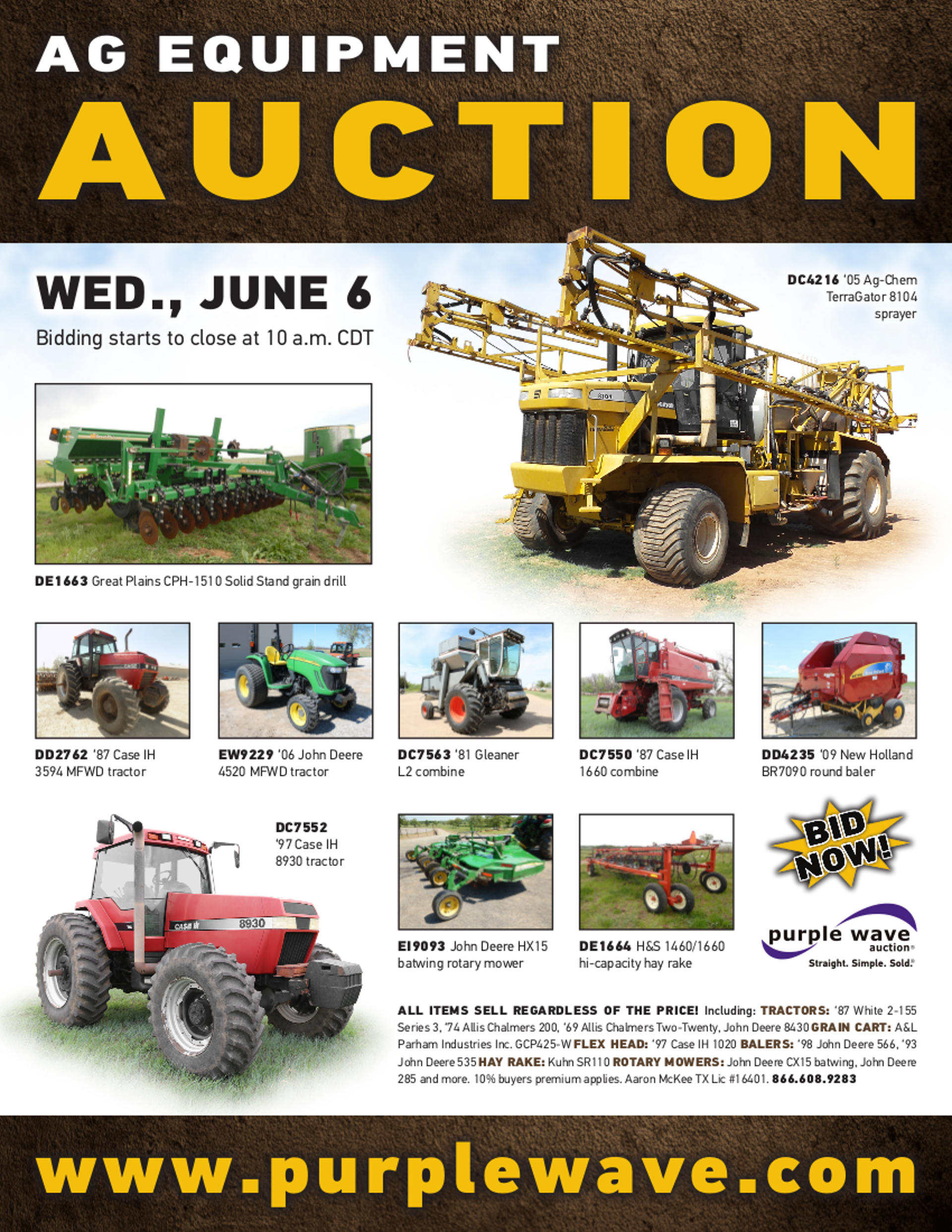 Bids over the amount of $10,000.00 are subject to Purple Wave's qualification process. Verification may include, but is not limited to, providing a bank letter of guarantee, credit references or credit card pre-authorization. Purple Wave may take any or all of these measures at any point during the auction. Purple Wave reserves the right to strike any Internet bid if the bidder refuses or fails to timely cooperate with Purple Wave's efforts to verify the bidder's qualification to bid. By registering to bid in this auction, you authorize all credit references, banks and credit reporting agencies to provide complete information about your credit to Purple Wave. For questions regarding Purple Wave's bid qualification process, please contact Gretchen Hedrick, Credit Specialist, at [email protected] or call 785.229.0361.