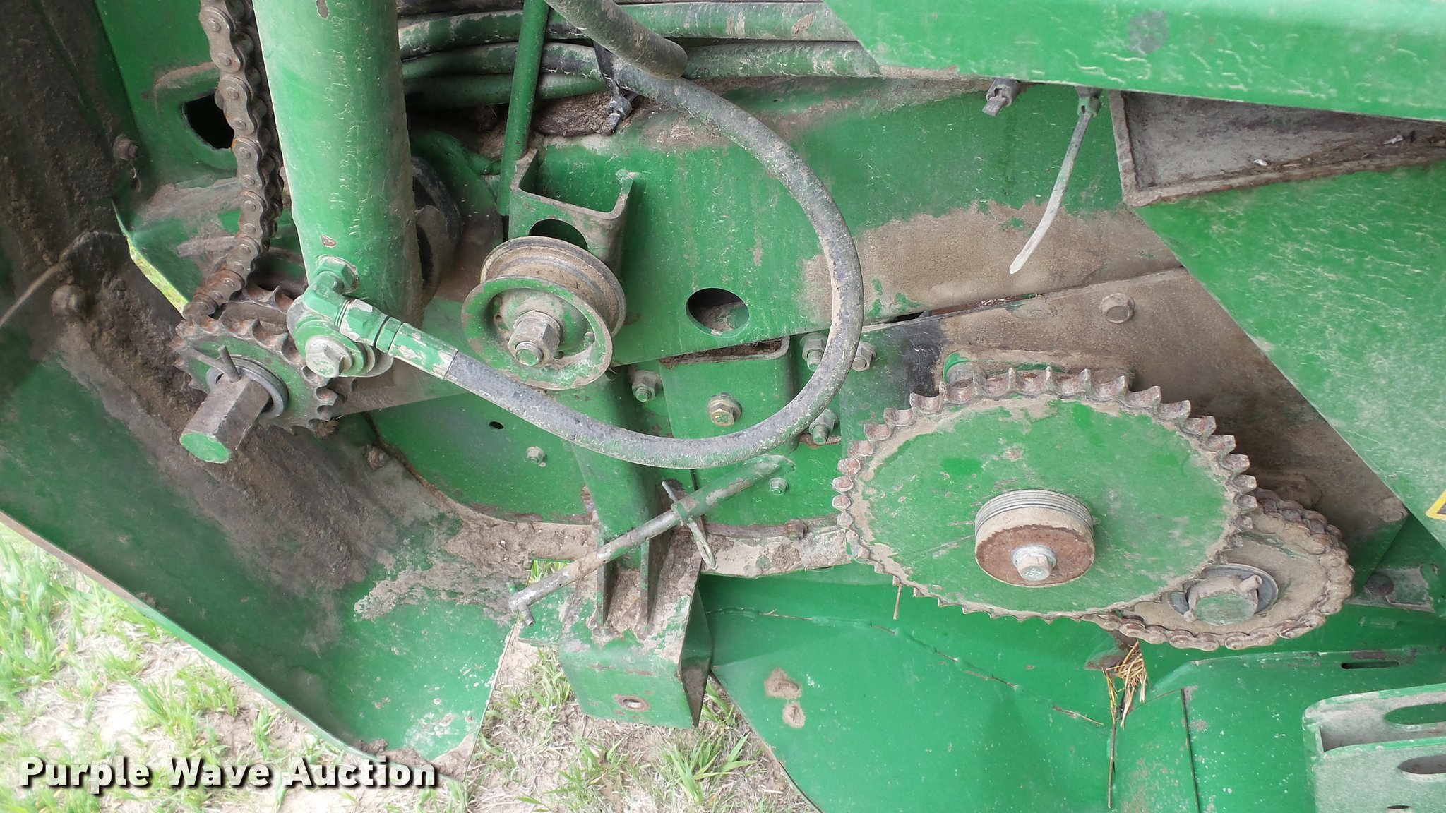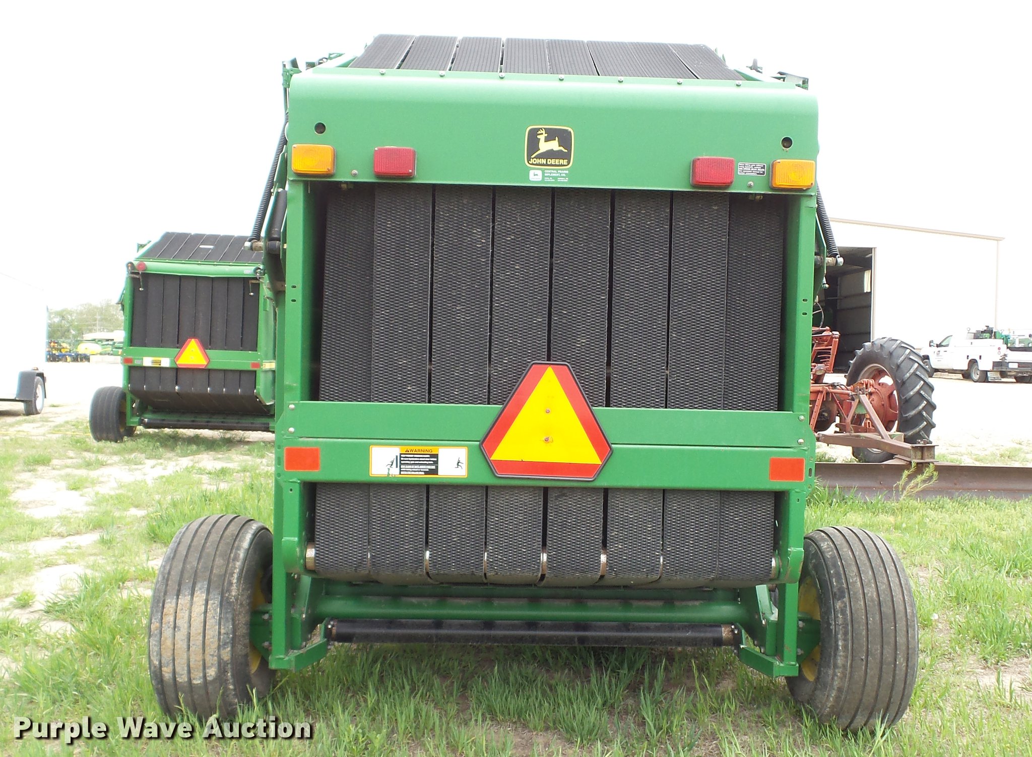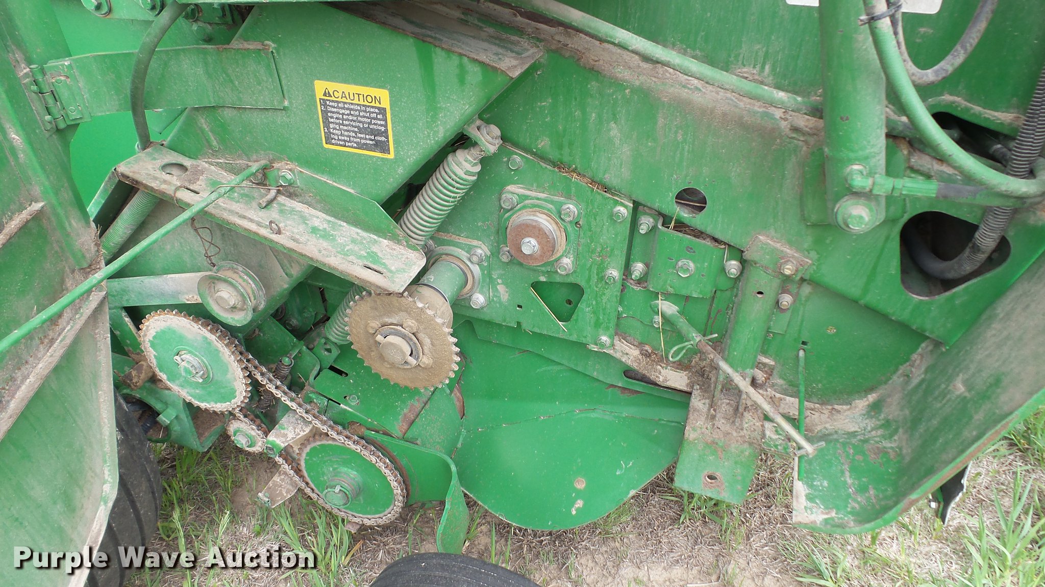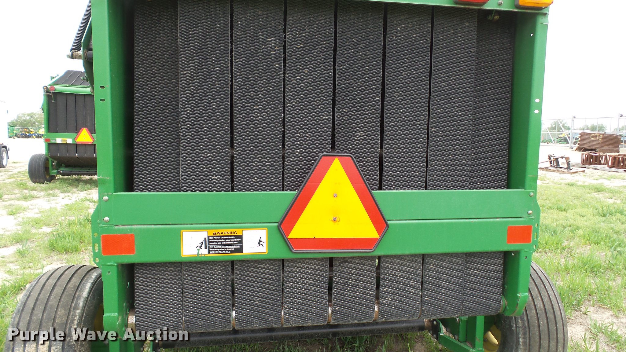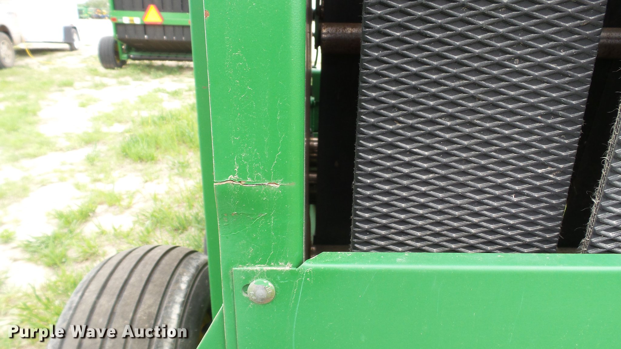 Purple Wave is selling a used Round Baler in Kansas. This item is a 1998 John Deere 566 round baler with the following: 15,000 bale count, 5' x 6' bale capacity, 60"W pickup, Hydraulic pickup lift, 16x6.50-8 gauge wheels, Twine tie, Bale kicker, Transport lights, Large 1000 PTO, Pin hitch, 31x13.50-15 tires, Left door will not latch, Transport plug broken, Serial E00566X126883, Unit# 47771